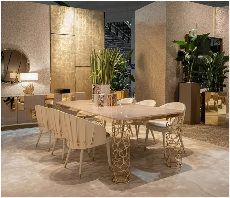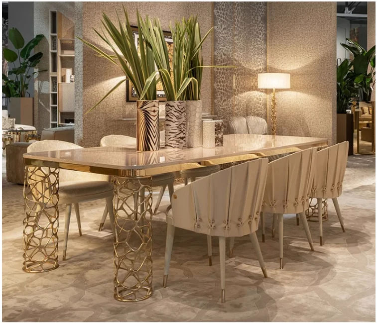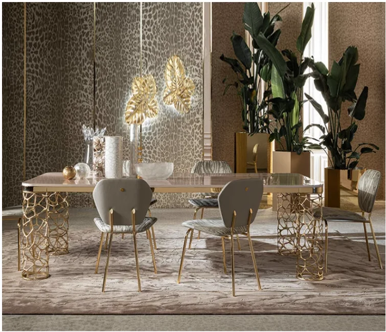 Italian light luxury marble dining table modern simple living room Villa dining room rectangular dining table