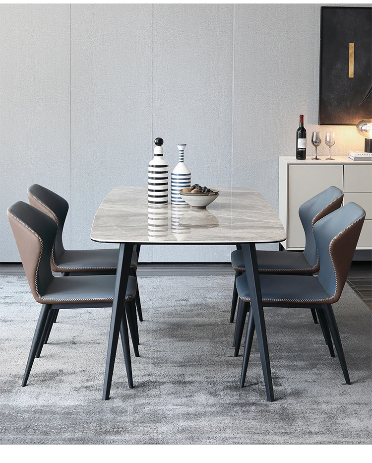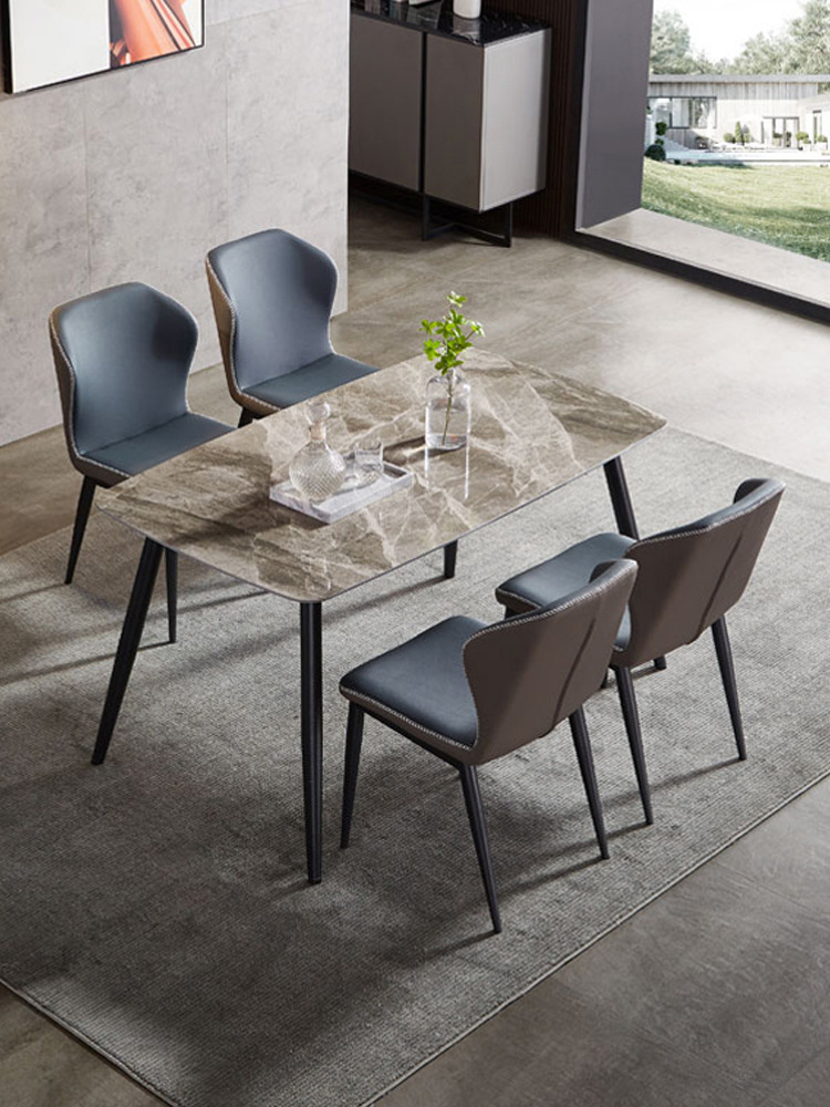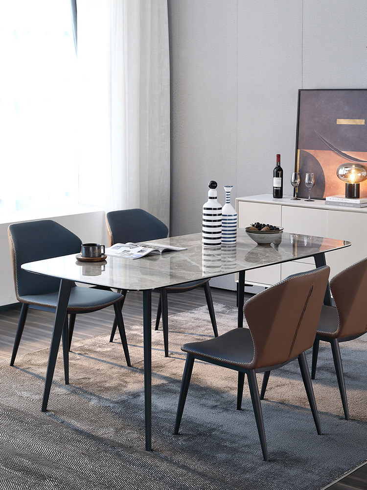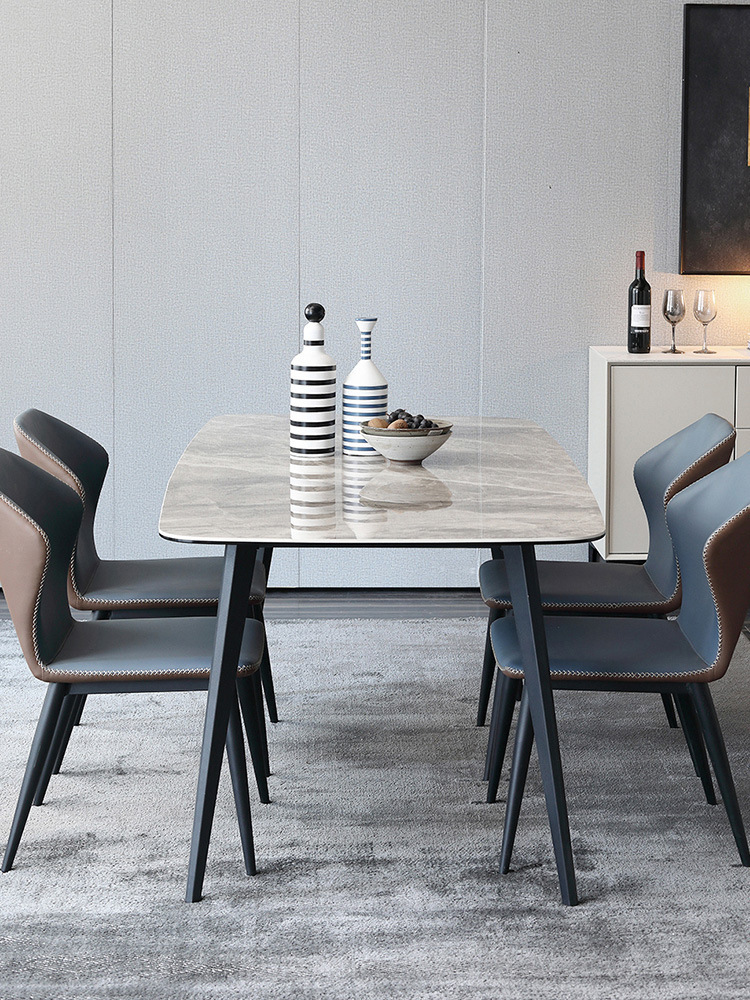 Italian light luxury rock slab dining table chair modern simple rectangular bright marble table