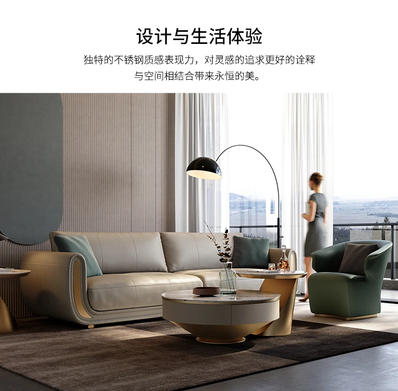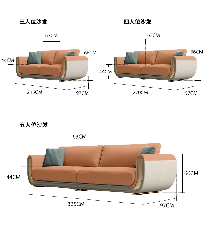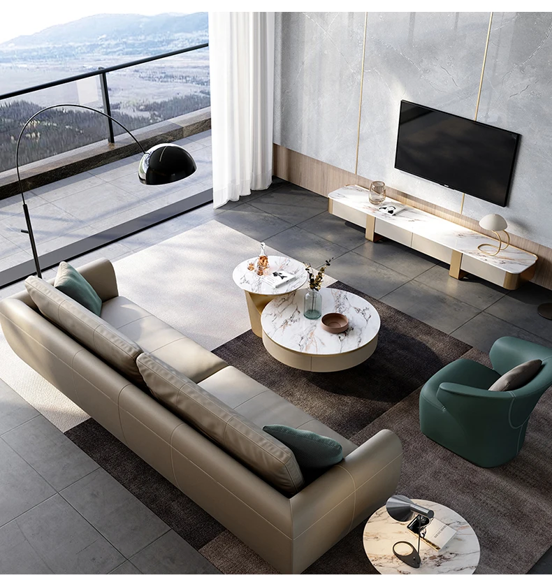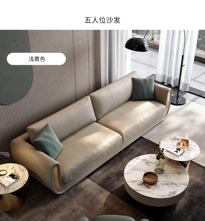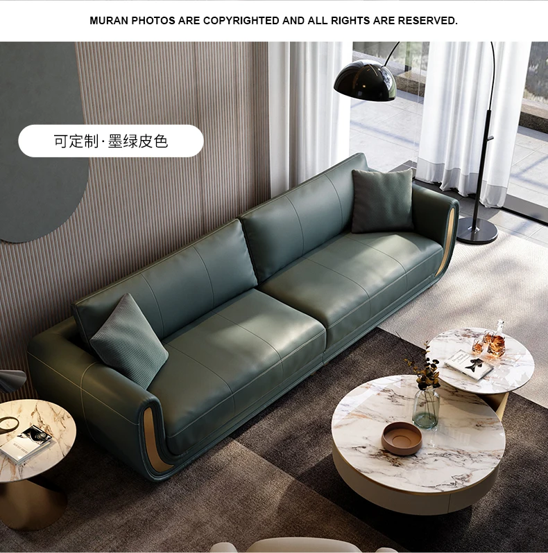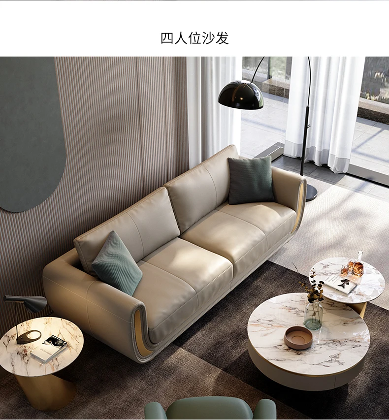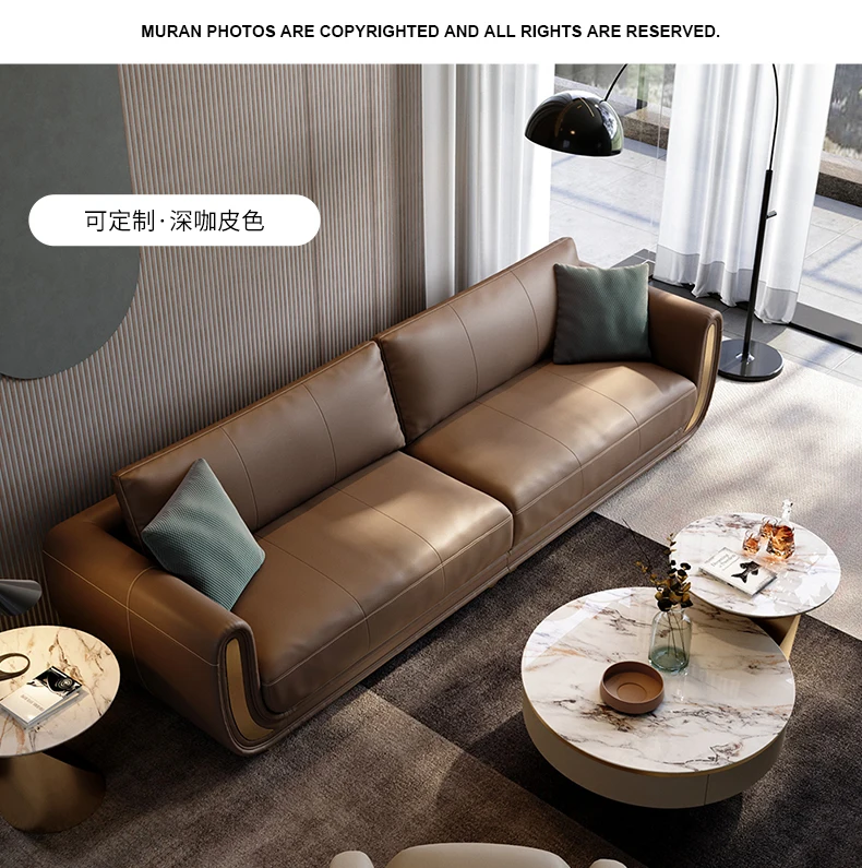 Italian light luxury sofa living room fully equipped three-seat sofa in-line large apartment leather sofa head layer cowhide