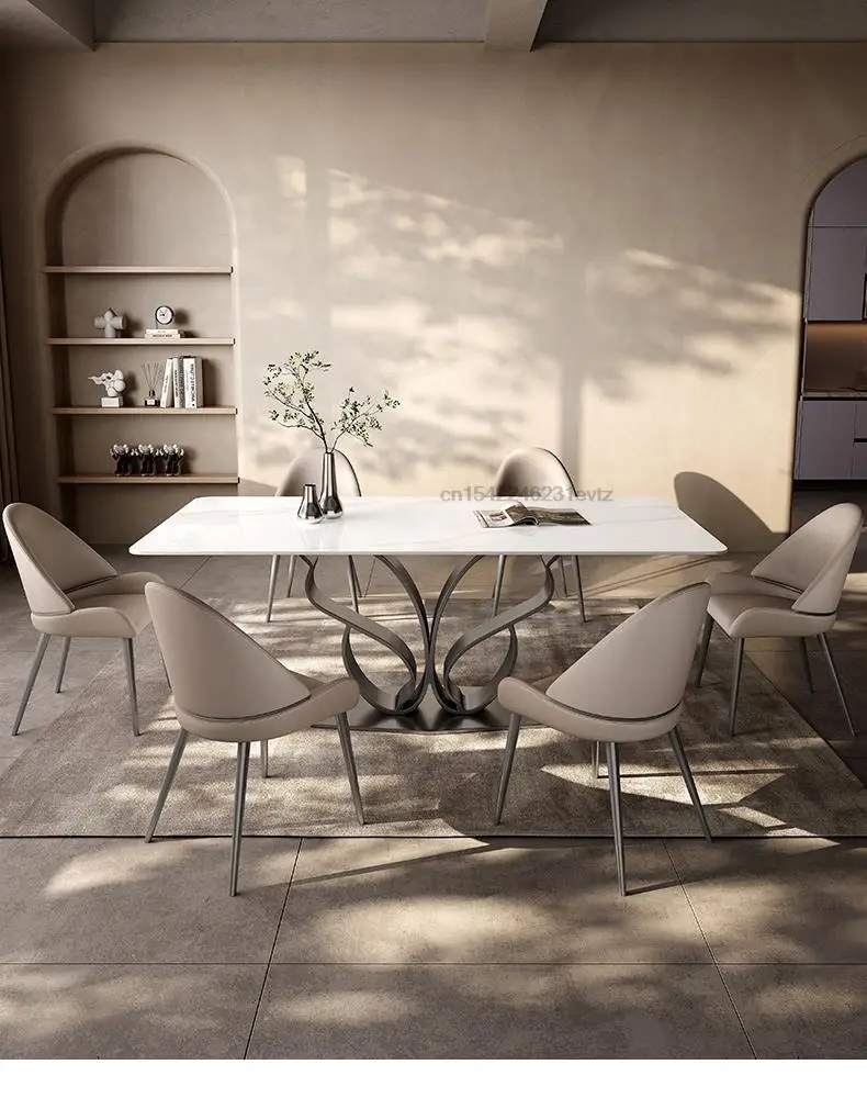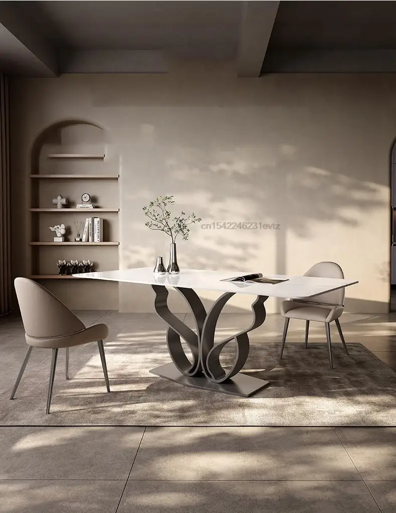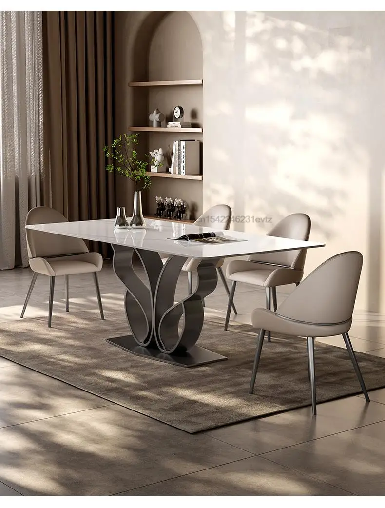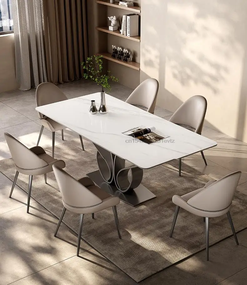 Italian Minimalist Bright Slate Dining Table Light Luxury Kitchen Furniture High-end Villa Restaurant Designer Dining Table Set