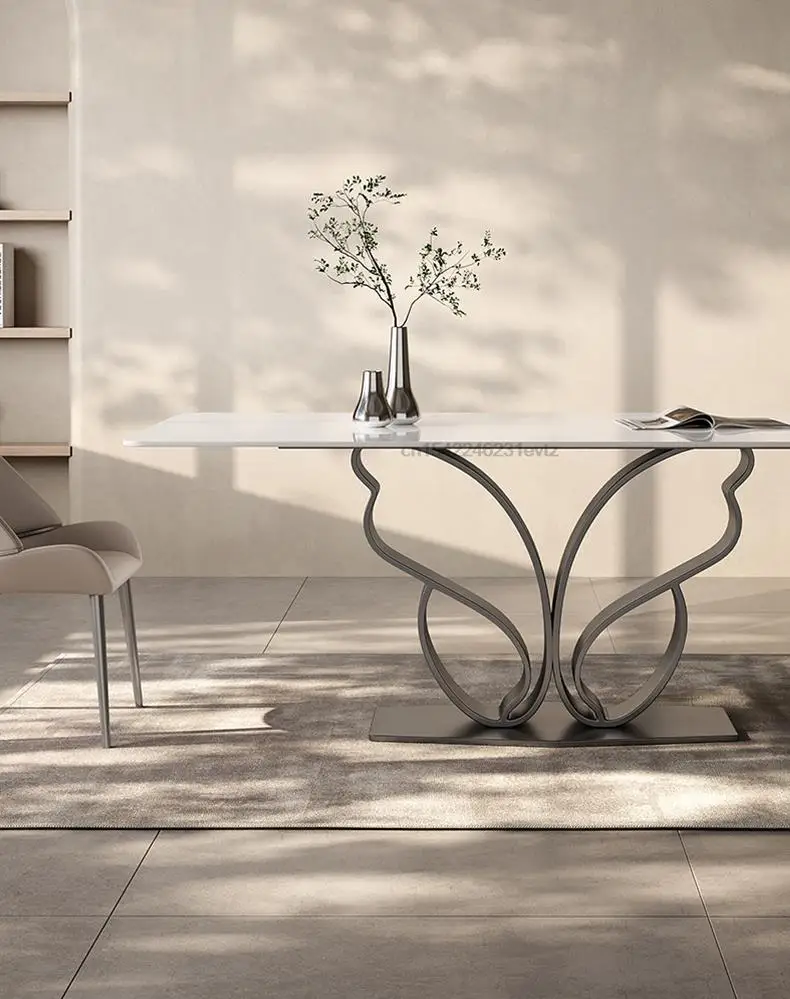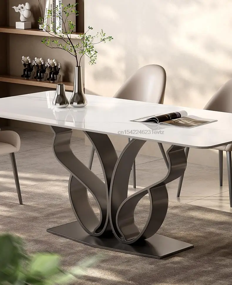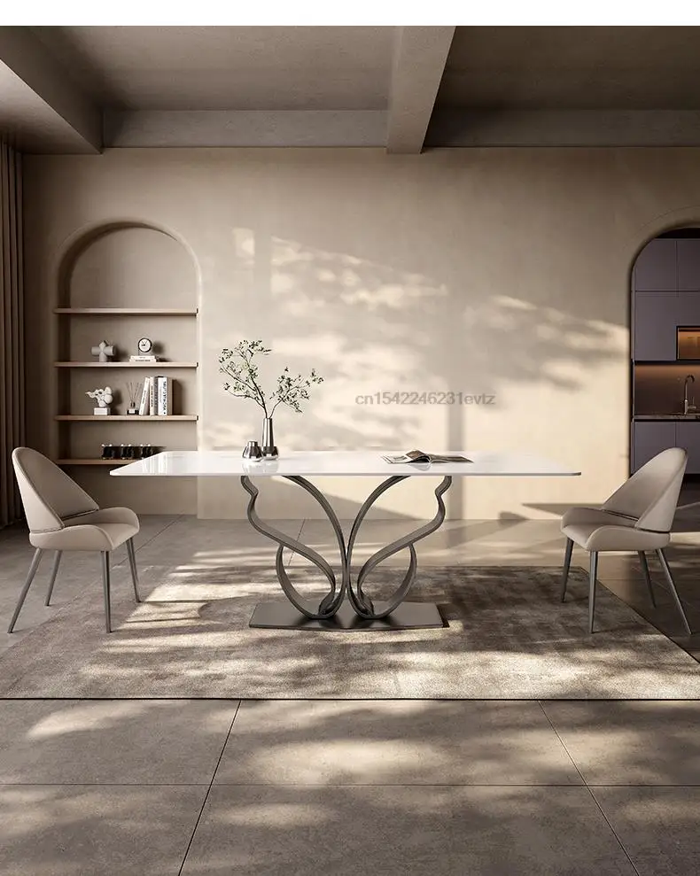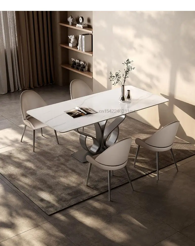 Italian Minimalist Bright Slate Dining Table Light Luxury Kitchen Furniture High-end Villa Restaurant Designer Dining Table Set