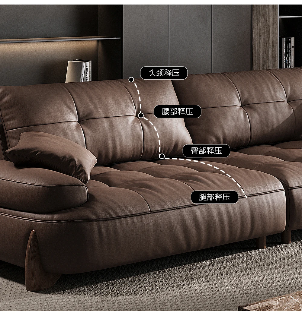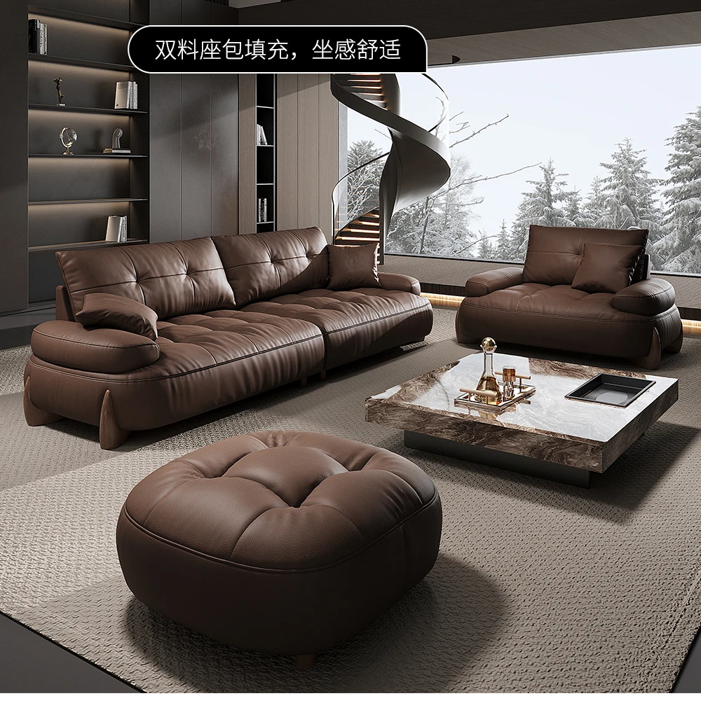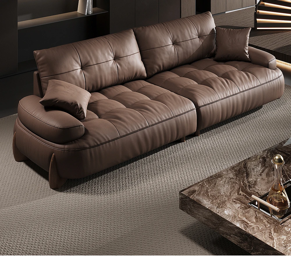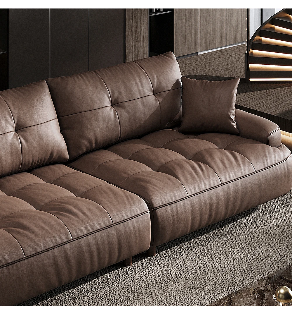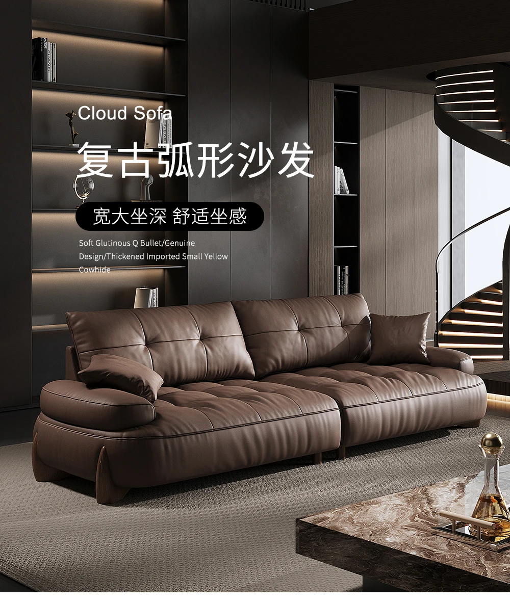 Italian minimalist leather sofa head layer cowhide modern simple retro three-seat living room small apartment leather sofa