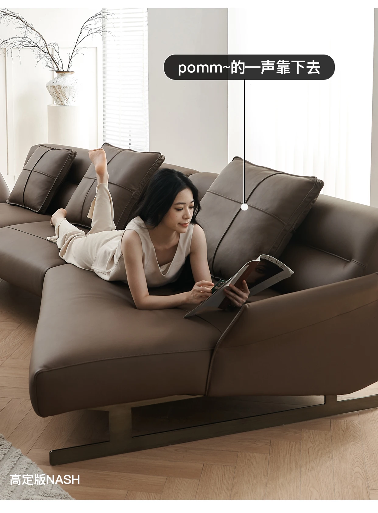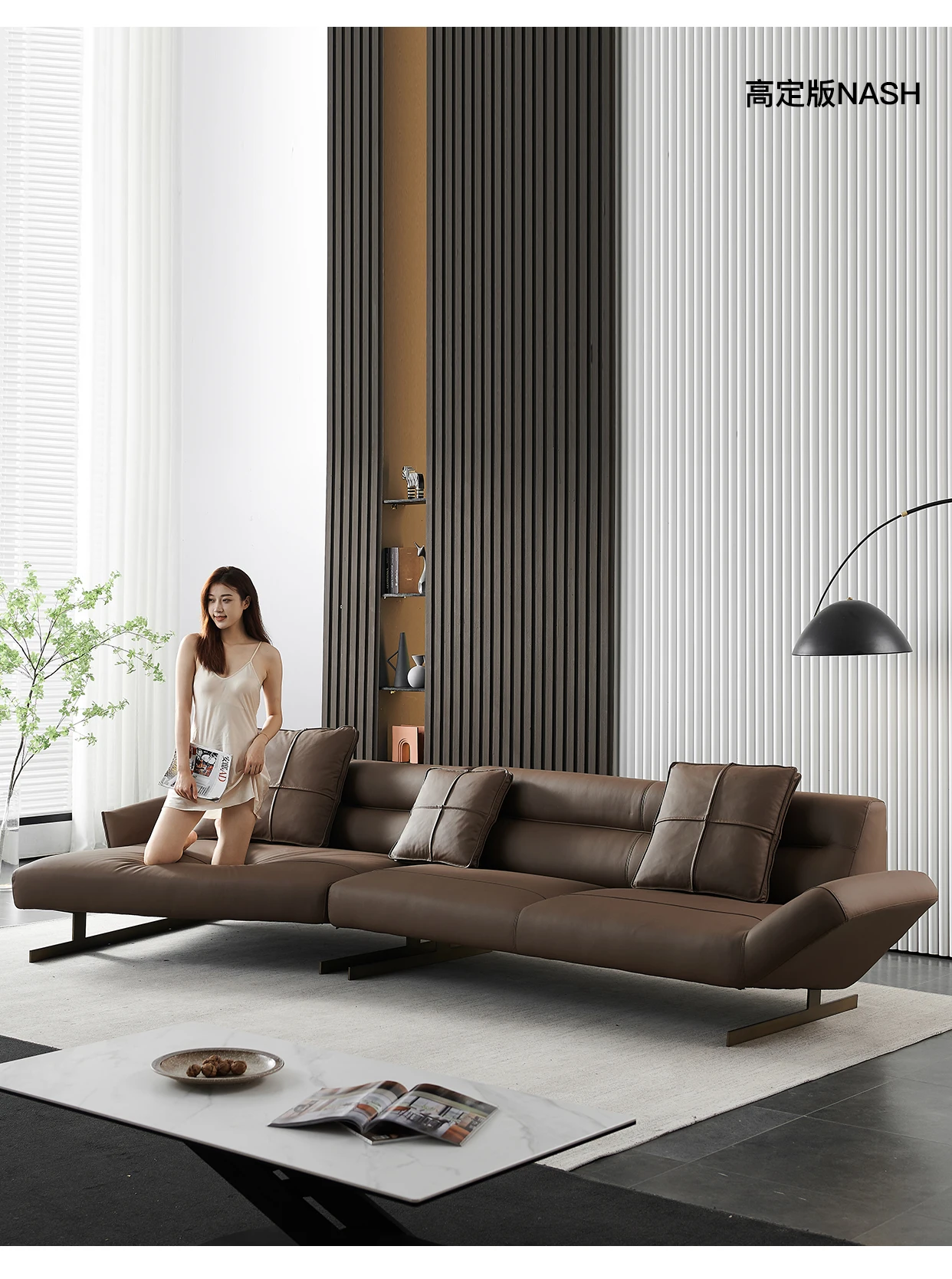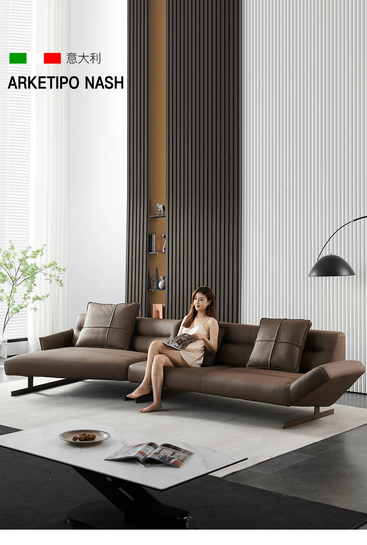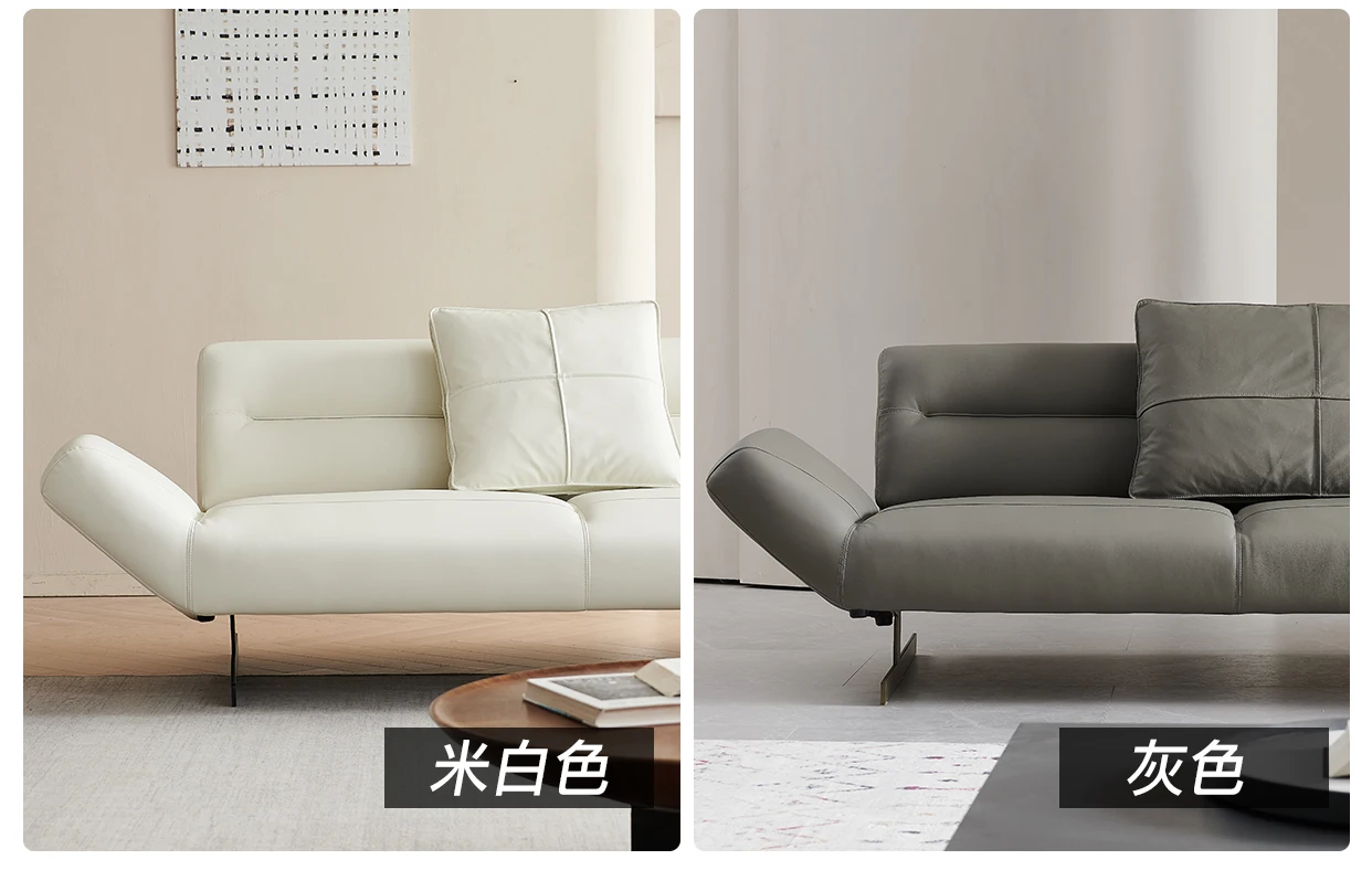 Italian Minimalist Leather Sofa Living Room First Layer Cowhide Shaped Modern Light Luxury High-End Sofa