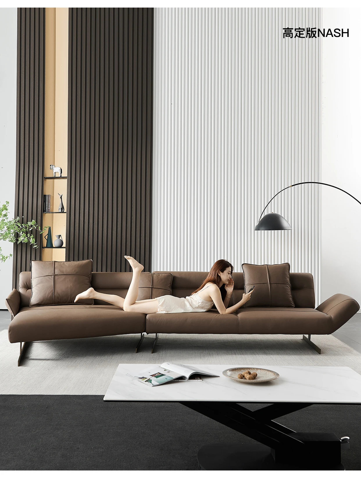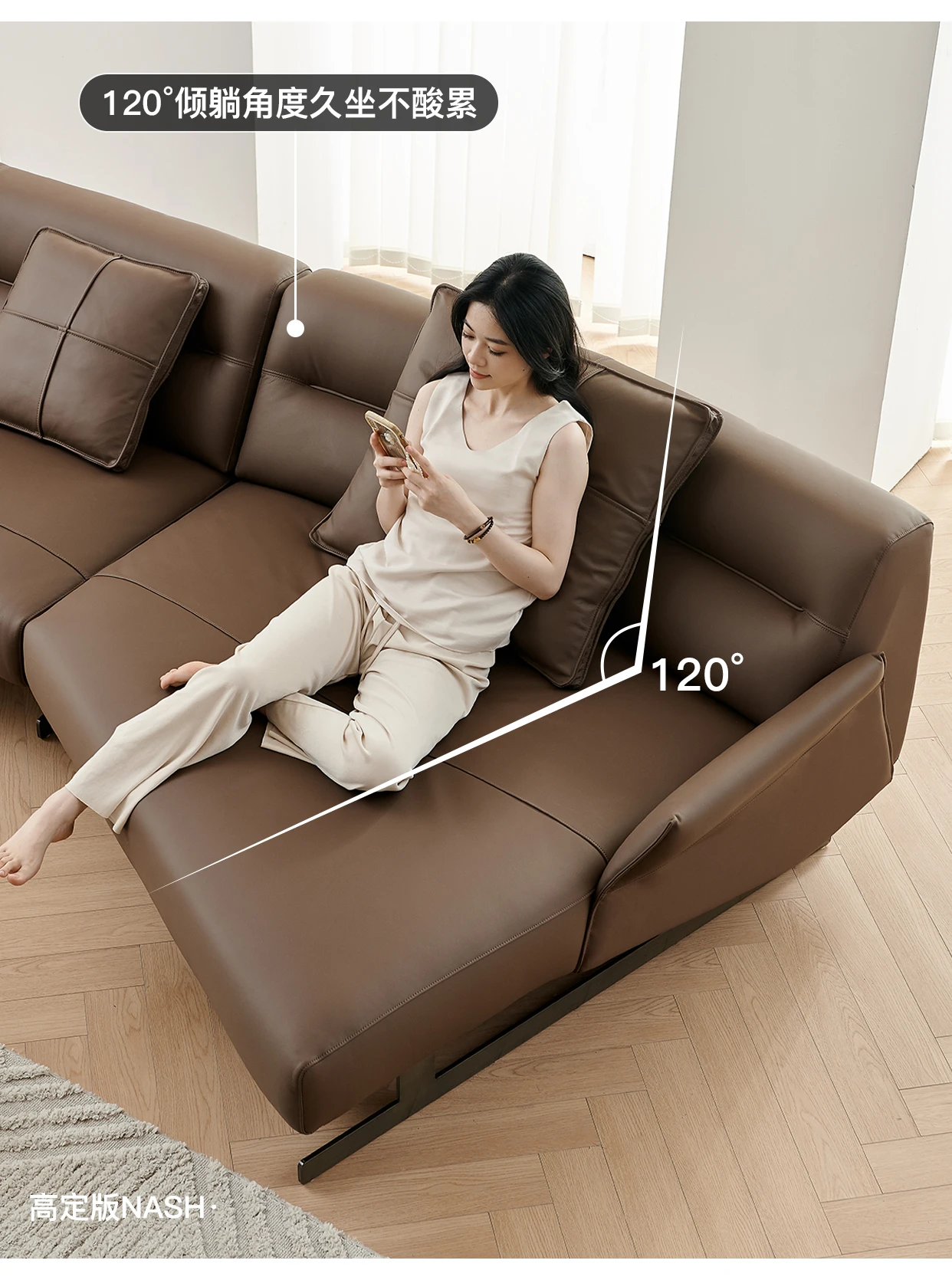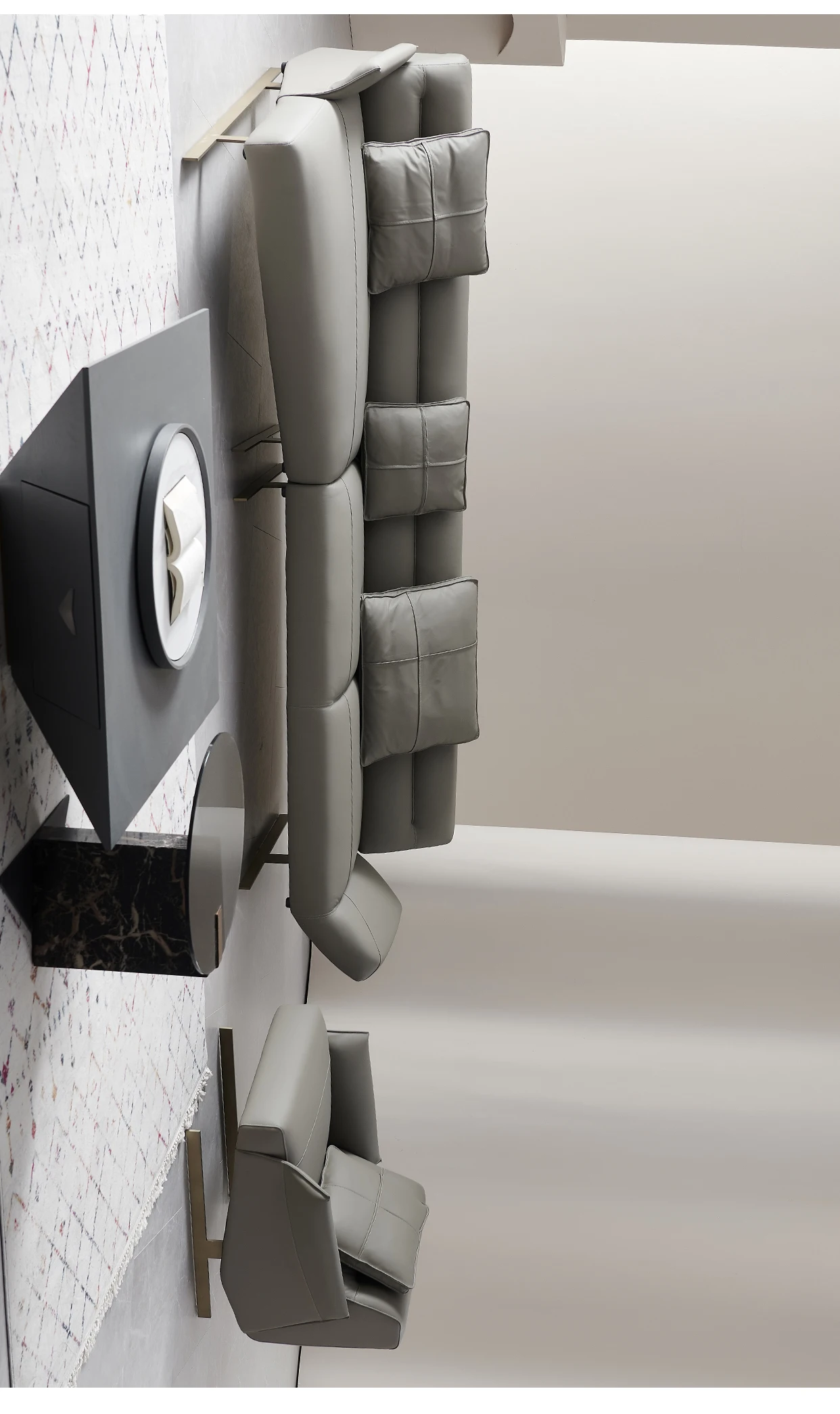 Italian Minimalist Leather Sofa Living Room First Layer Cowhide Shaped Modern Light Luxury High-End Sofa
