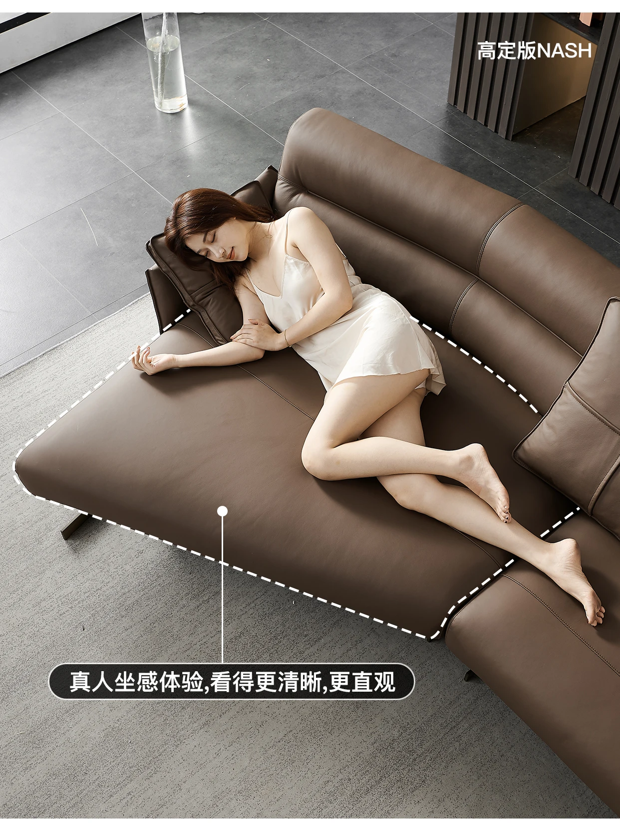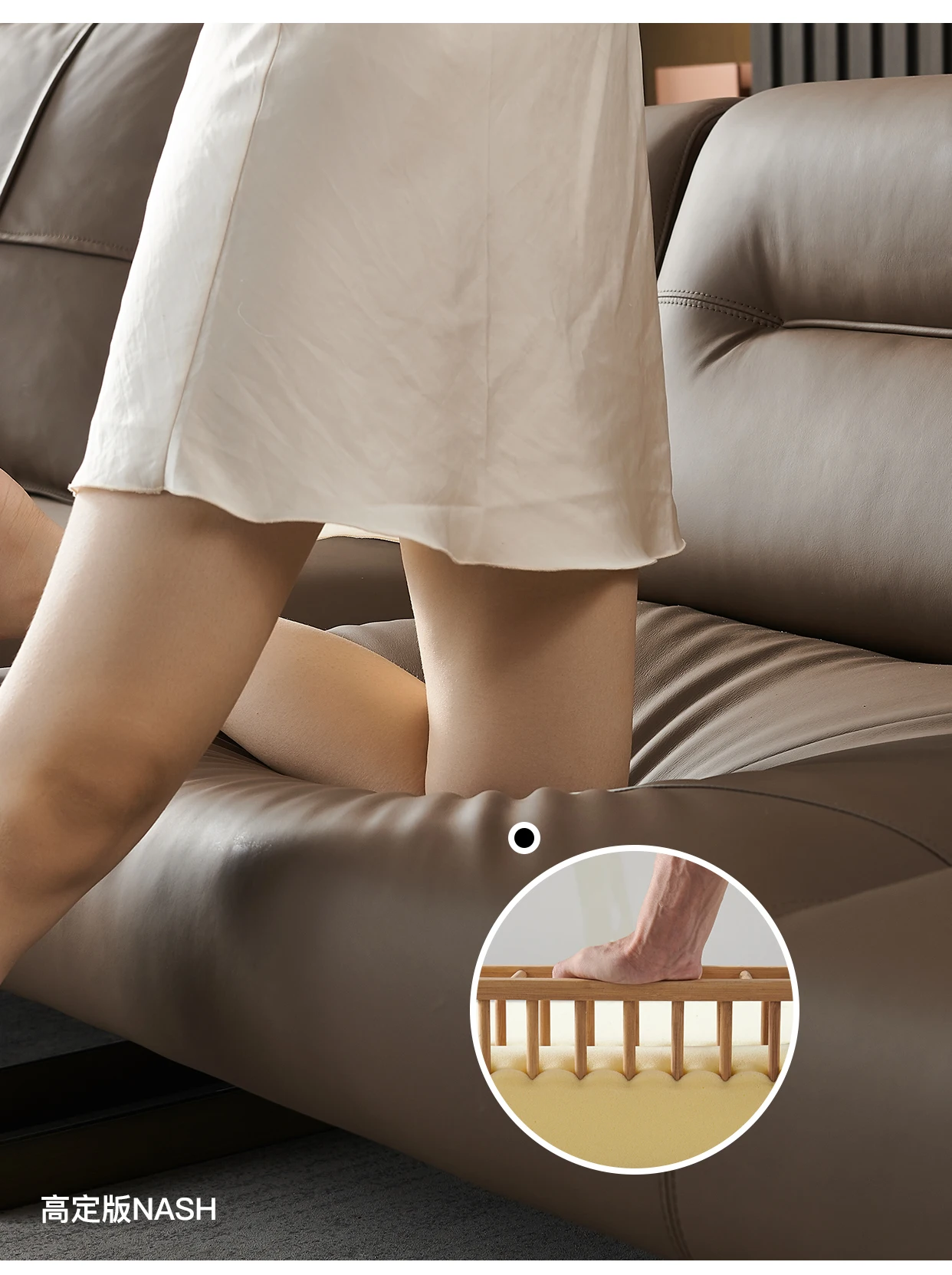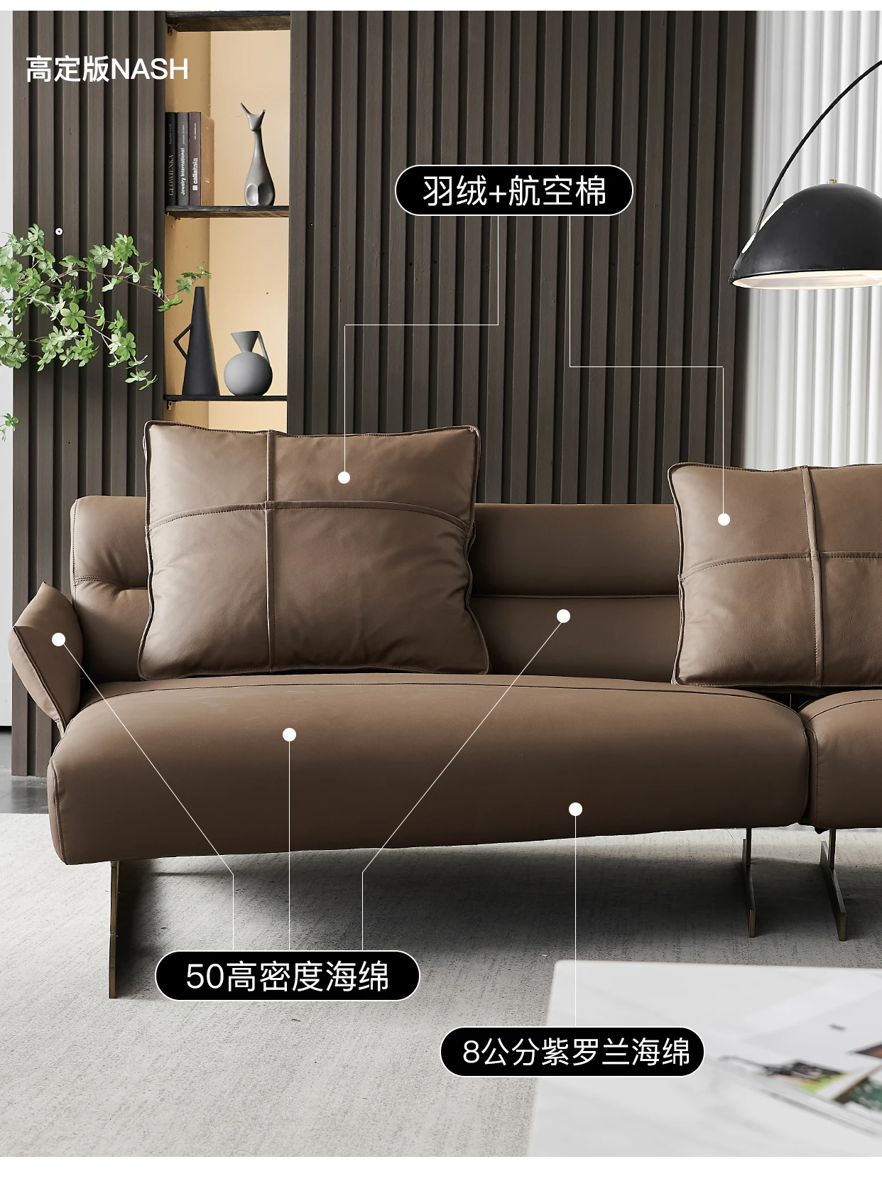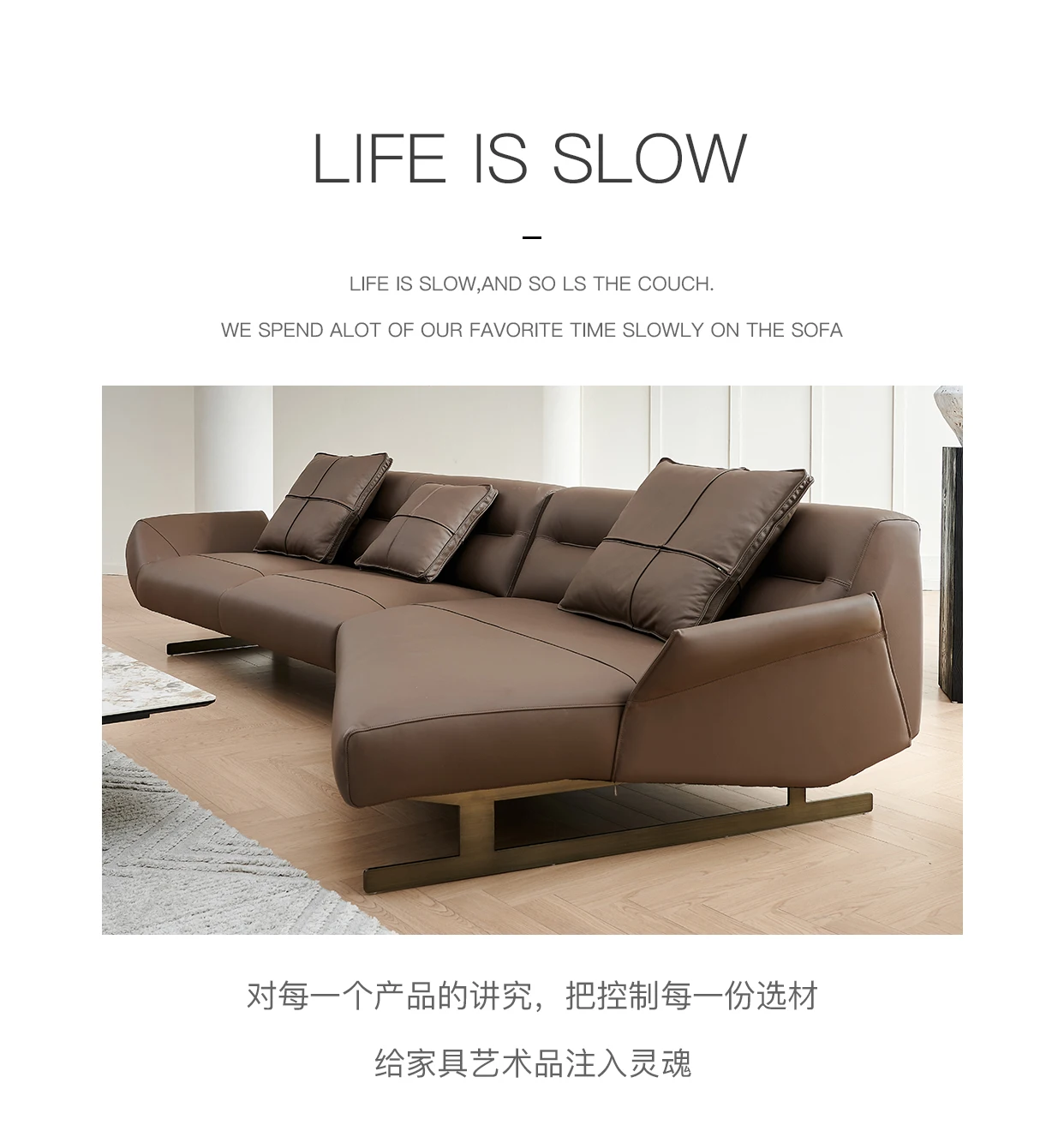 Italian Minimalist Leather Sofa Living Room First Layer Cowhide Shaped Modern Light Luxury High-End Sofa
