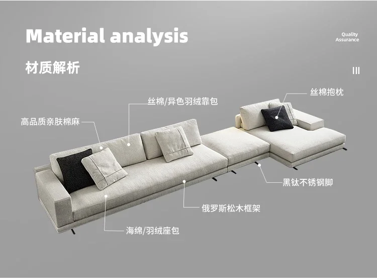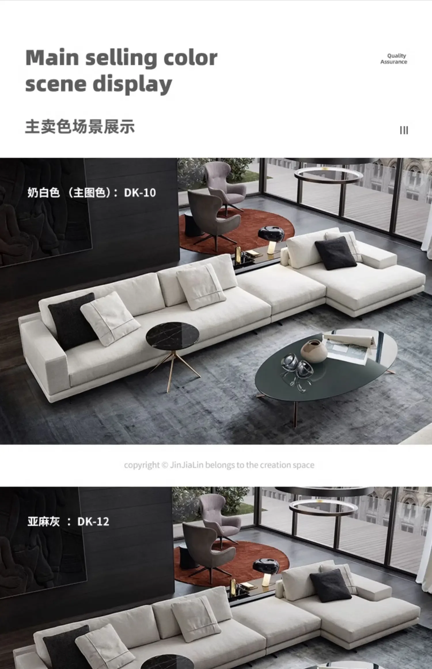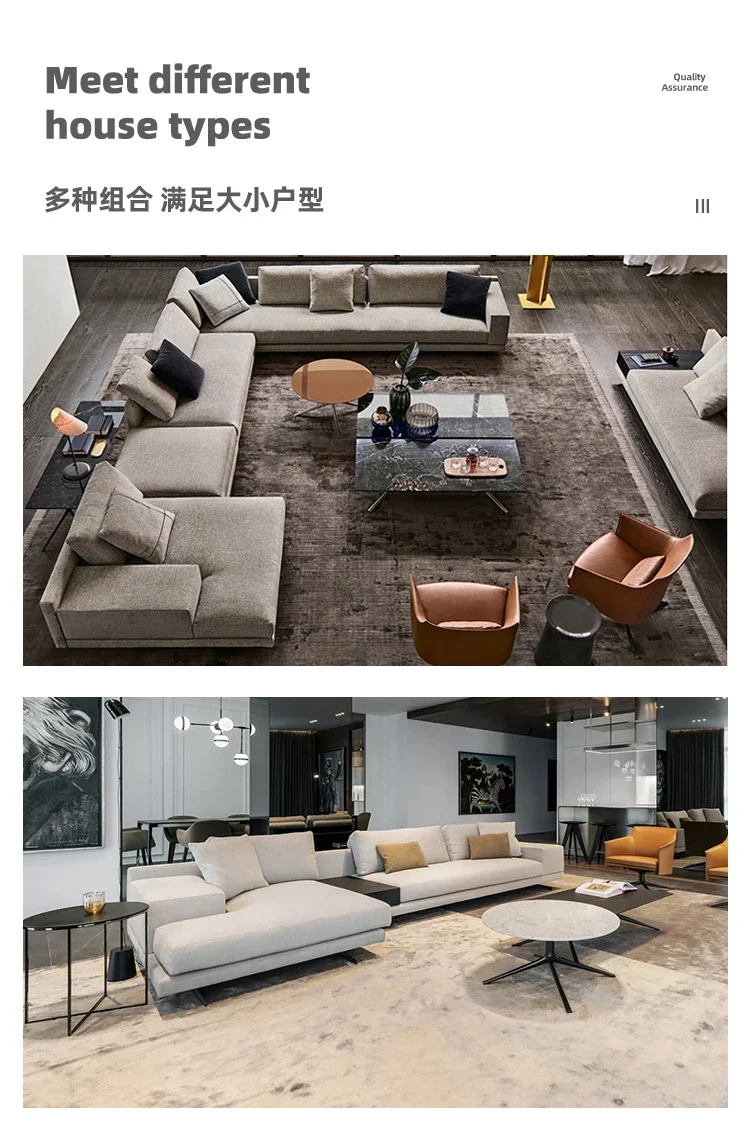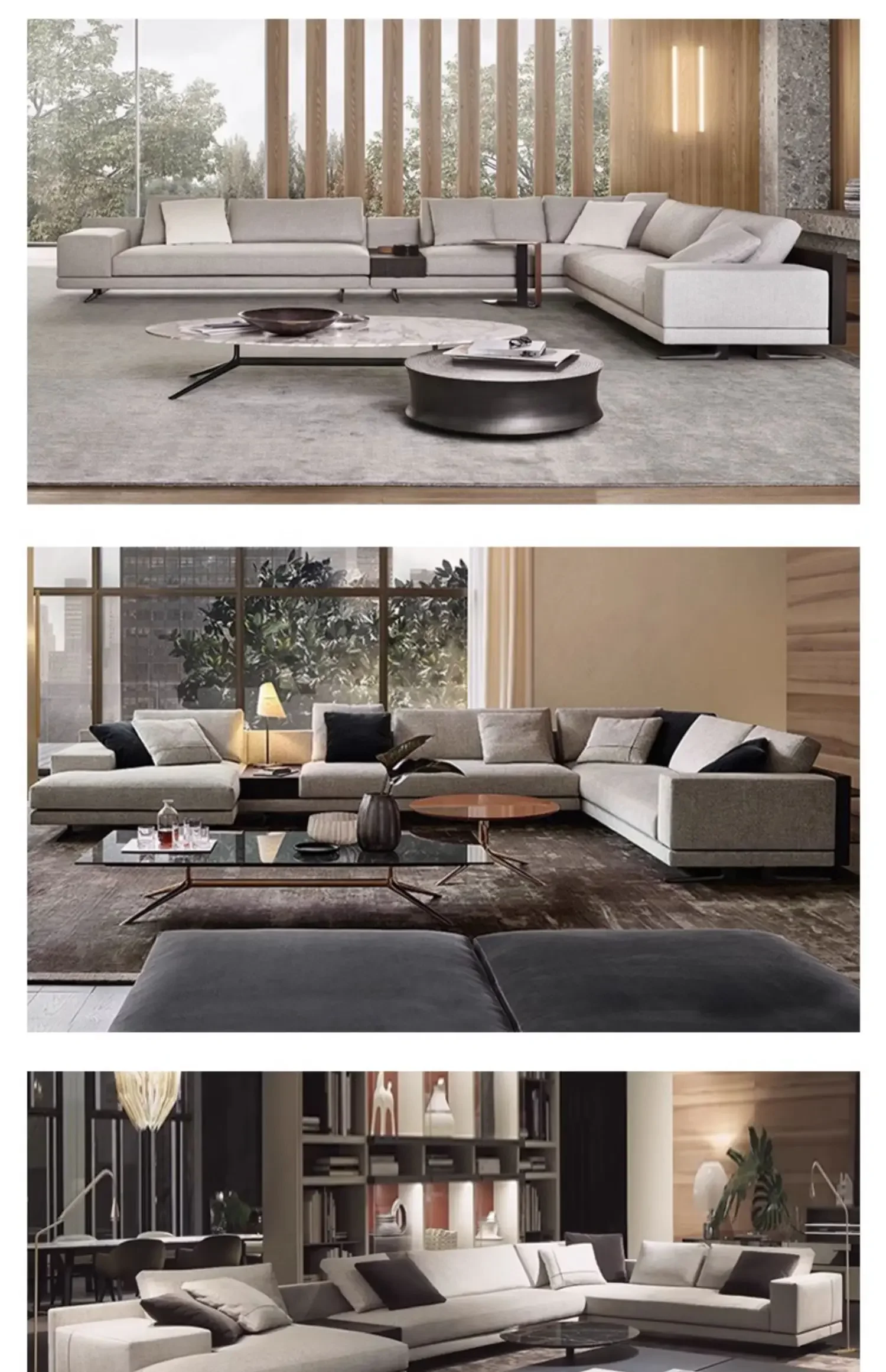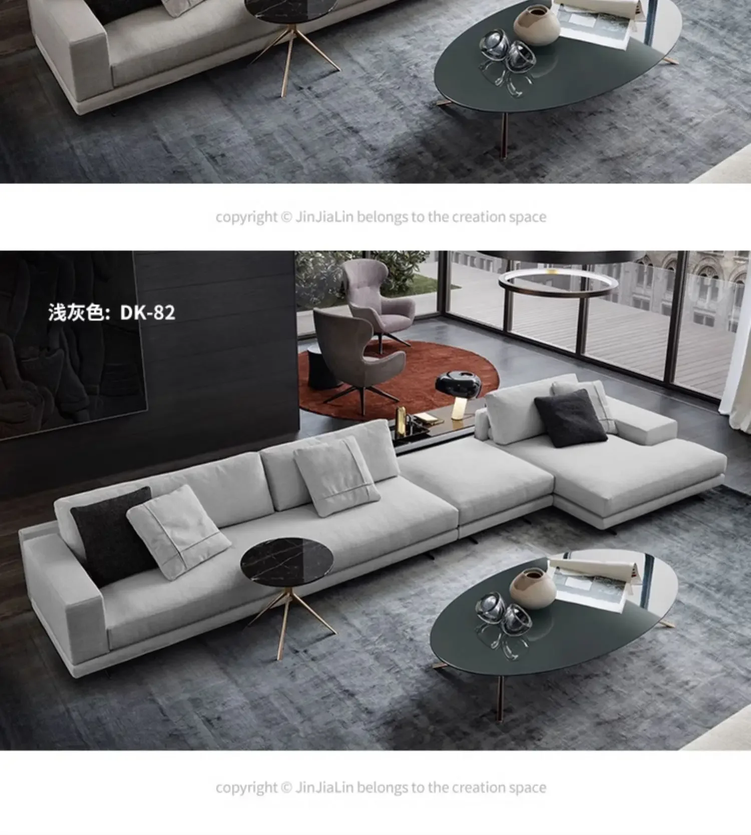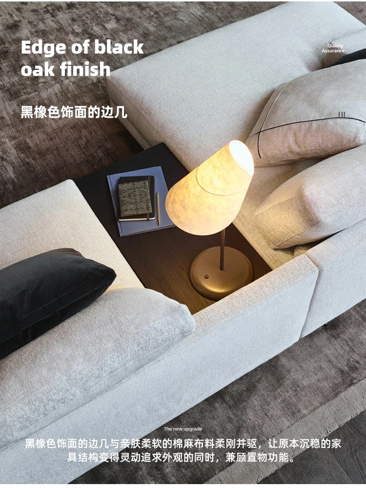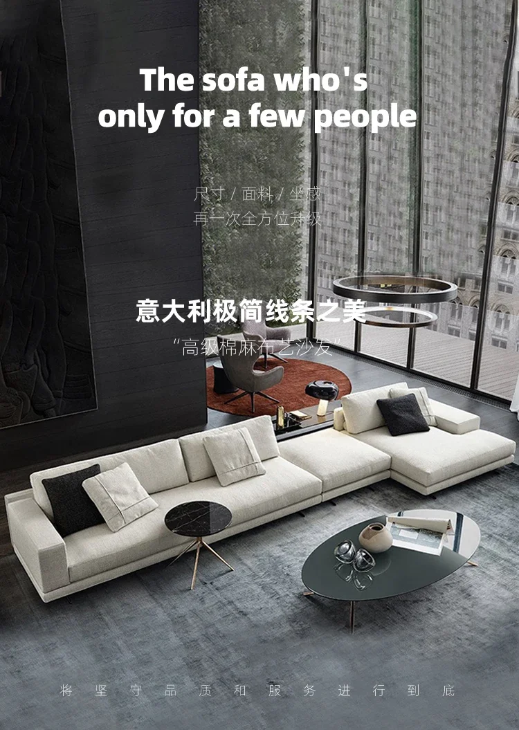 Italian Minimalist Living Room Modern Simple and Light Luxury Corner Cotton Linen Fabric Sofa