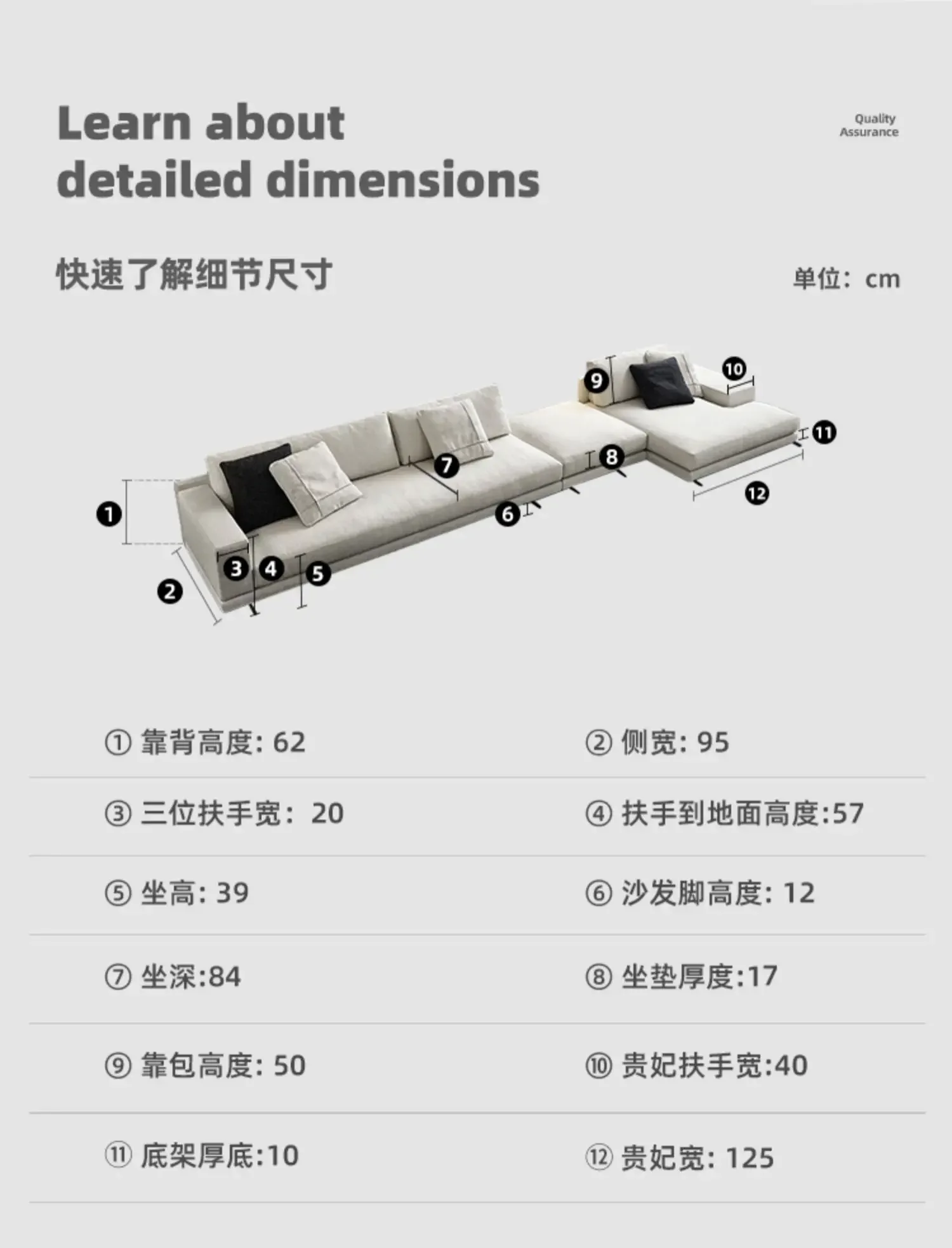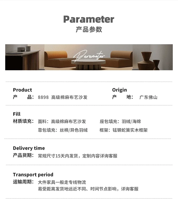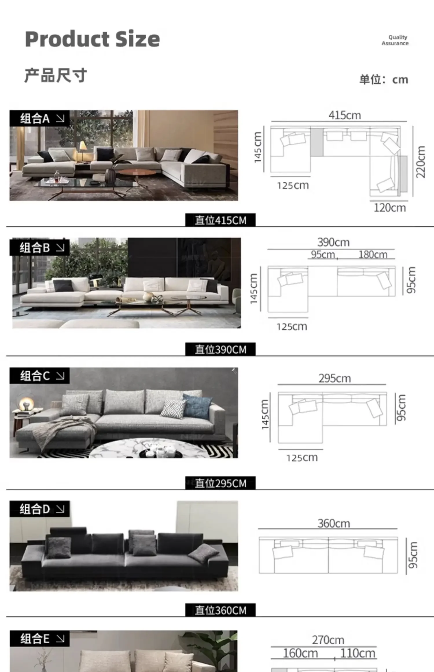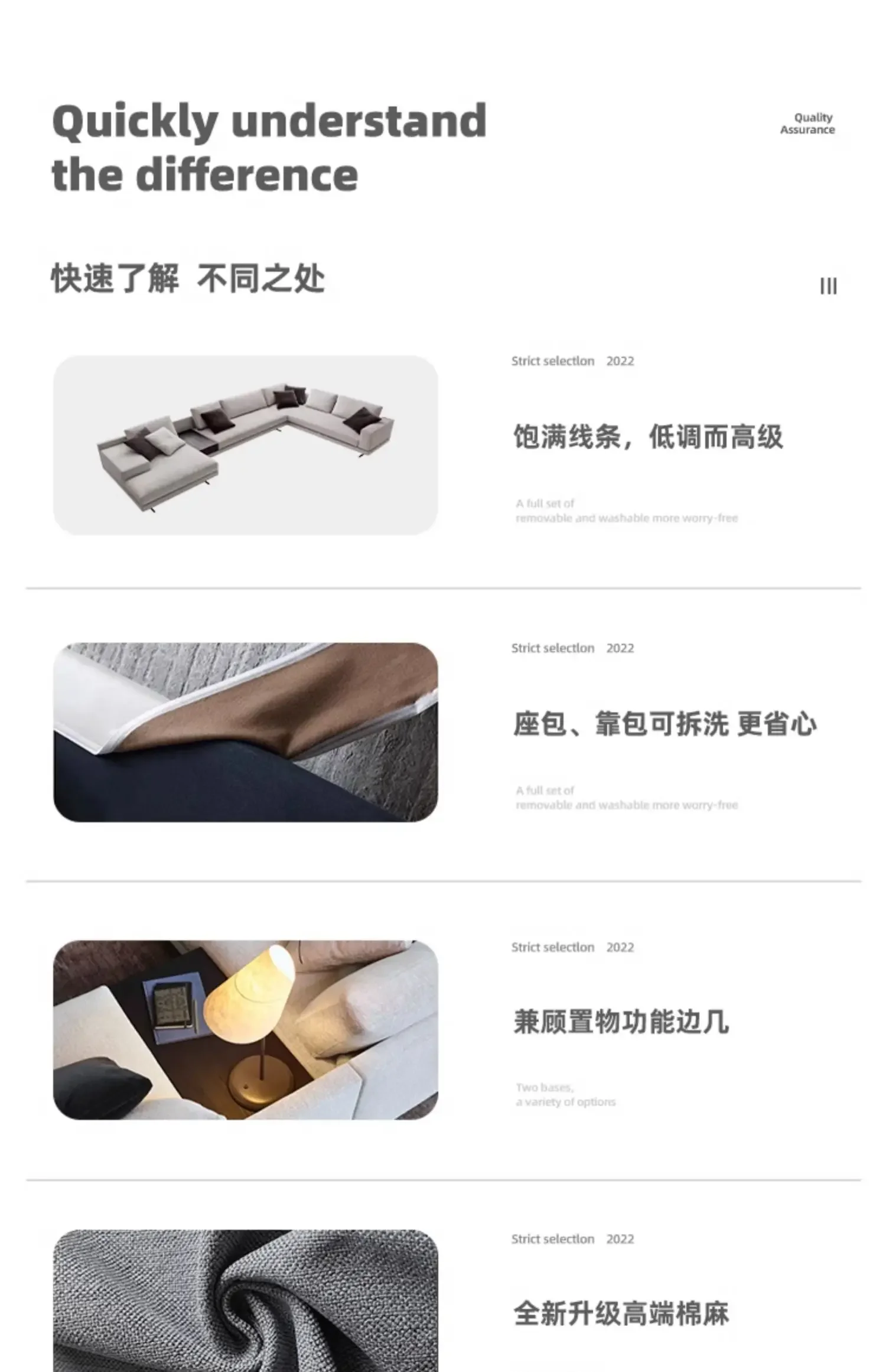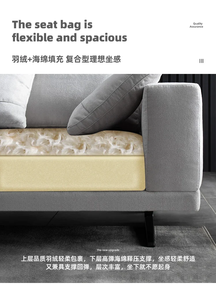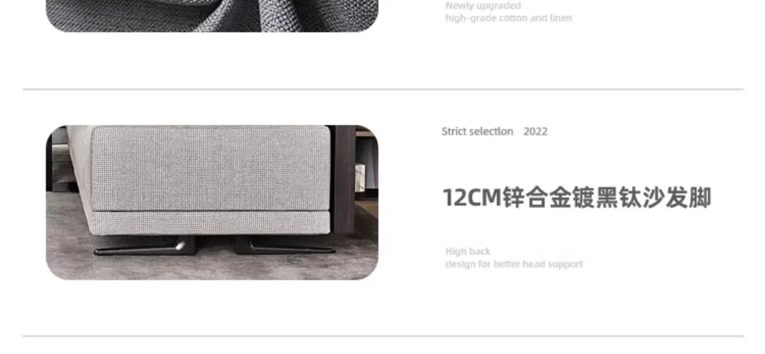 Italian Minimalist Living Room Modern Simple and Light Luxury Corner Cotton Linen Fabric Sofa