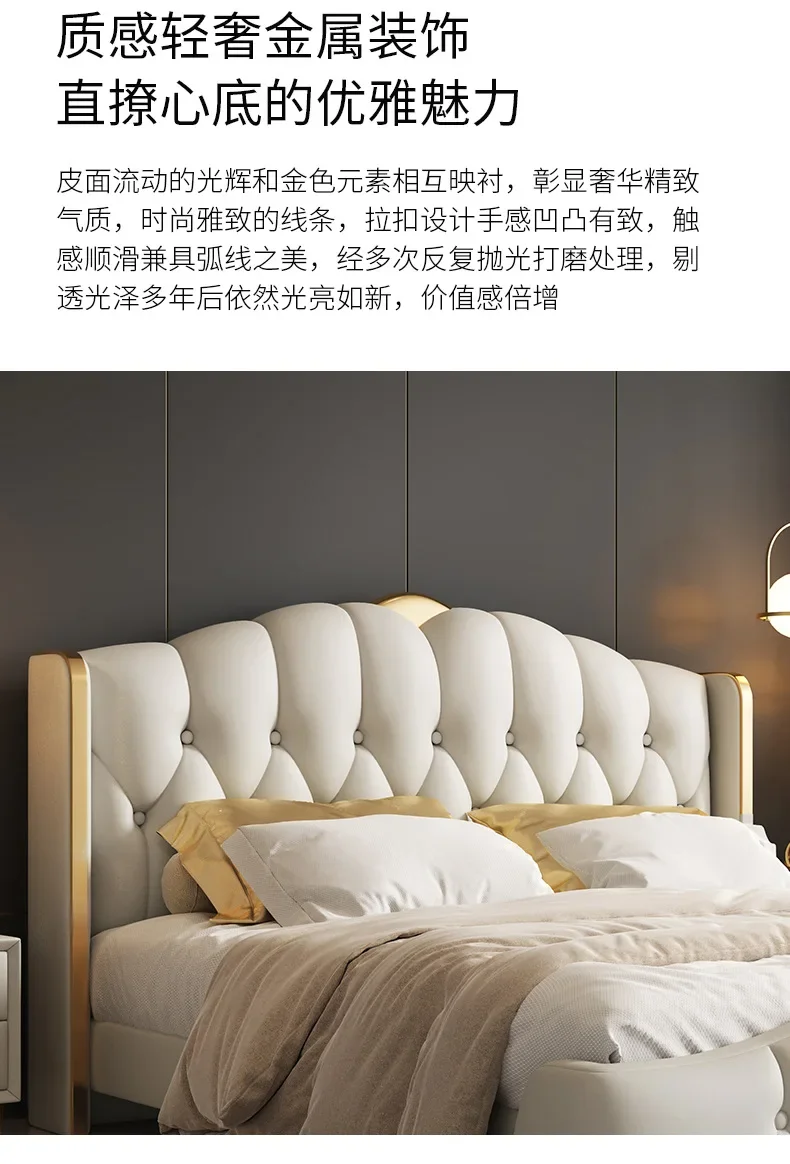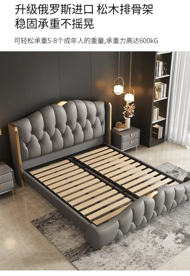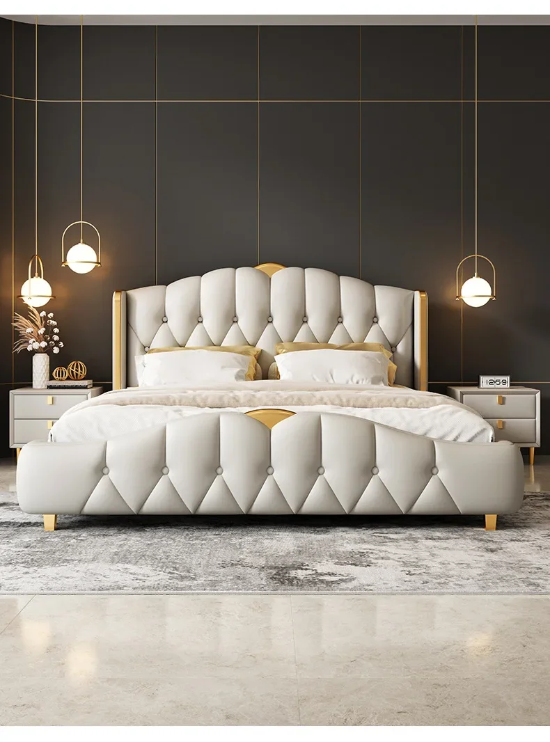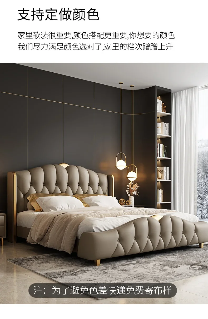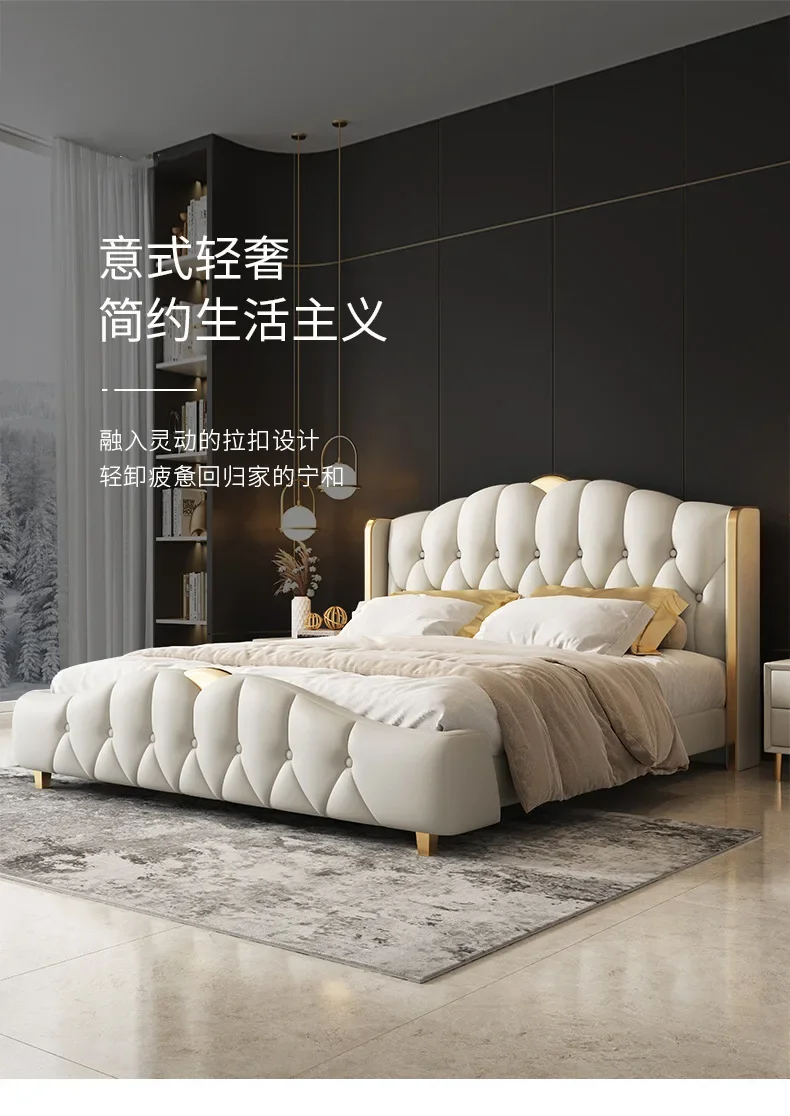 Italian minimalist Napa leather bed, light luxury, modern minimalist double bed, master bedroom, 1.8 king bed, 1.5 meter leather