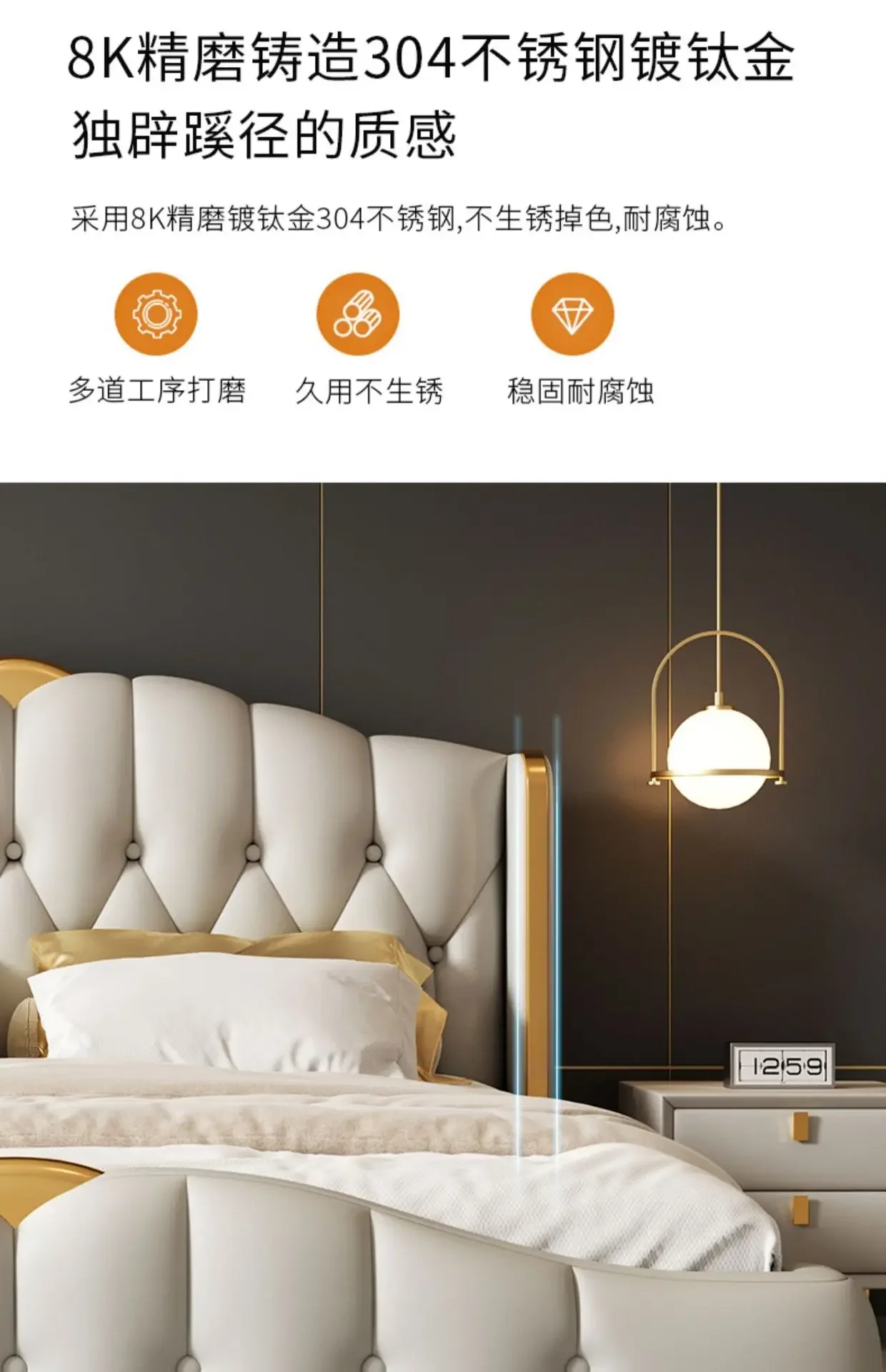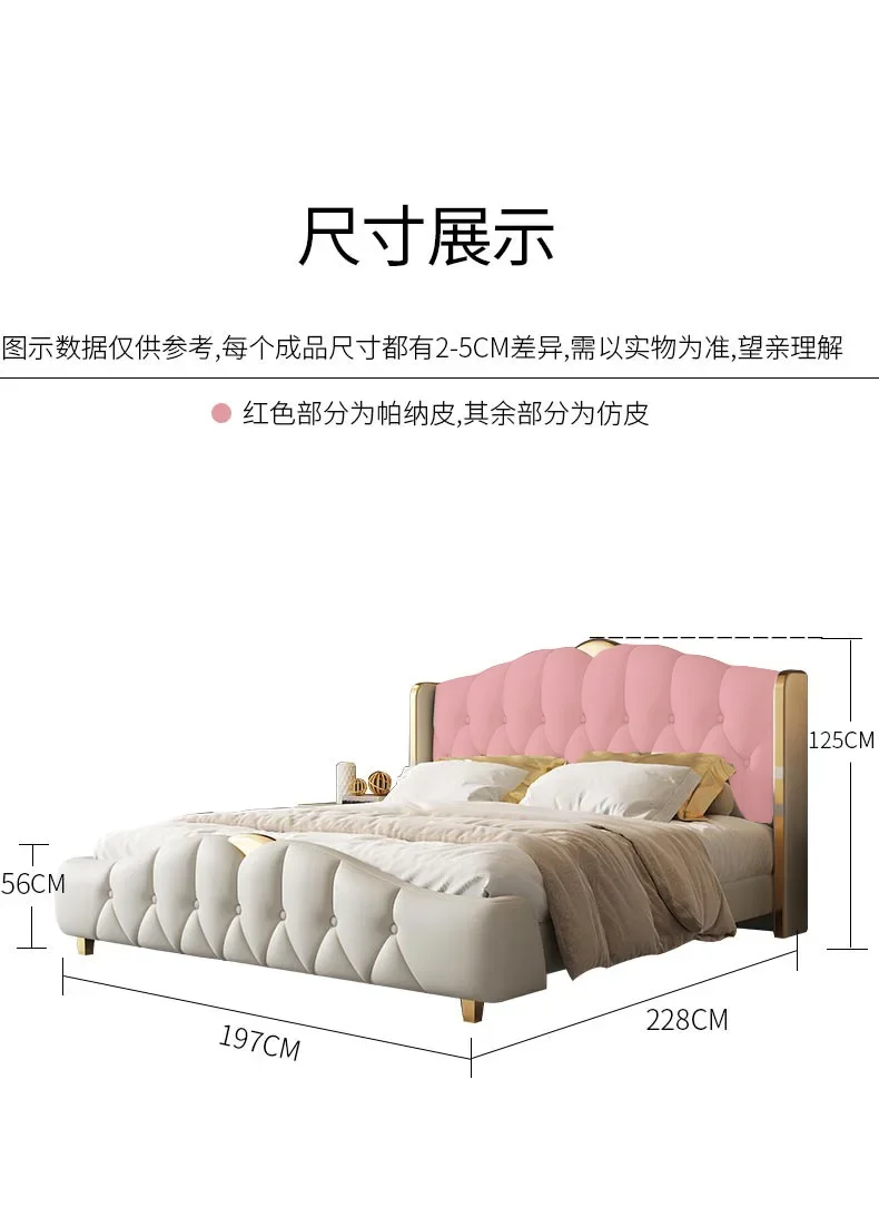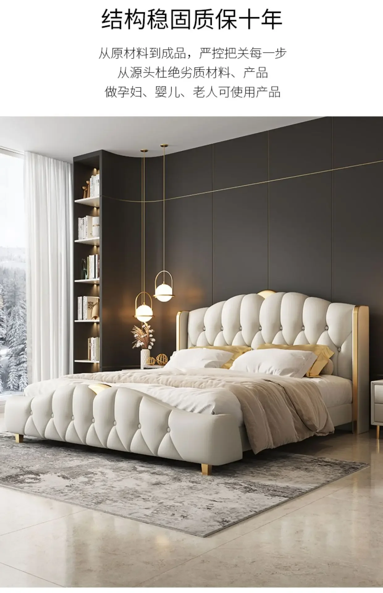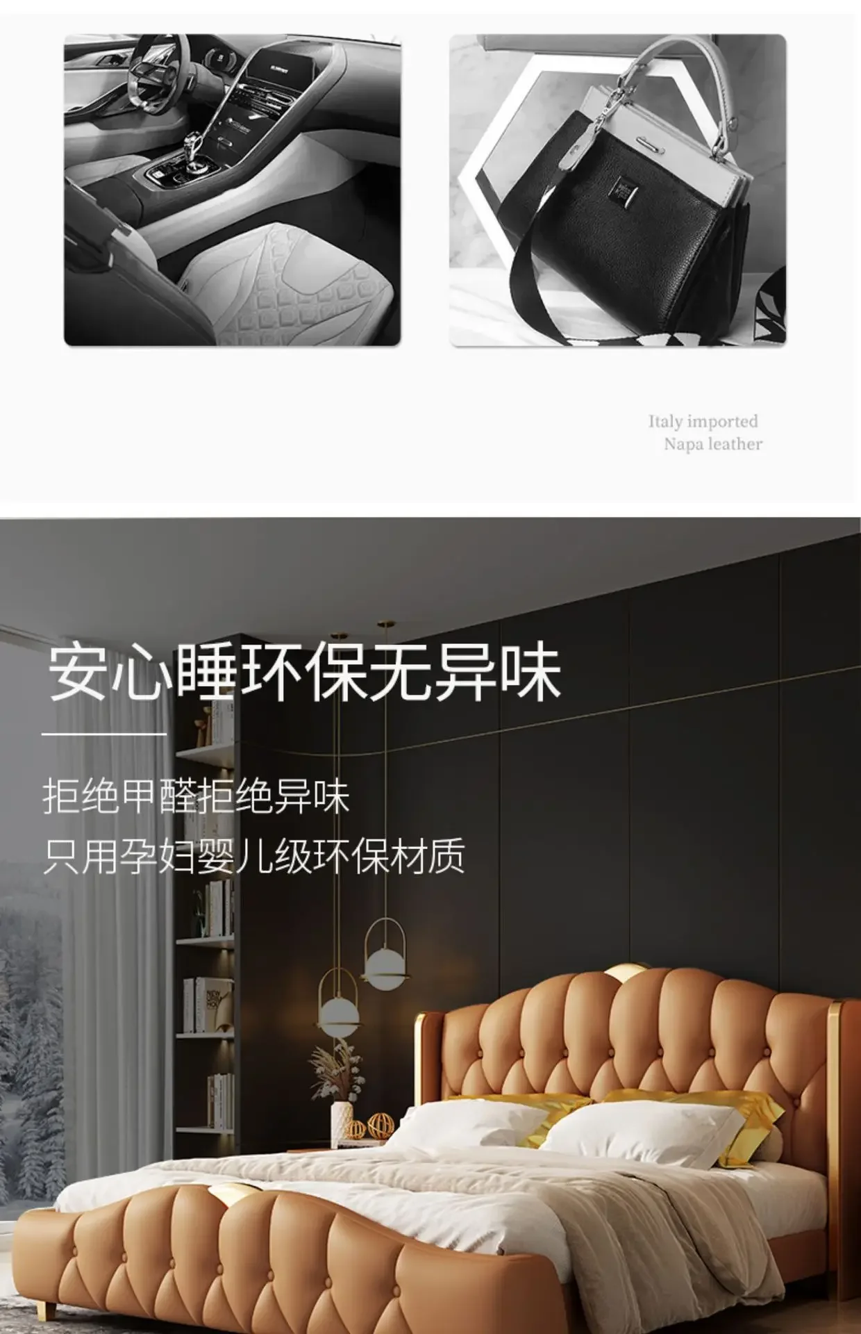 Italian minimalist Napa leather bed, light luxury, modern minimalist double bed, master bedroom, 1.8 king bed, 1.5 meter leather