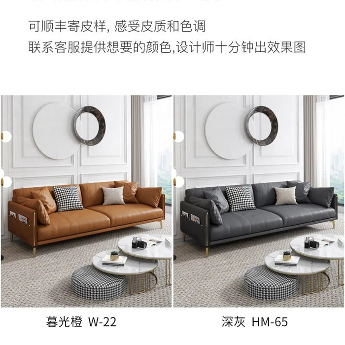 Italian-Style Light Luxury Napa Leather Sofa Living Room Fashionable Simple Modern Office Straight Sofa