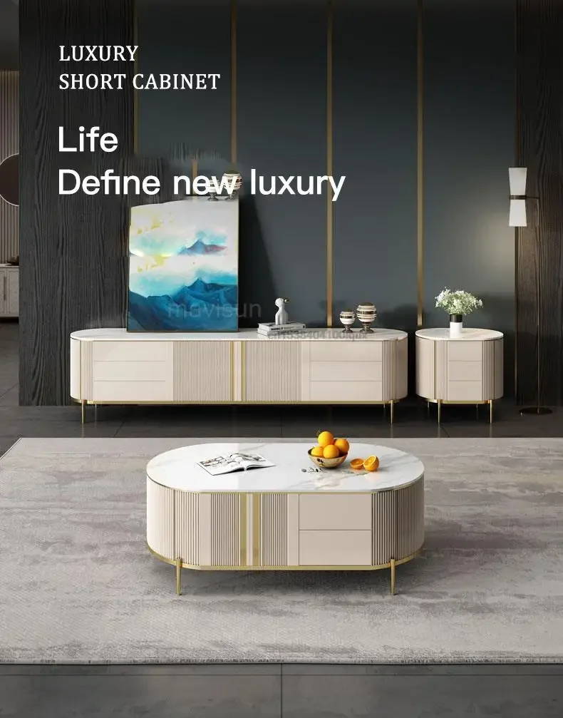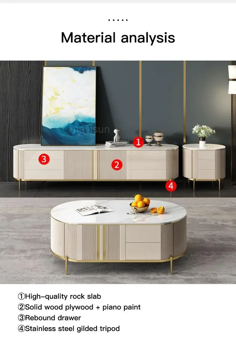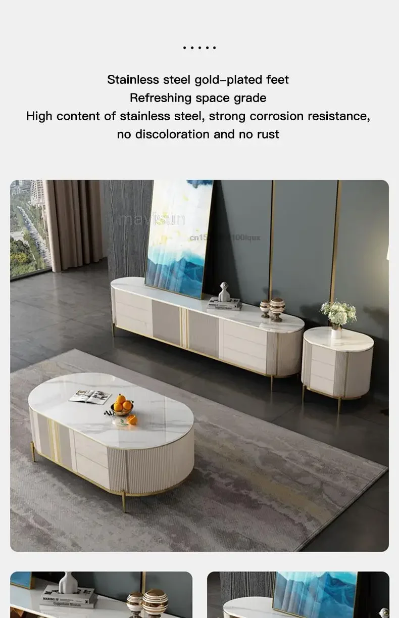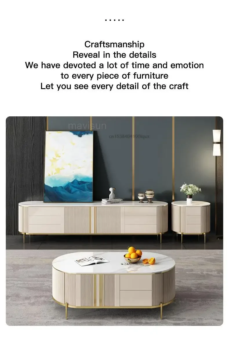 Italian Style Rock Board Light Luxury Coffee Table TV Cabinet Simple Modern Small Design Home Tv Stand Living Room Furniture