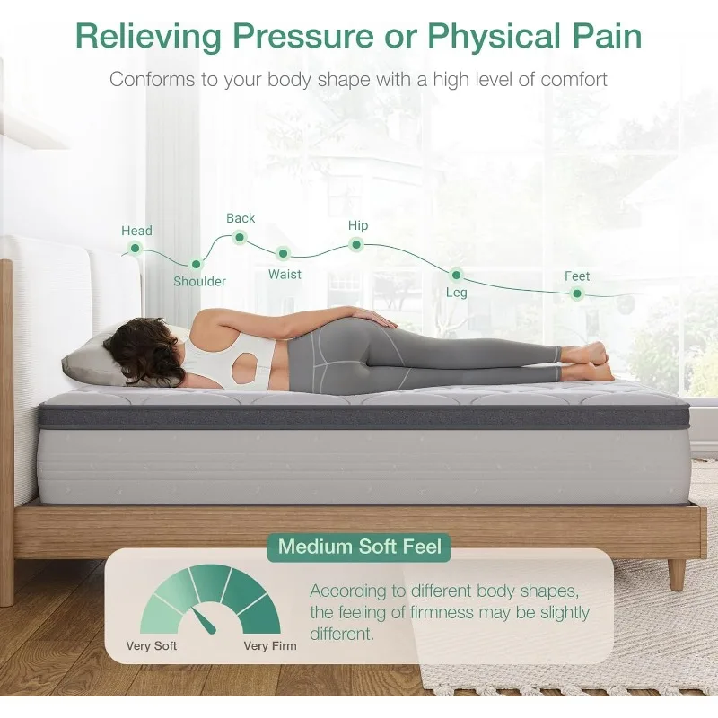 【Peaceful night without disturbance】: Pocket coils move independently, absorbing movement and preventing it from spreading across the full spring mattress. The combination of foam and springs provides both support and motion absorption, ensuring that you and your partner can rest peacefully without interruption. Enjoy an undisturbed night's sleep with the full mattress 12 inch.