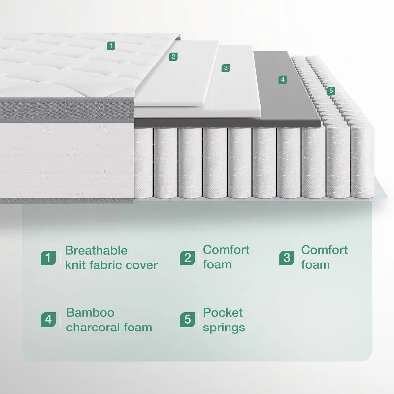 【Hybrid construction enhances comfort】: Indulge in the ultimate sleep experience with the full size mattress, which combines bamboo charcoal foam and individually pocketed springs. This full mattress will cater to your every need, offering the perfect blend of support and plush. Whatever sleeper you are, this hybrid mattress full will take you to the next level of comfort.