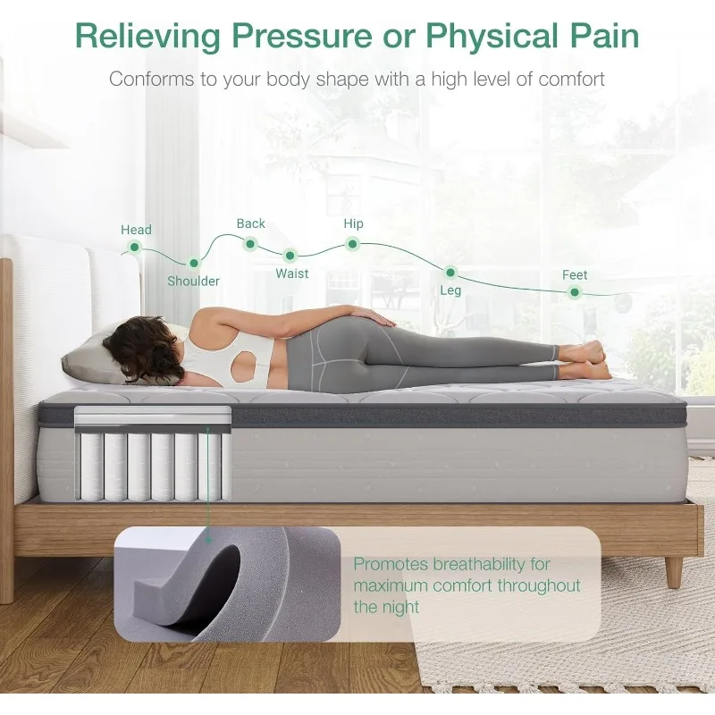 【Optimal Support and Comfort】:full size mattress 12 inch utilizes independently wrapped pocket coils for targeted support. The foam comfort layer conforms to your body, relieving pressure on shoulders and hips and promoting proper spinal alignment. As a result, this plush full mattress has a balanced and comfortable sleeping surface that optimizes overall comfort.