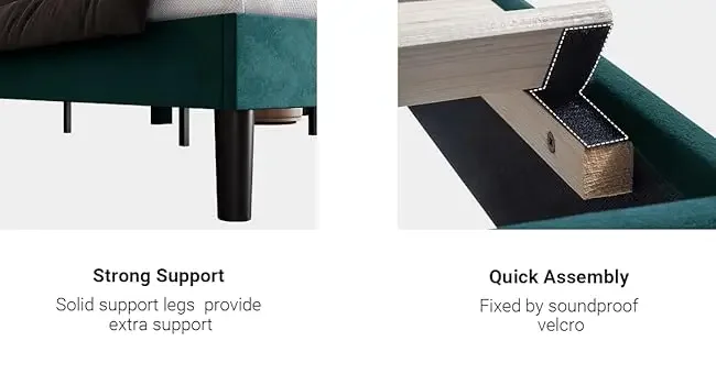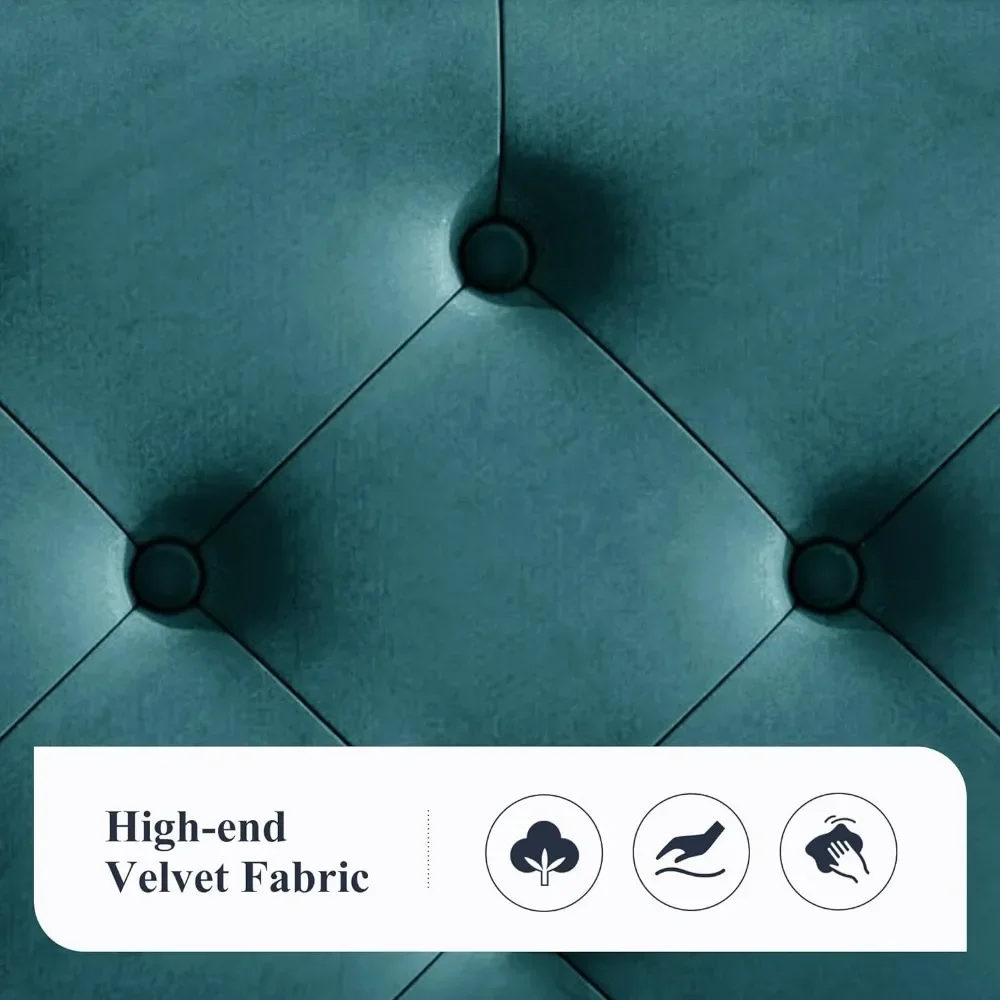 King size bed frame, velvet padded platform bed with adjustable diamond button tufting and nail head decoration headboard, bed