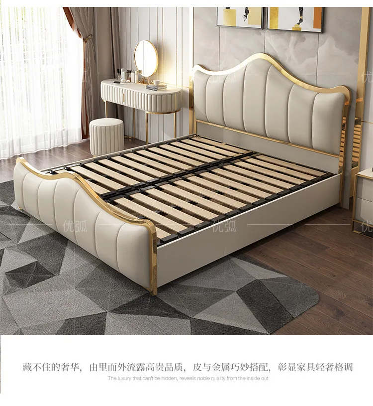 Leather Bed Modern Simple Double Bed Master Bedroom Storage Wedding Bed 1.81.5m Small Family Solid Wood Bed Light Luxury Modern