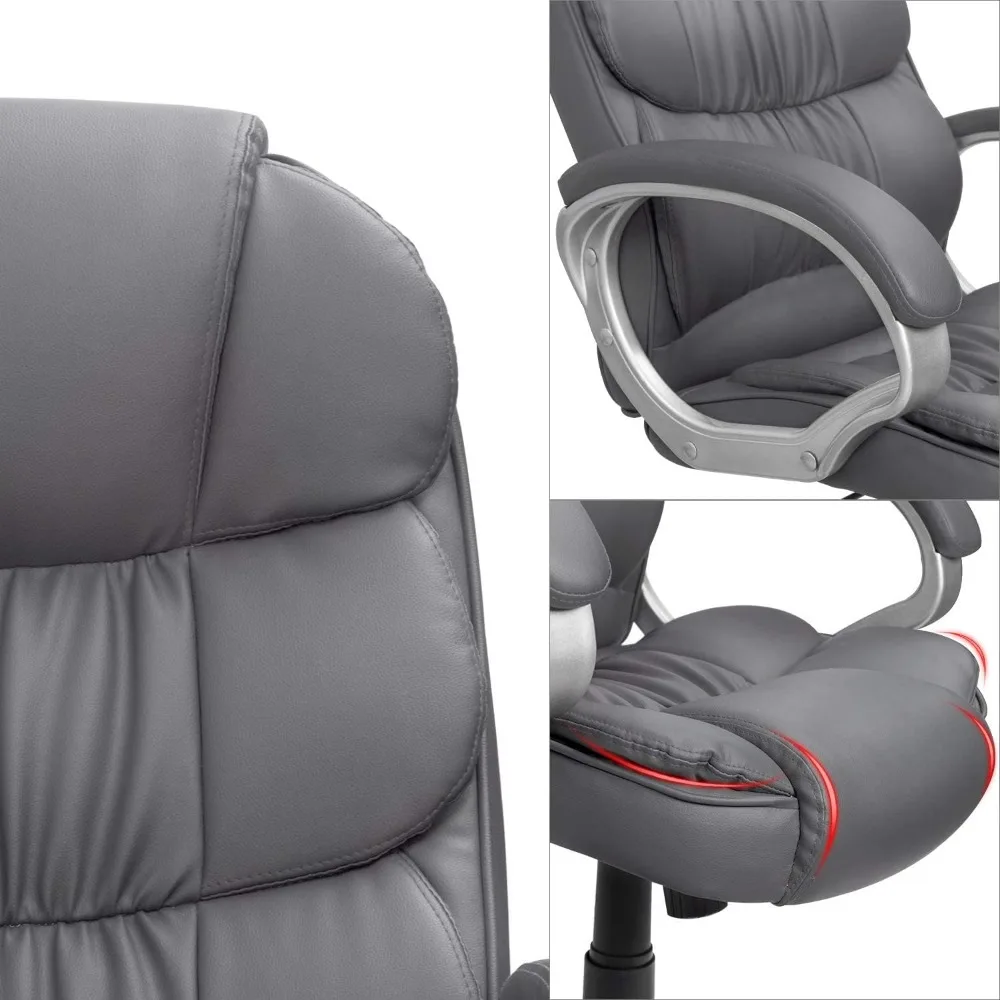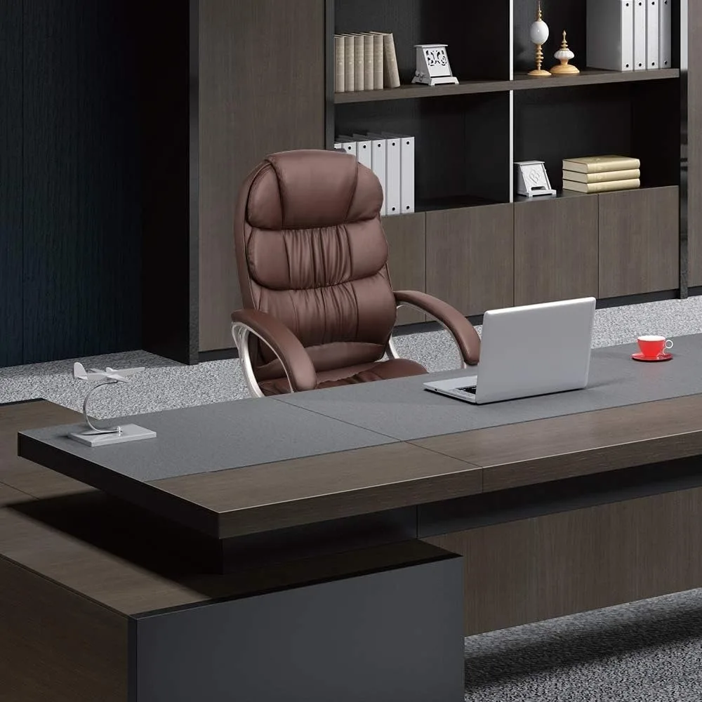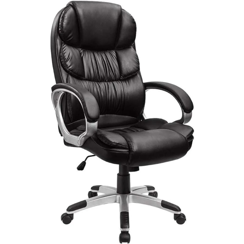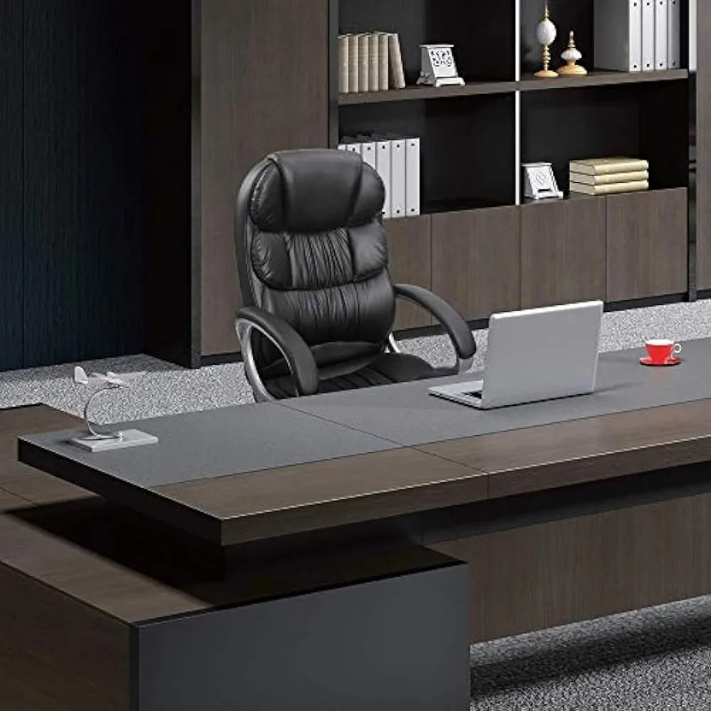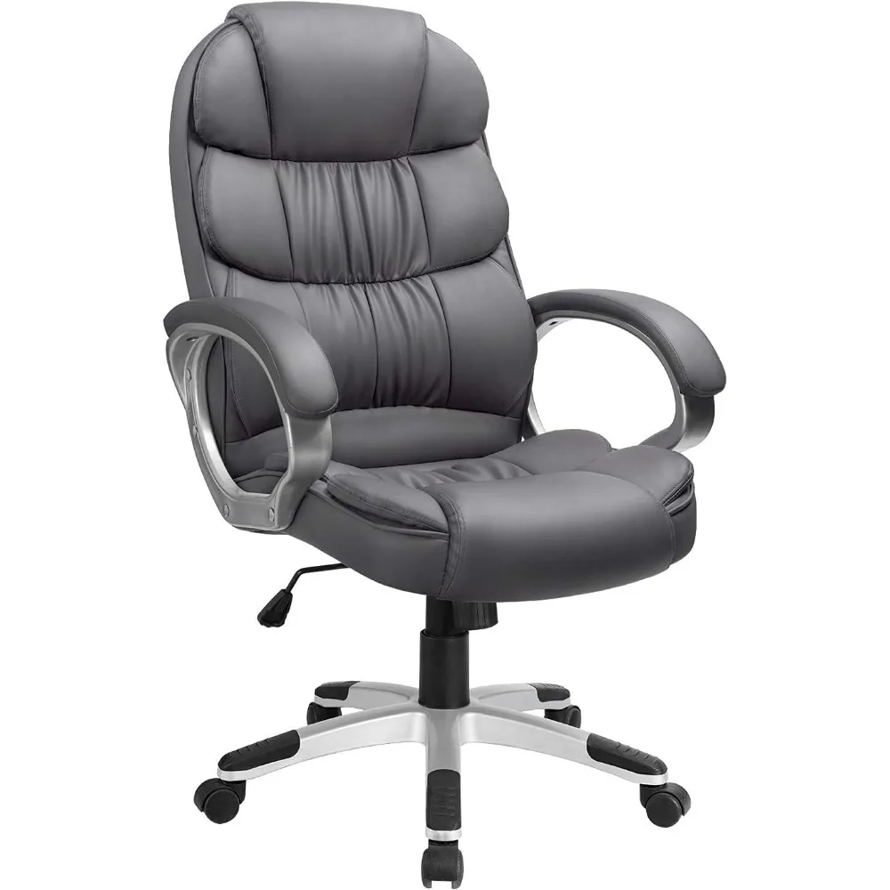 Leather High Back Office Chair Ergonomic Swivel Computer Desk Chair Lumbar Support Soft Cushioned Padded Arms, Computer Chair