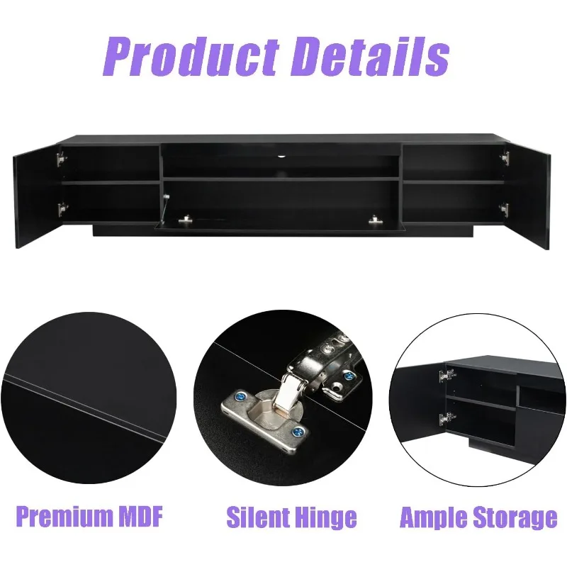 • Durable Material: High gloss fronts and matte texture body make LED TV stand both exclusive and durable. Made of superior (E1) MDF, tempered glass, and stainless steel hardware. Excellent workmanship ensures beauty and reliable quality