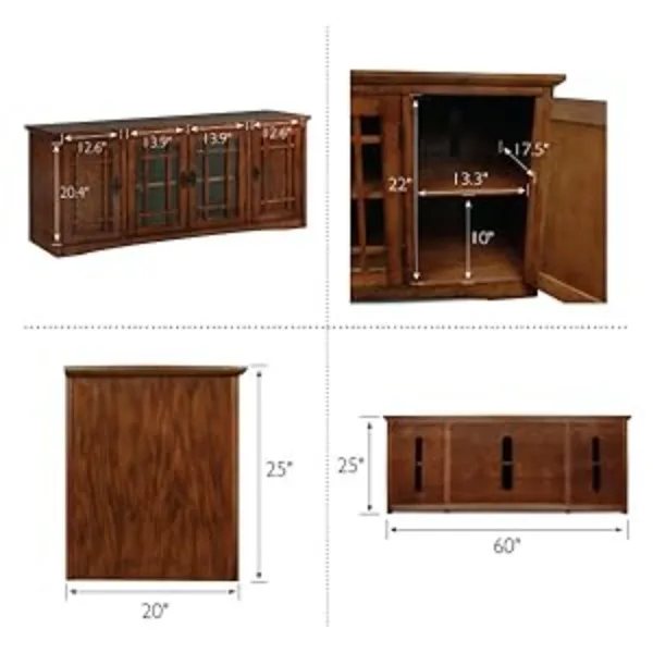 - Fits 65-inch TVs: The 60-inch top is large enough to fit a 65-inch or smaller TV, while the interior adjustable shelves and perforated back for cable management provide storage and organization