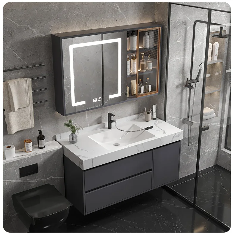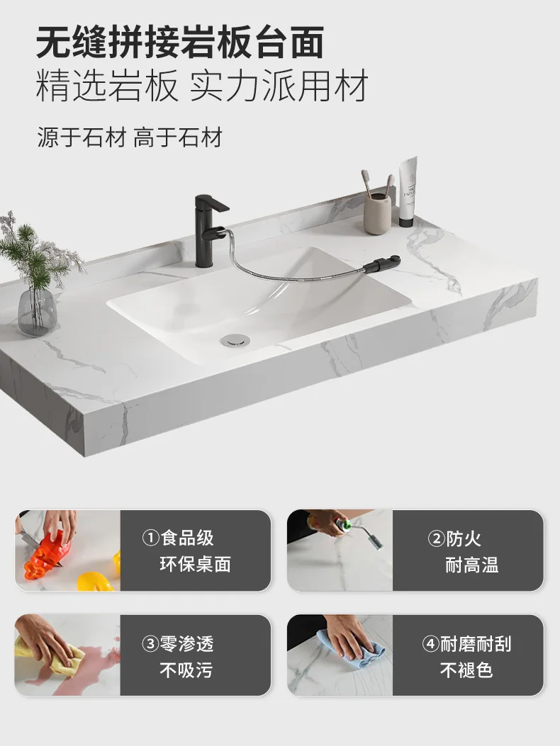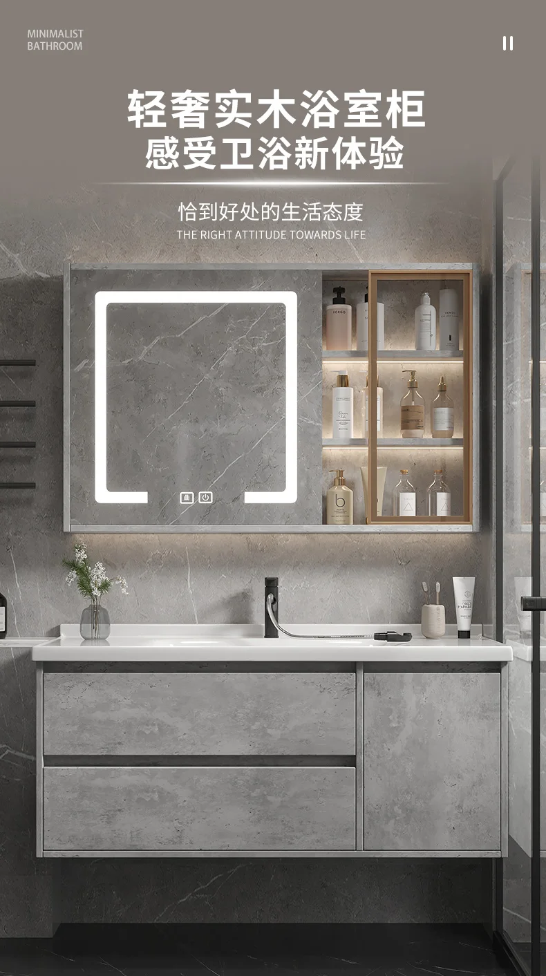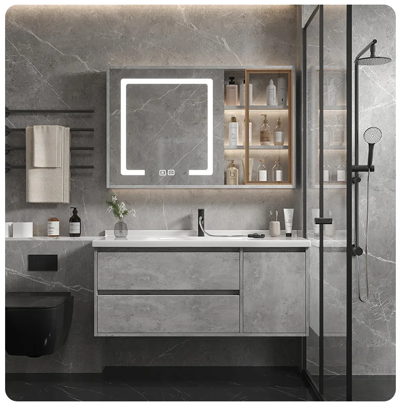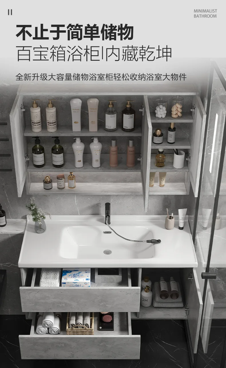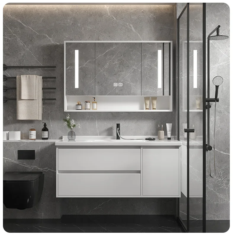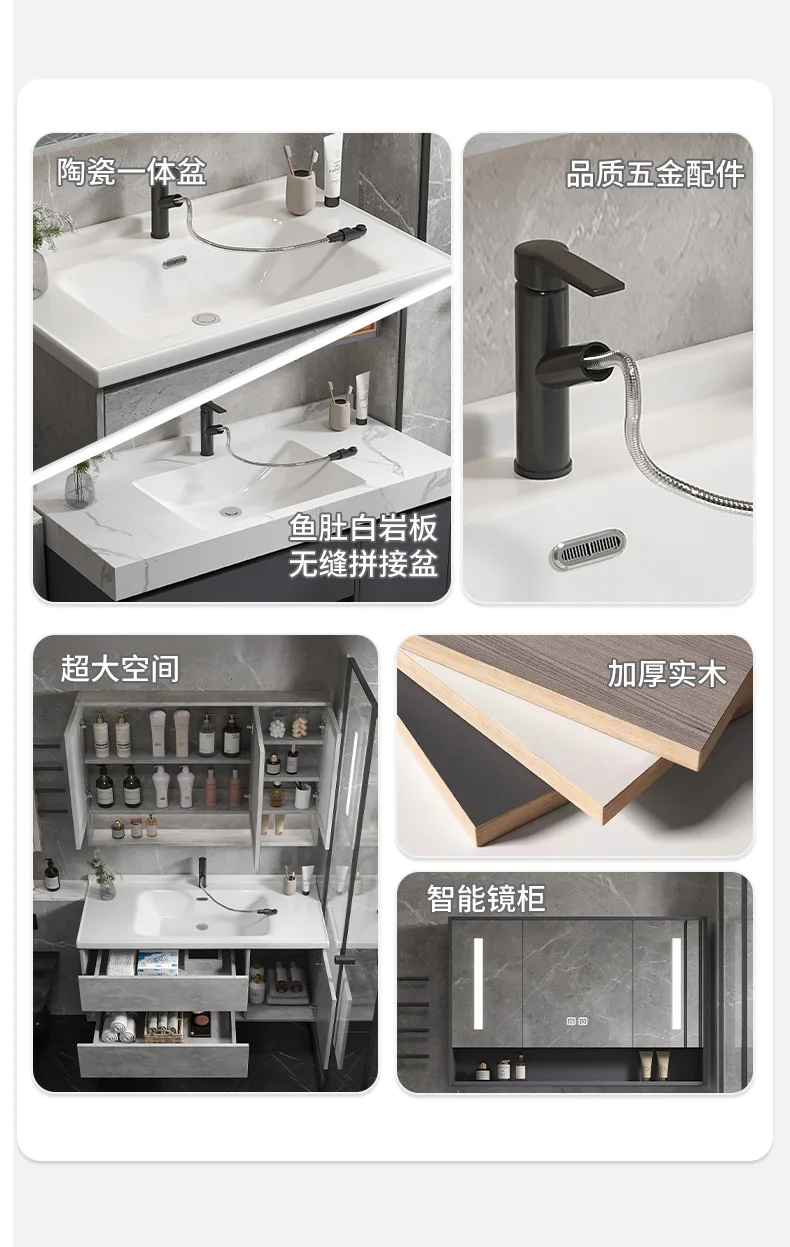 Light Luxury Bathroom Cabinet Combination Cream Style Minimalist Ceramic Integrated Bathroom Sink Gabinete Home Furniture YX50BC