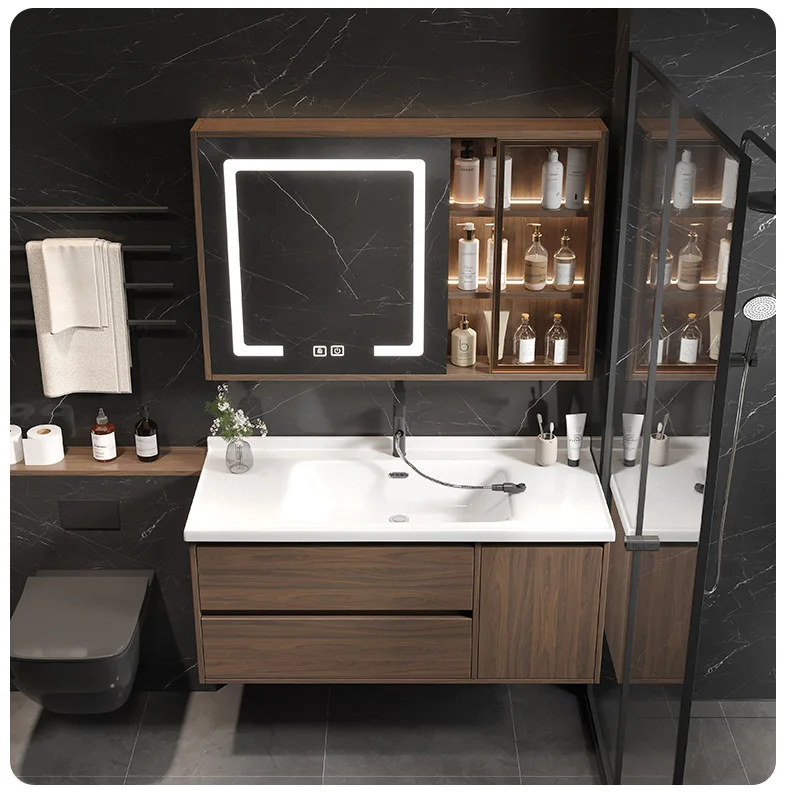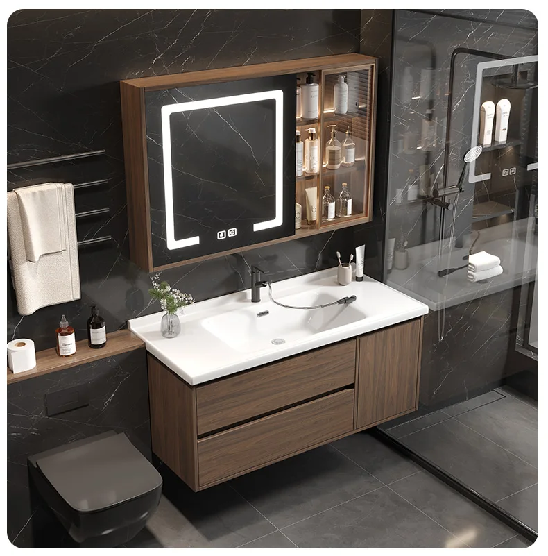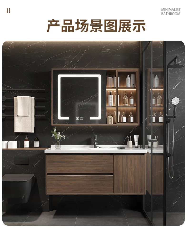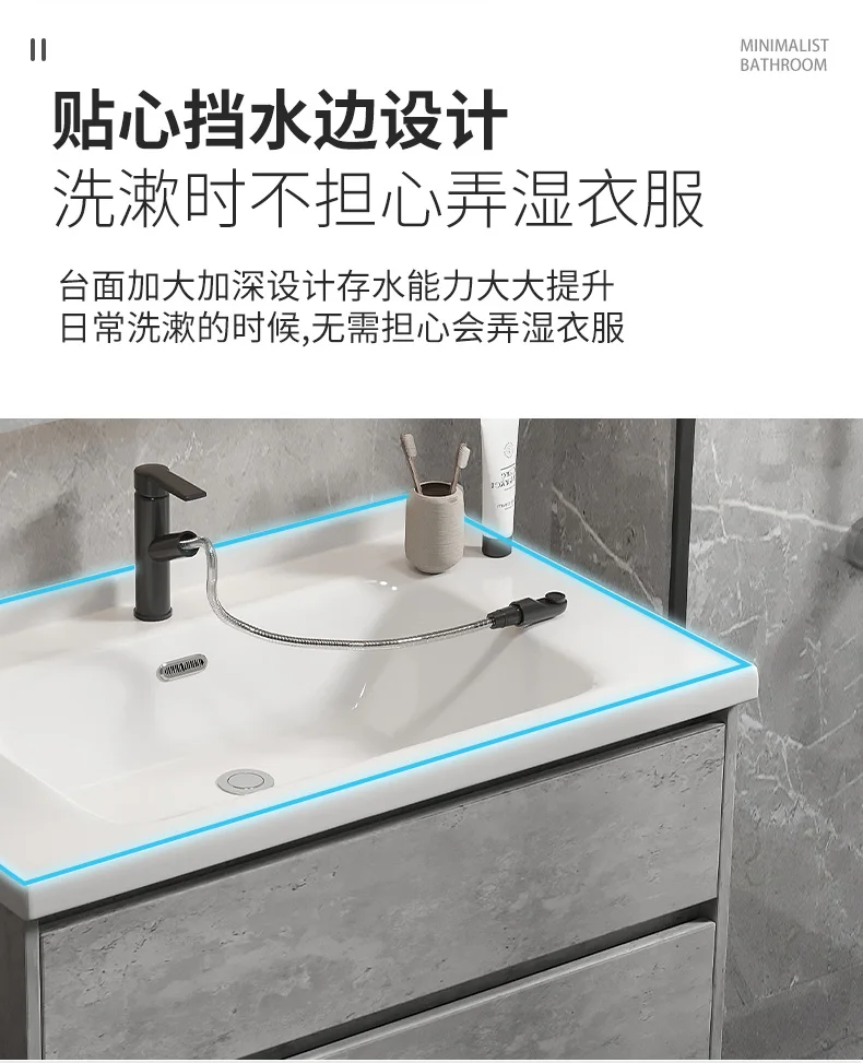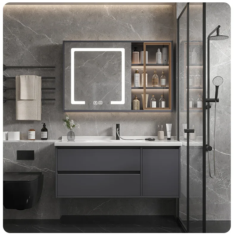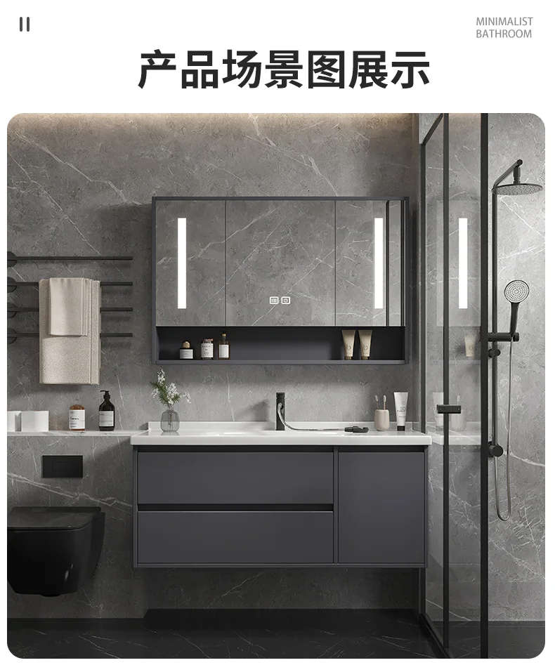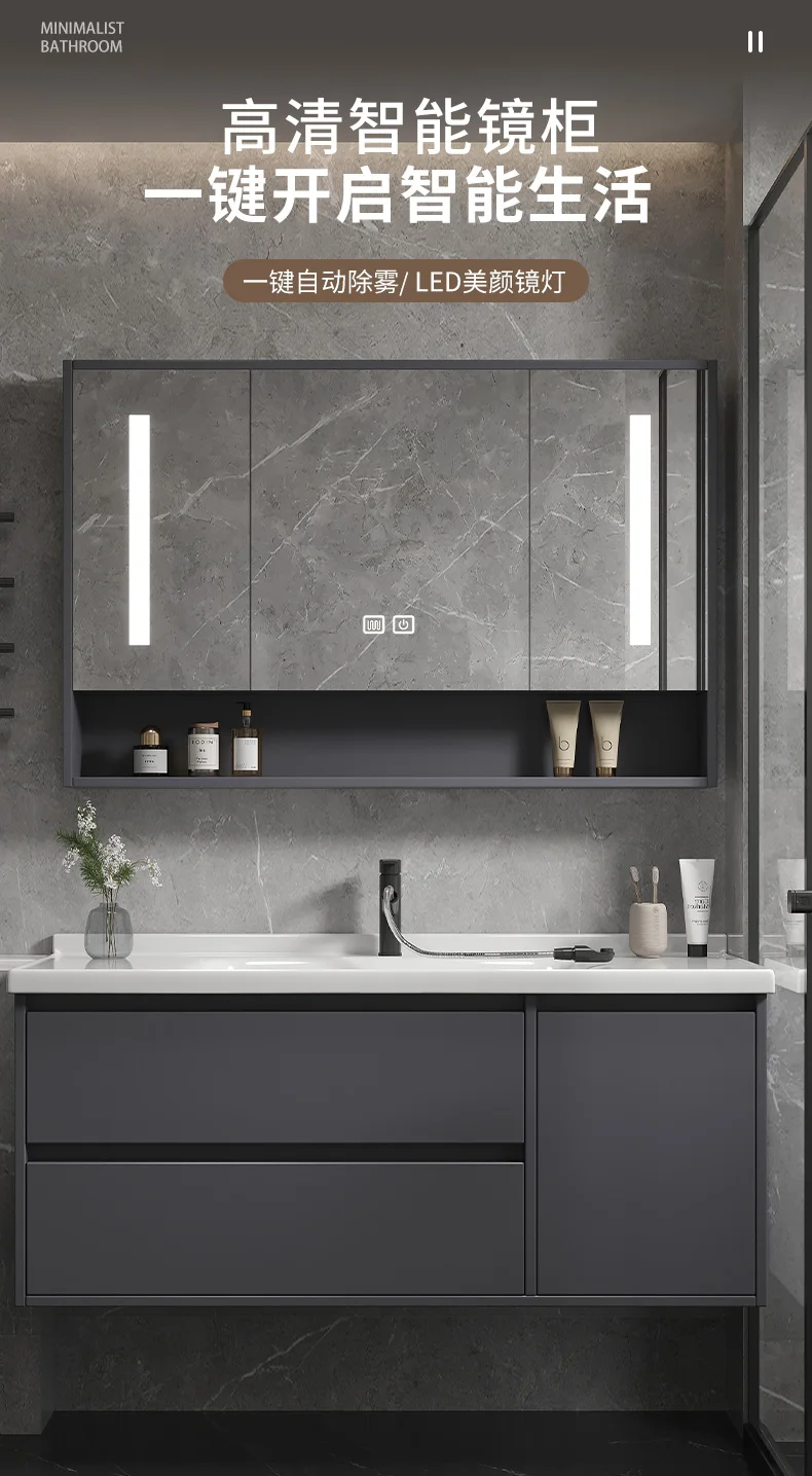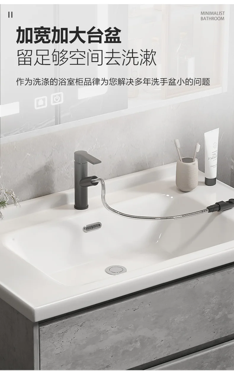 Light Luxury Bathroom Cabinet Combination Cream Style Minimalist Ceramic Integrated Bathroom Sink Gabinete Home Furniture YX50BC