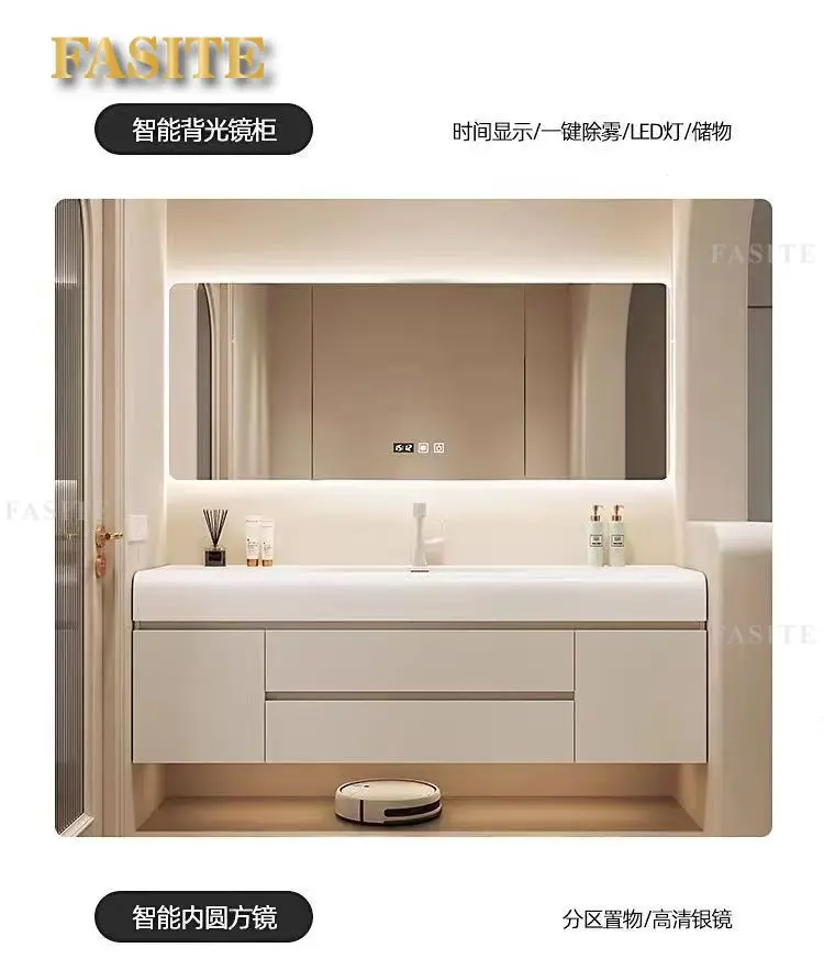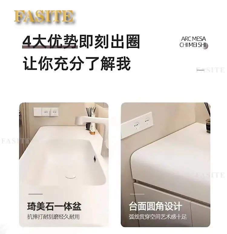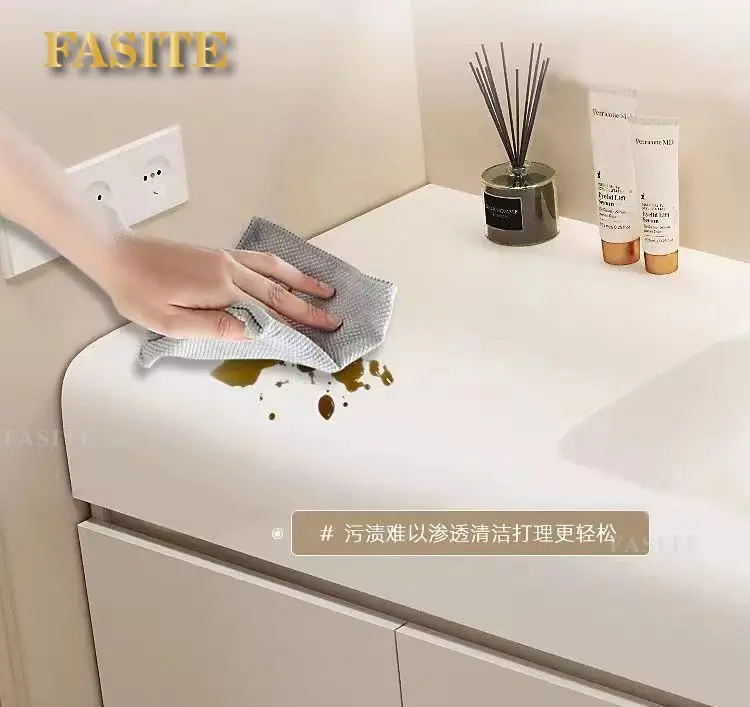 Light Luxury Bathroom Cabinet Simple White Rock Integrated Washbasin Nordic Home Bathroom Vanity Sink Cabinet Bathroom Furniture