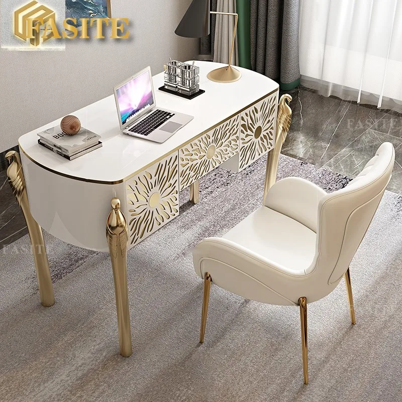 Light luxury desk, postmodern minimalist office desk, designer, home computer desk, stainless steel painted writing desk