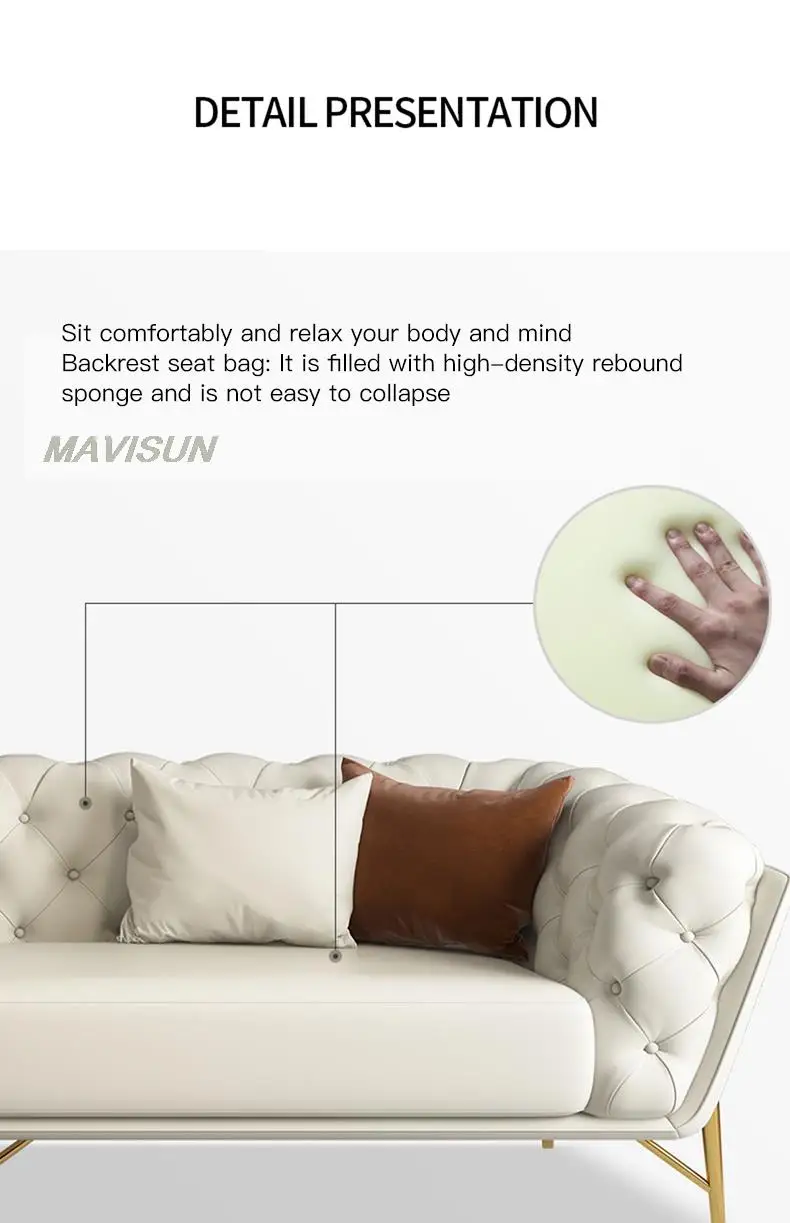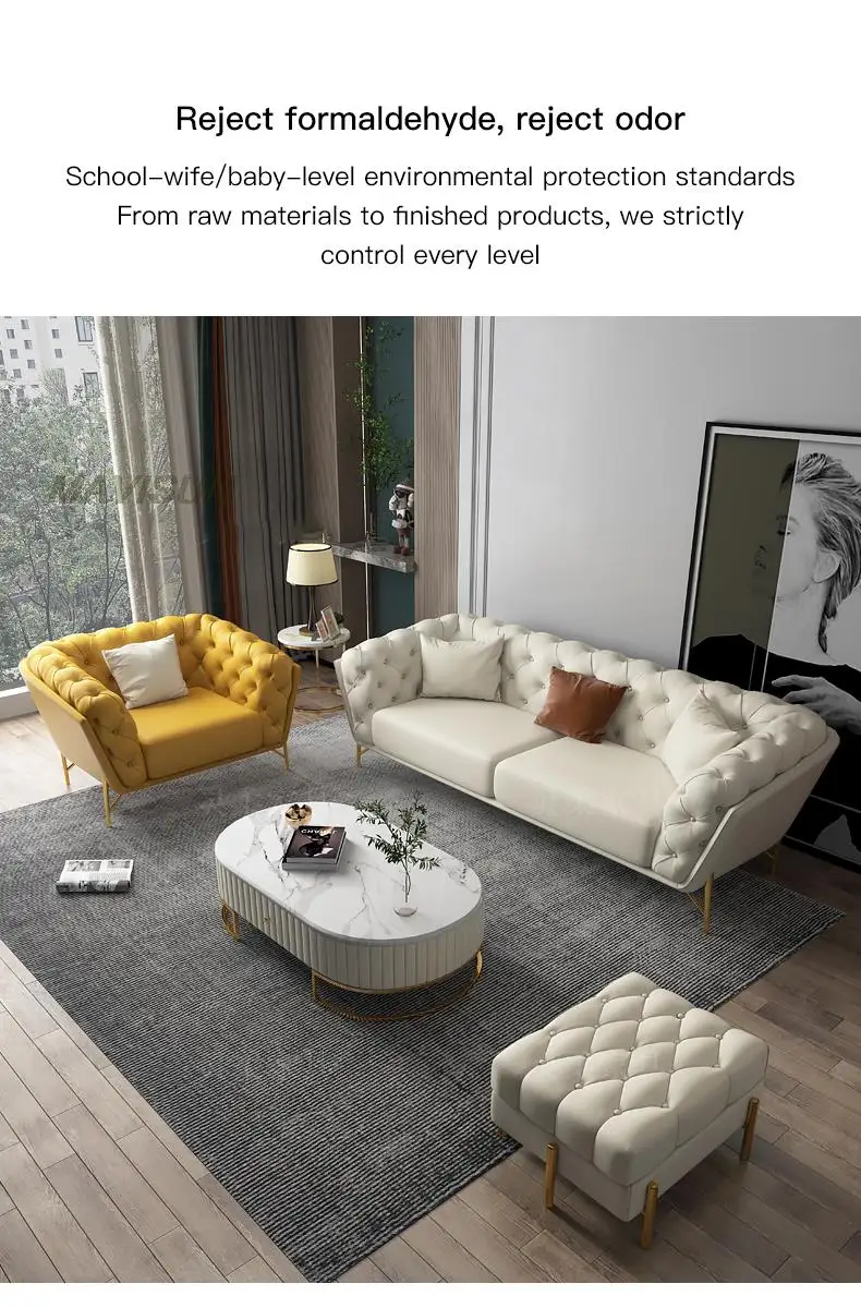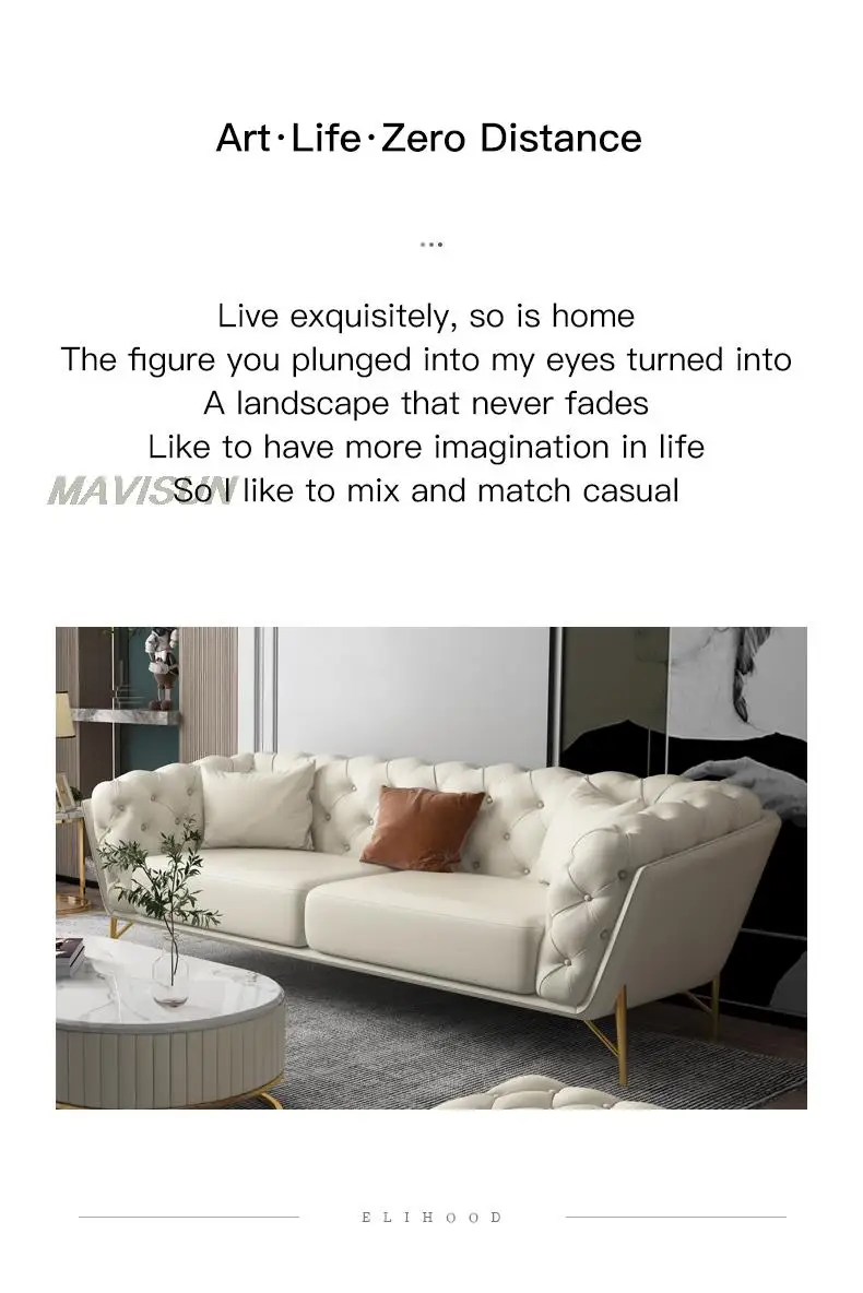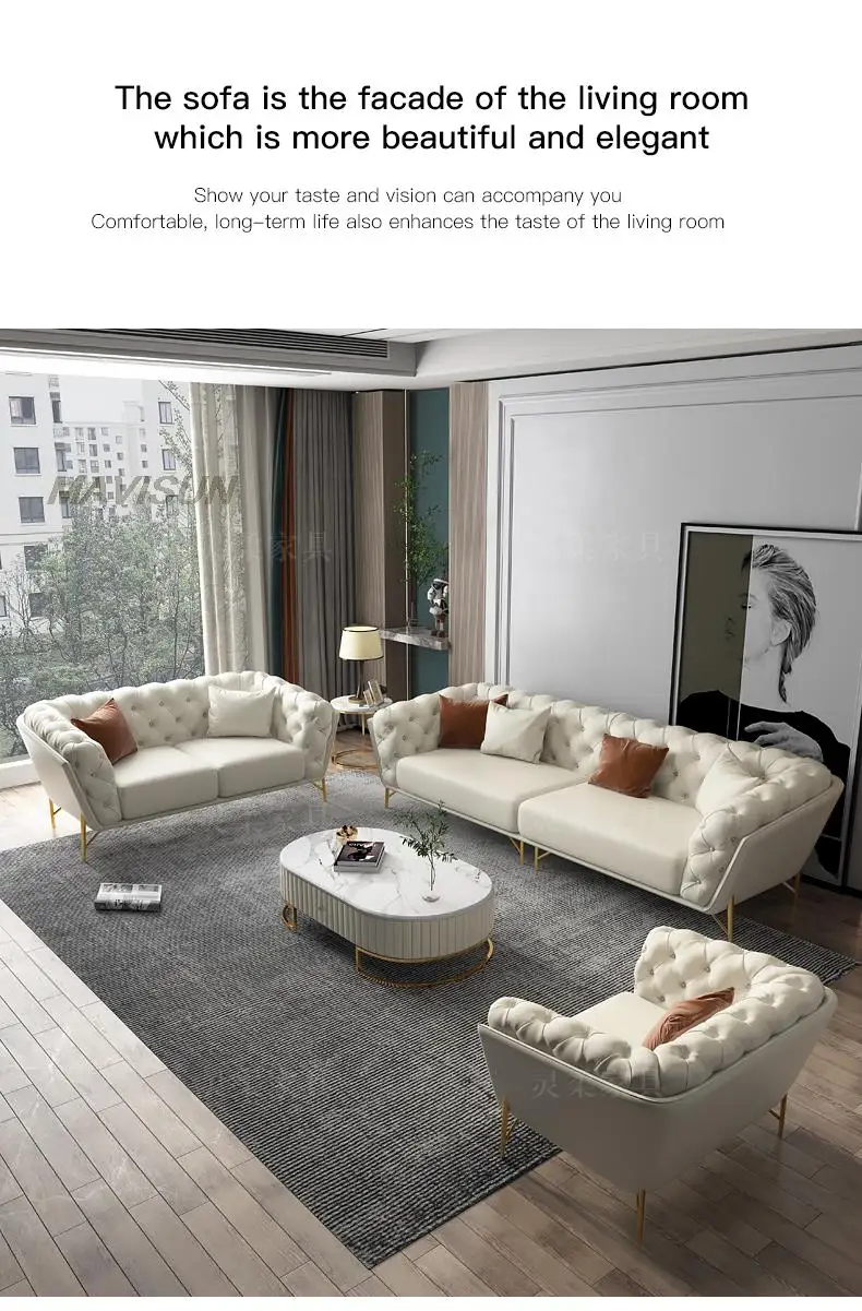 Light Luxury Post-Modern Living Room Sofa Italian Minimalist Size Apartment Villa Three-Person Leather Art Furniture Combination