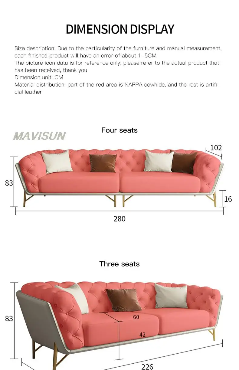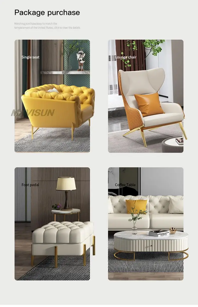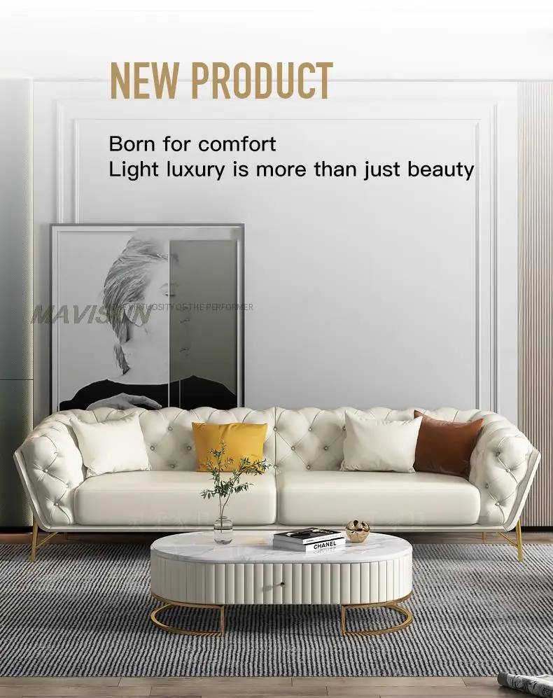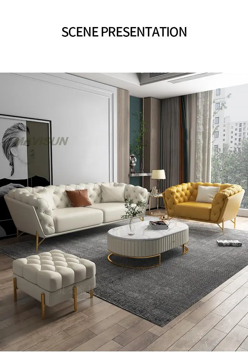 Light Luxury Post-Modern Living Room Sofa Italian Minimalist Size Apartment Villa Three-Person Leather Art Furniture Combination