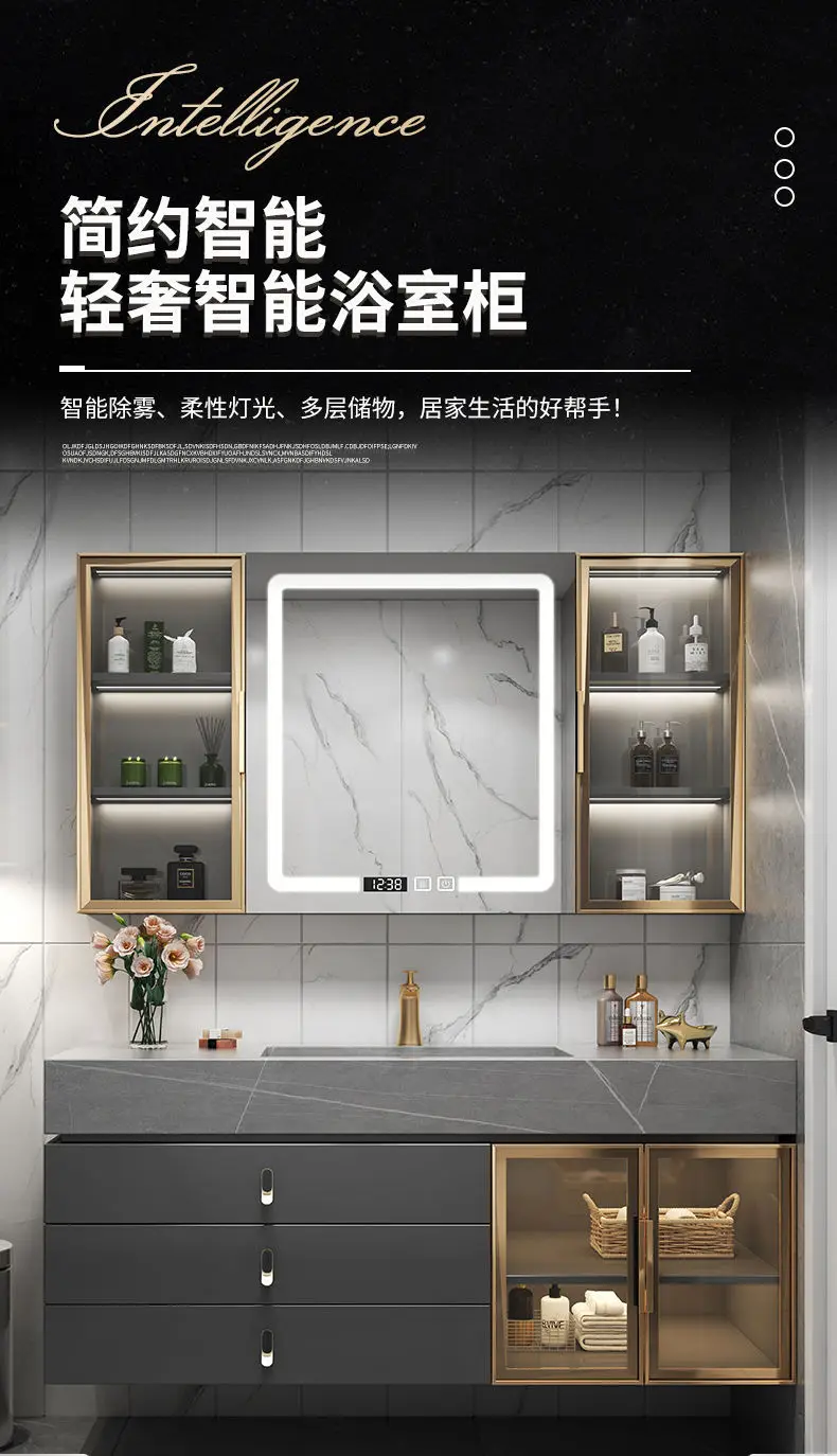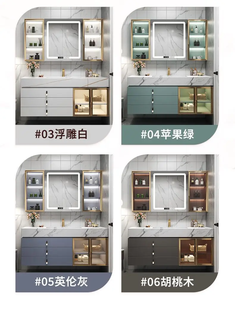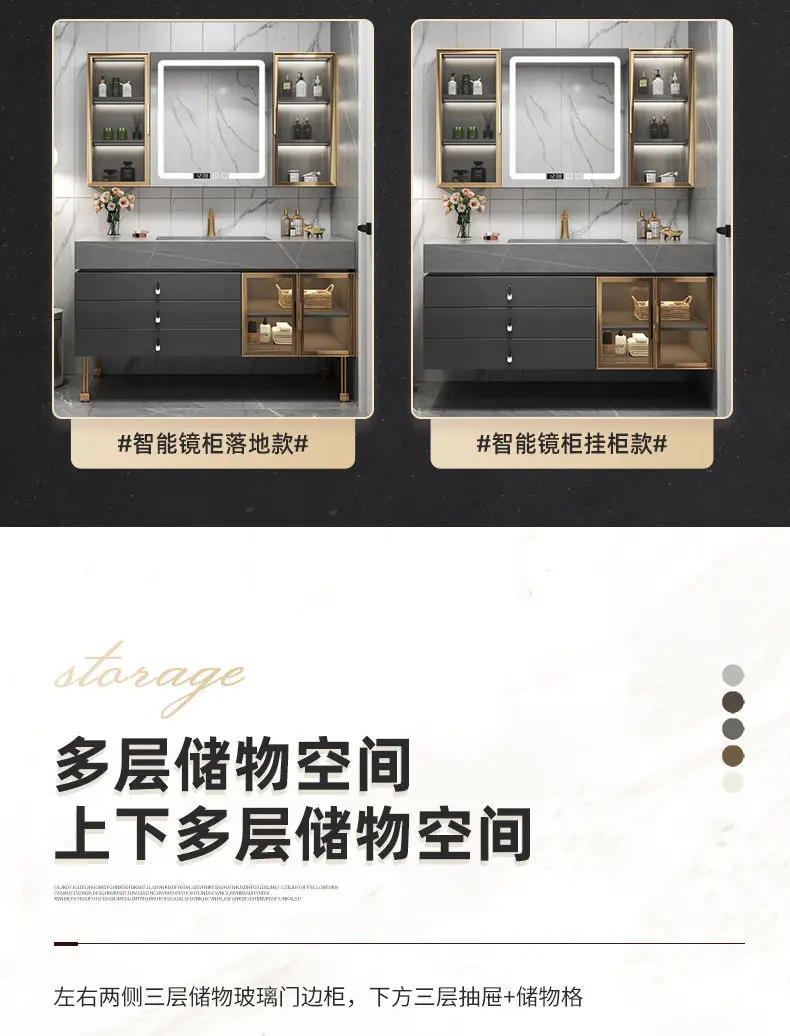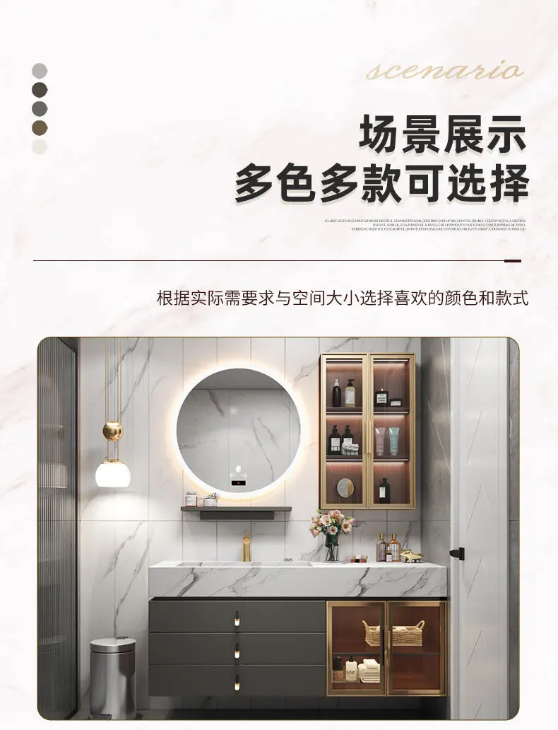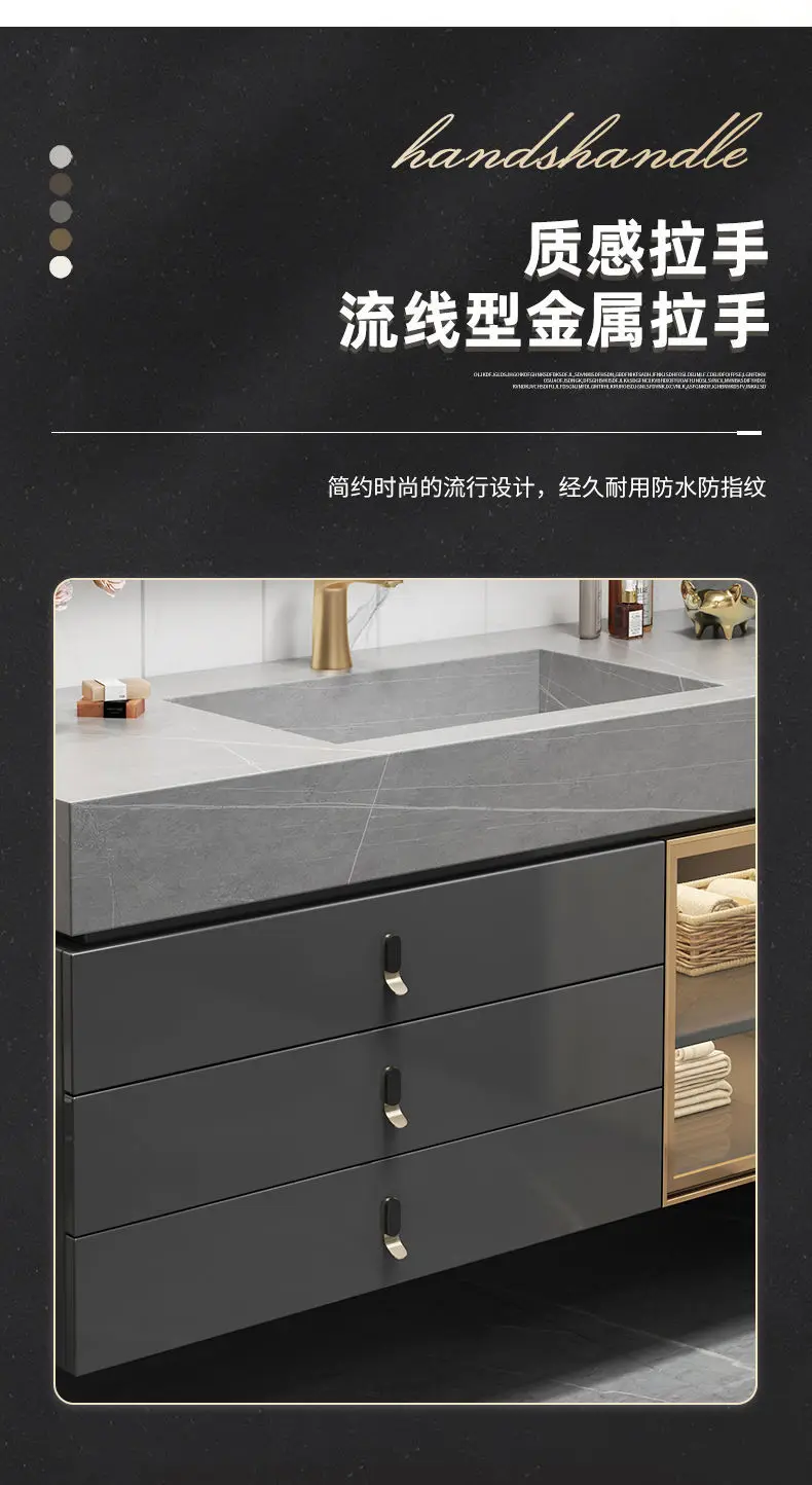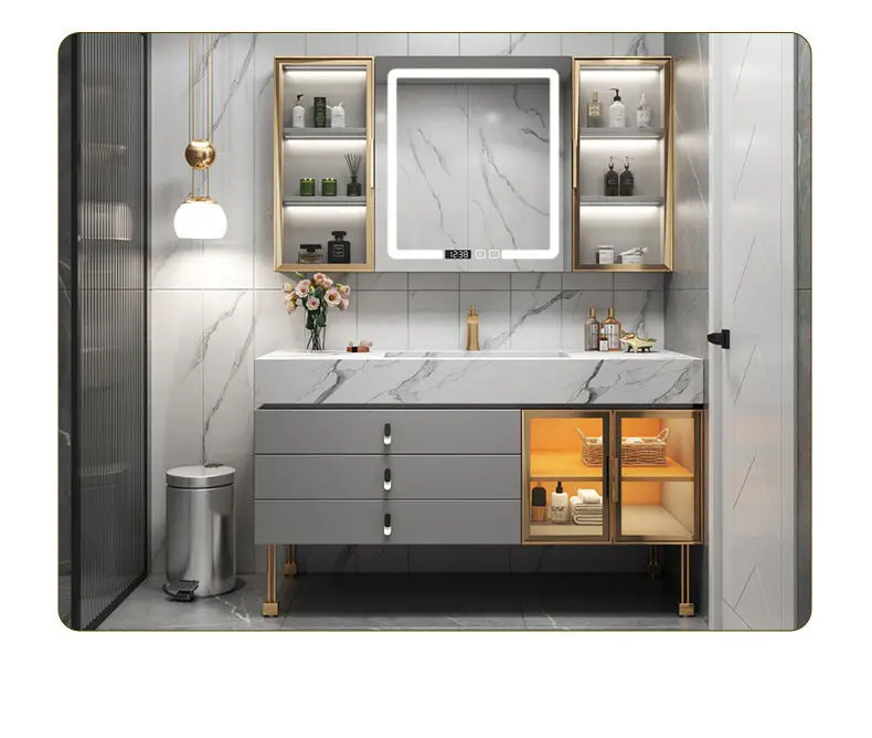 Light Luxury Solid Wood Bathroom Cabinets Rock Slab Integrated Washbasin Bathroom Vanity Cabinet with Sink Bathroom Furniture