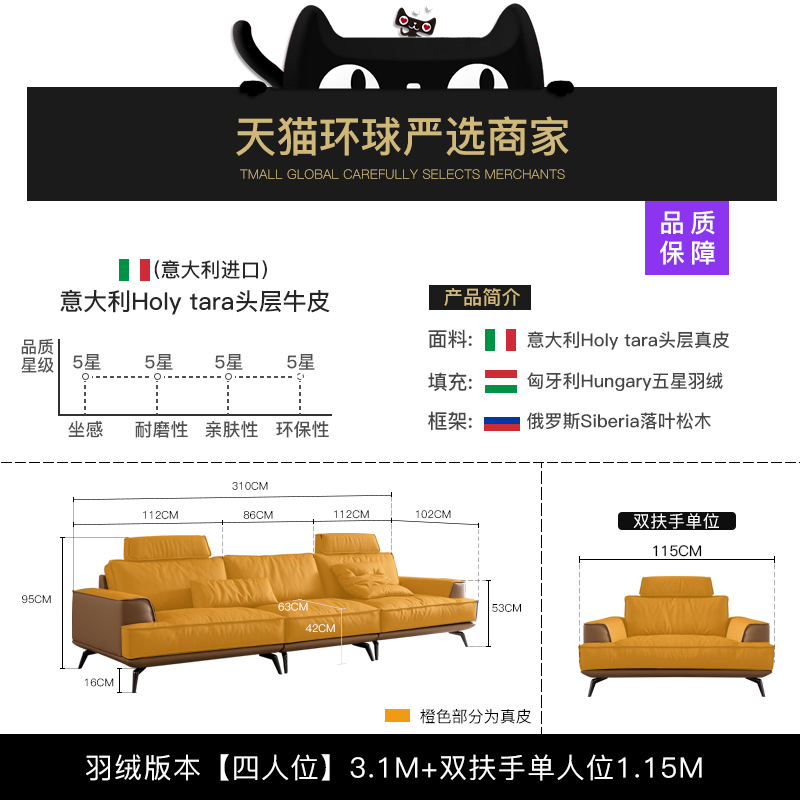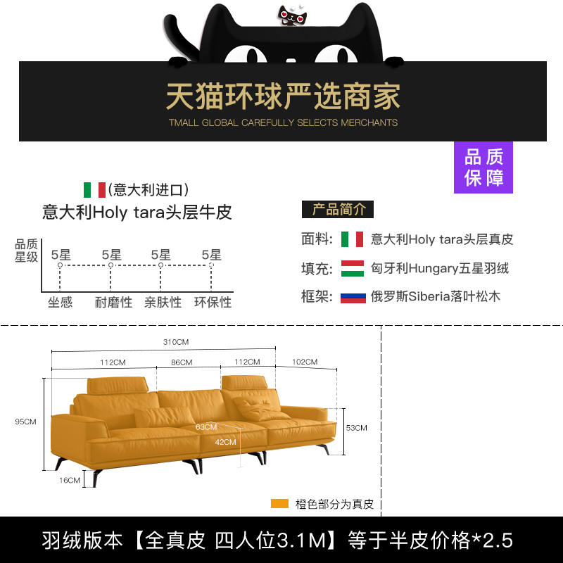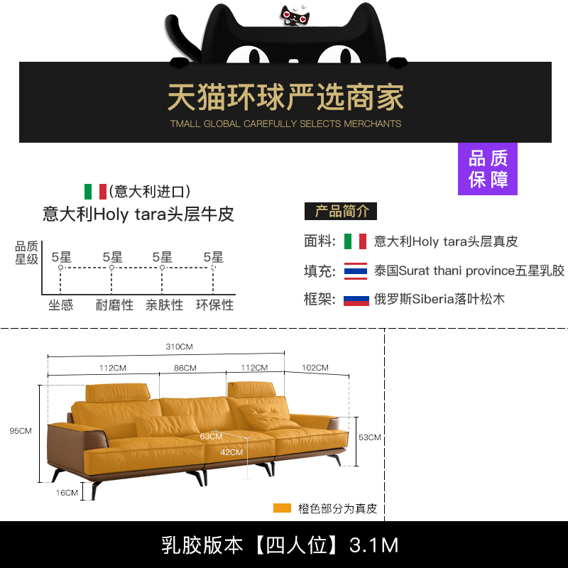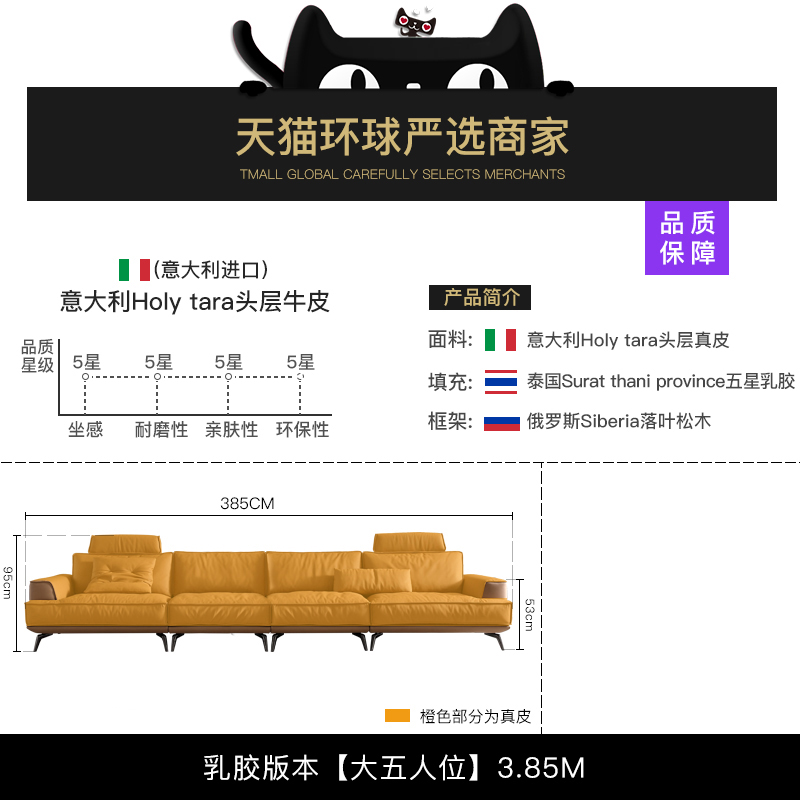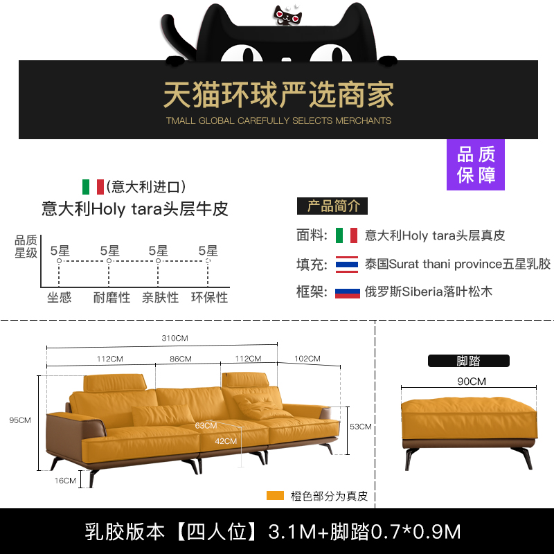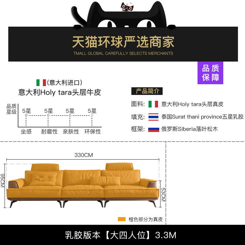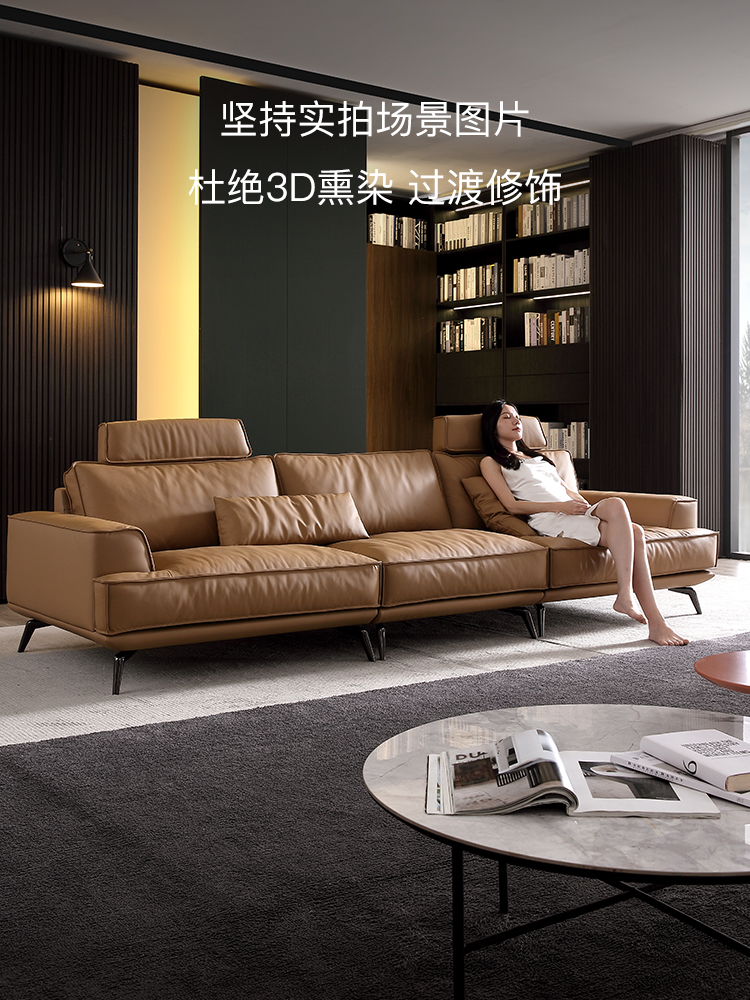 Living Room Full-Layer Cowhide Straight-Row Biscuit Leather High Backrest Sofa