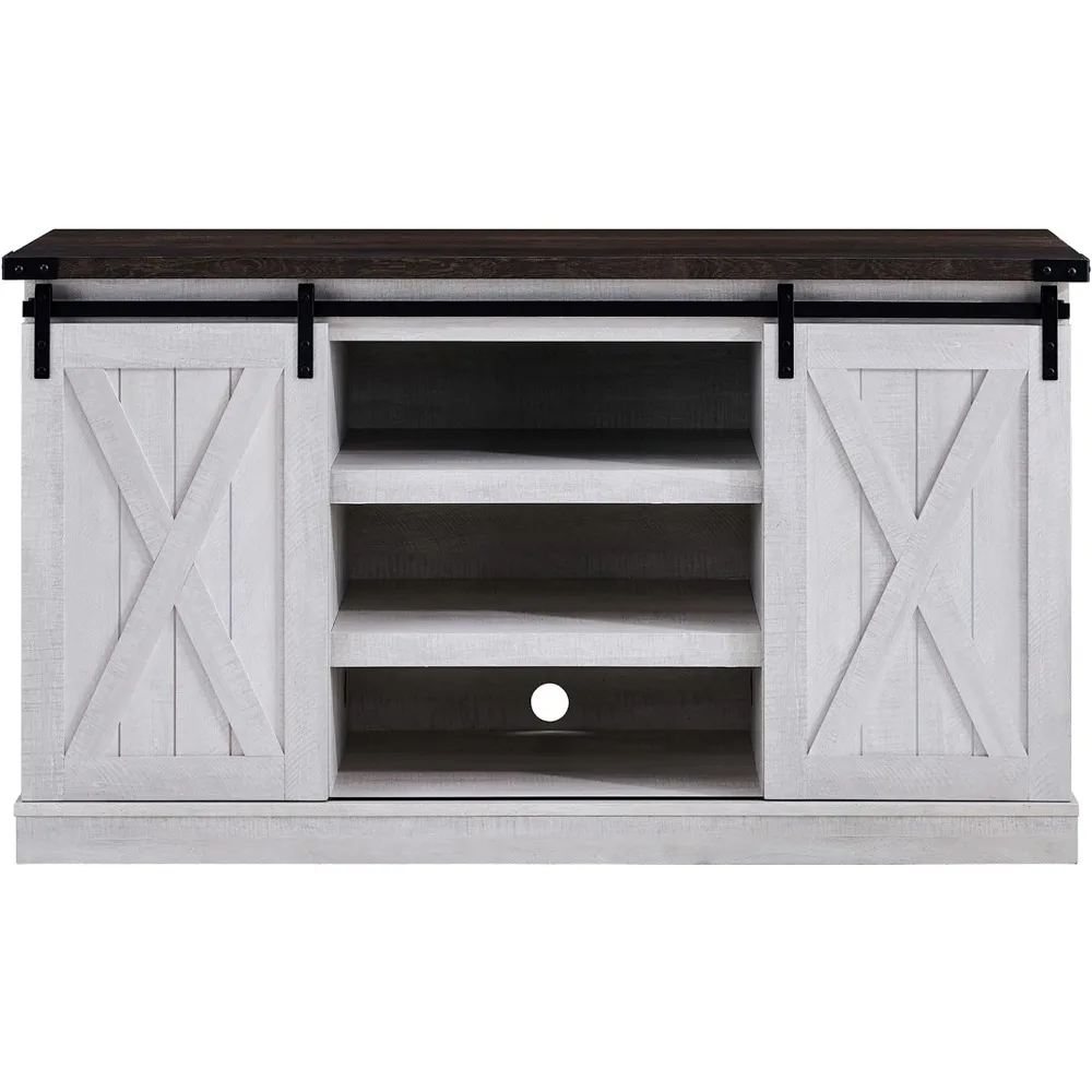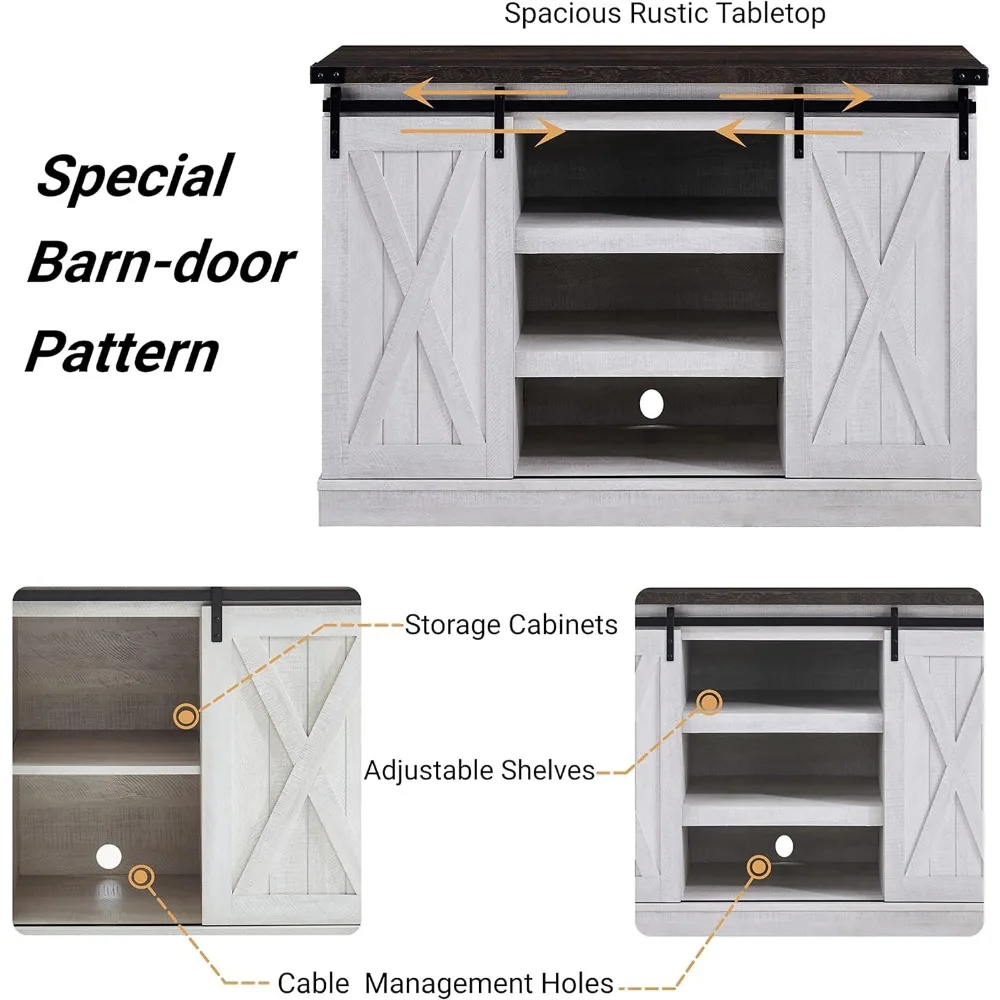 Living Room Furniture for Tv Table Gray Wash Wood TV Stand With Sliding Barn Door Entertainment Center With Storage Cabinet Ps5