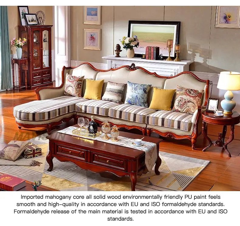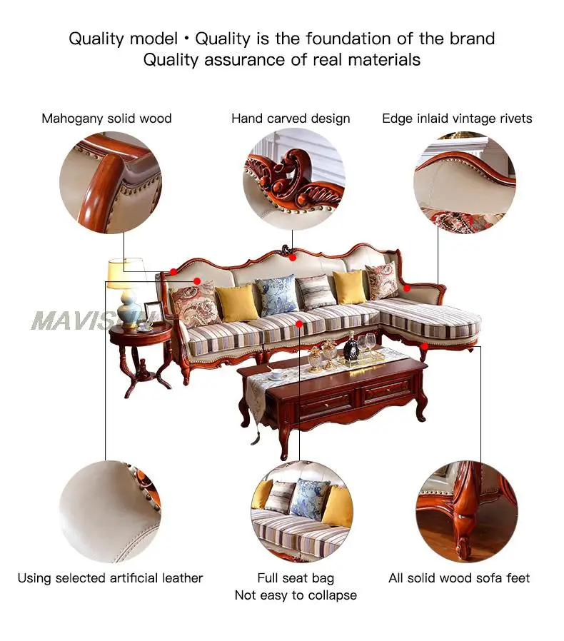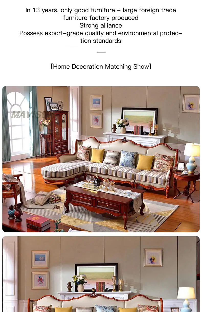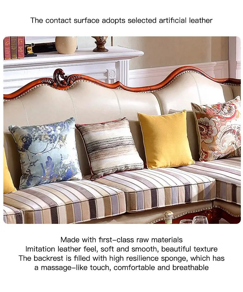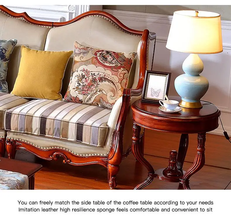 Living Room Reception Guests Sofa American Light Luxury Solid Wood Simulation Leather l-Shaped Simple Carved Furniture Sofa