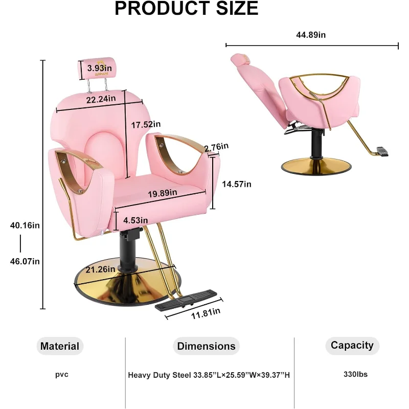 - 【Easy to Adjust】 The hair chair height can be adjusted from 40 inches to 46 inches for additional convenience. It can be reclined from 90° to 135° for greater functionality and comfort. Adjust the attached headrest to accommodate a variety of heights and the reclining salon chair are ergonomically designed, bring maximum comfort to your guests.