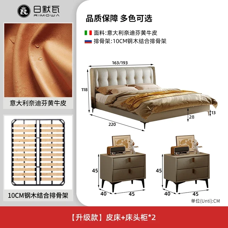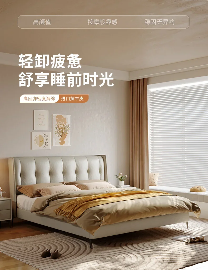 Luxury Aesthetic Double Bed King Size Minimalist Modern Salon Double Bed Wood Genuine Leather Cama Matrimonial Bedroom Furniture