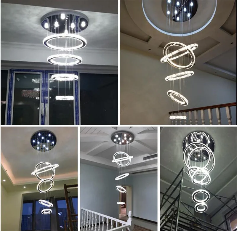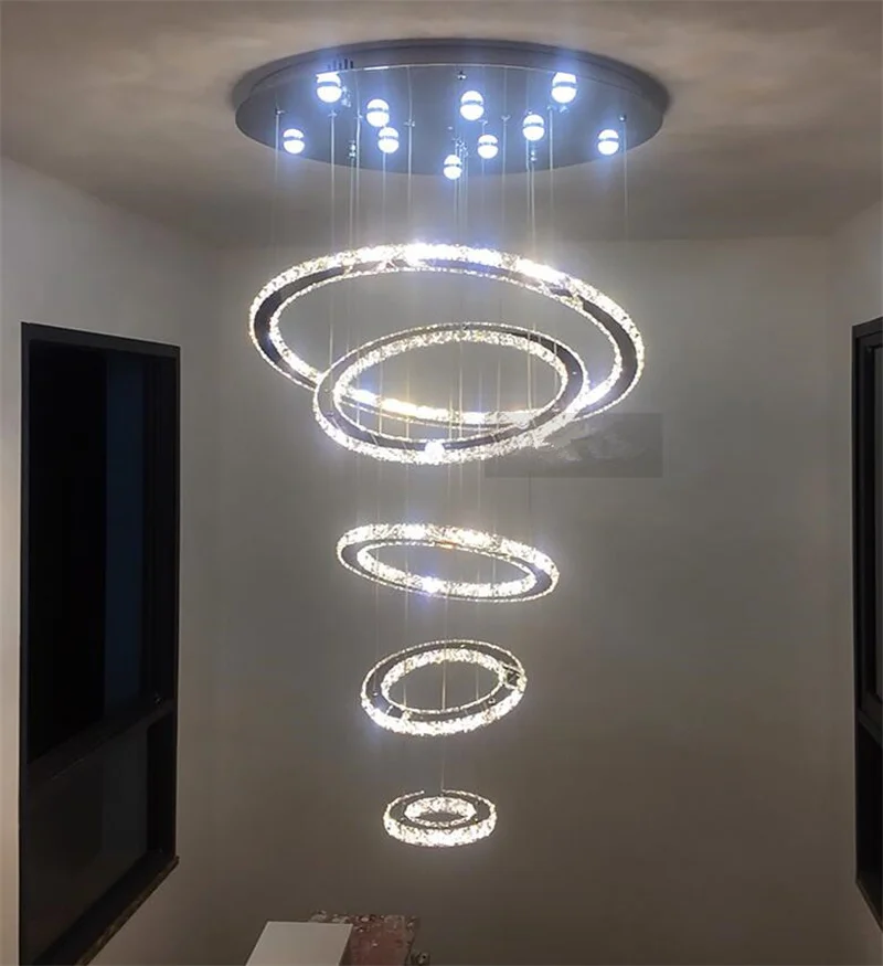 Luxury Diamond 3/5 Rings Circle k9 Crystal Led Chandelier Lighting Fixtures Lamparas Modernas Hanging Lamp Luminaria Lustres
