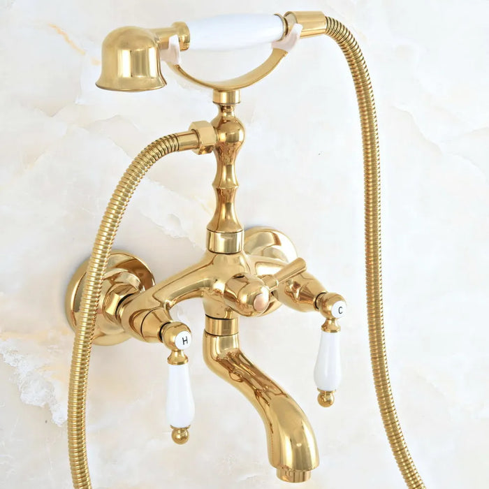 Luxury Gold Color Brass Wall Mount Bathroom Bath Tub Faucet Set WITH/ 1.5M Handheld Shower Spray Head Mixer Tap Dna822