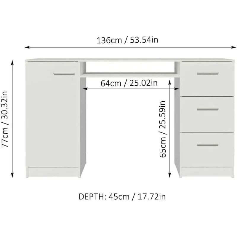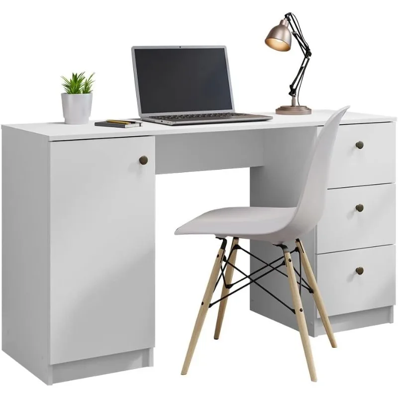 Madesa Computer Desk with 3 Drawers, 1 Door and 1 Storage Shelf, Wood Writing Home Office Workstation, Office Desk with Drawers