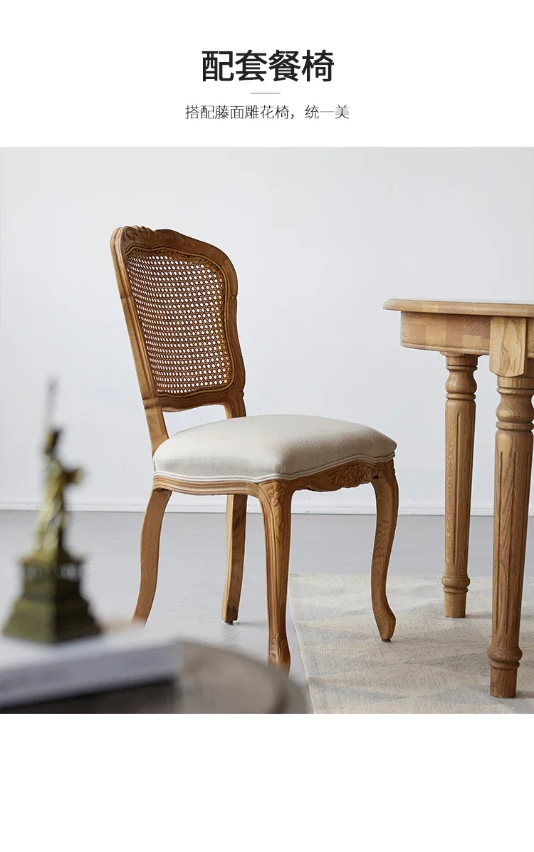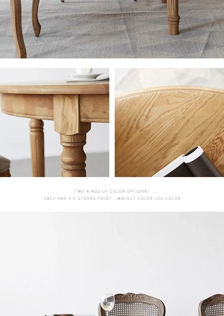 Make antique old oak retractable dining table French European style solid wood retractable round dining table