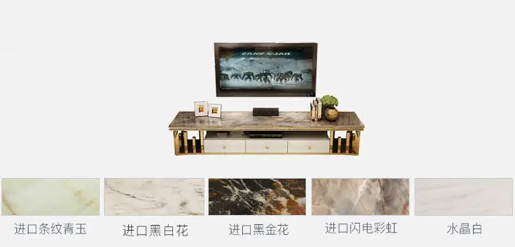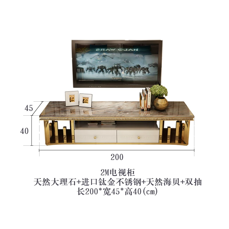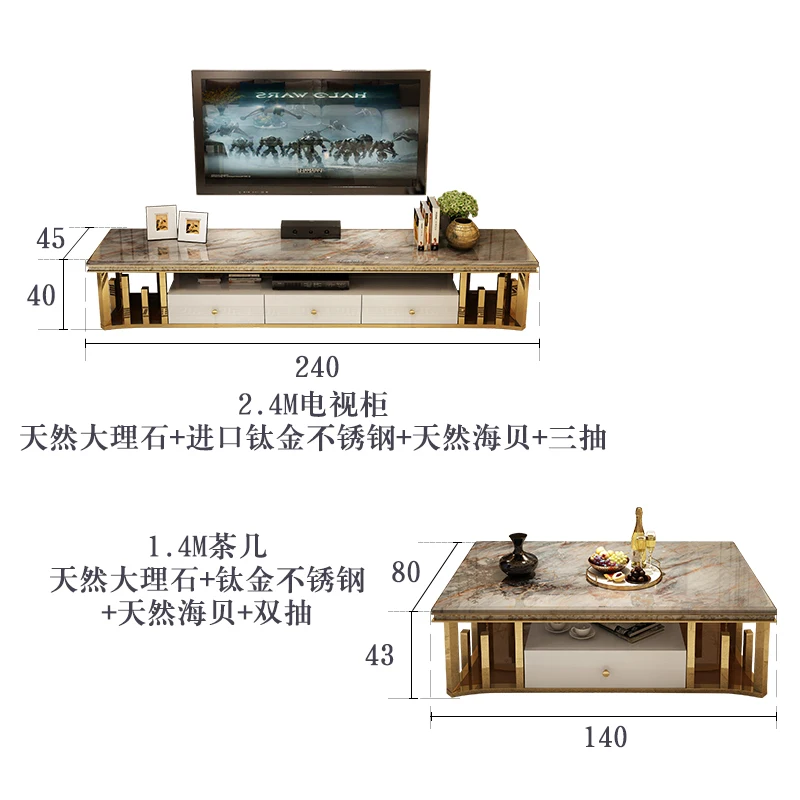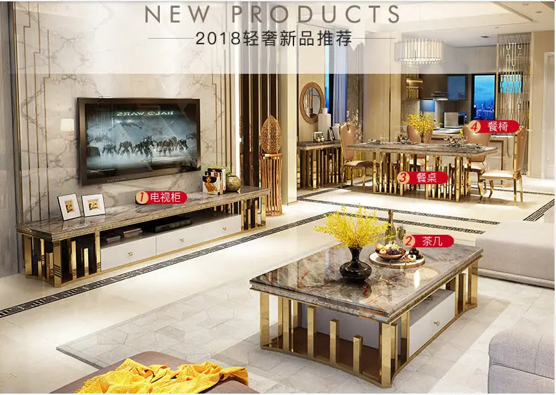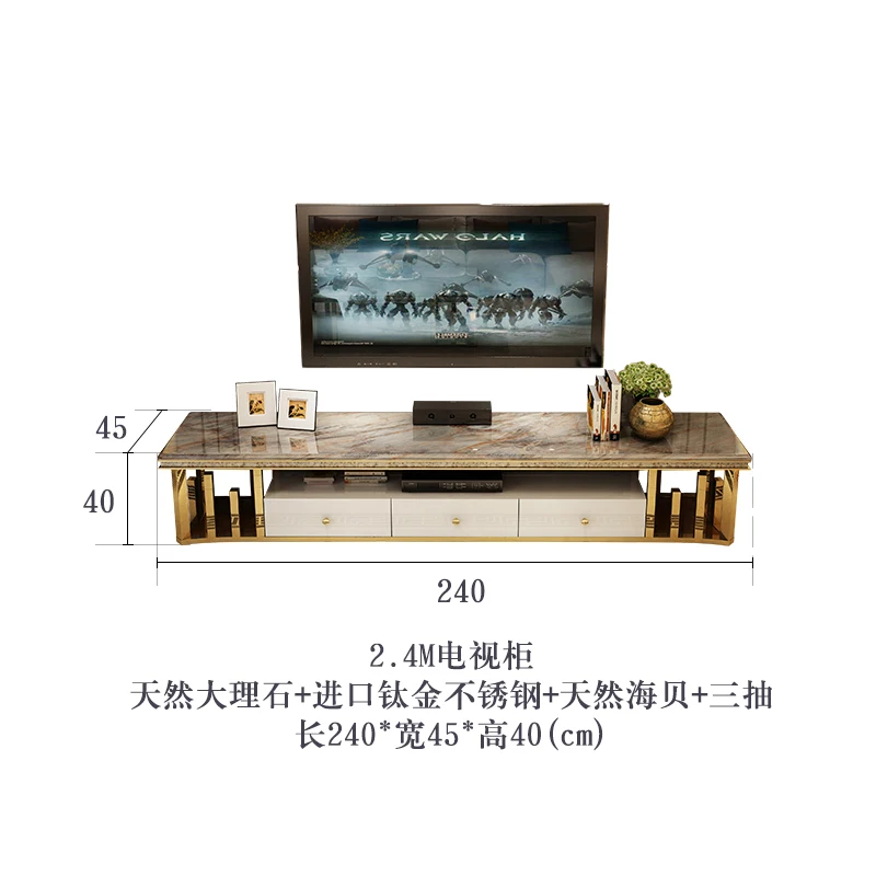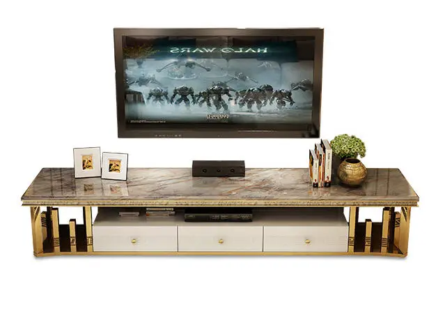 MANBAS Modern Living Room Furniture: Natural Marble Stainless Steel TV Stand Gold TV Table for Home Decor Stylish TV Cabinet