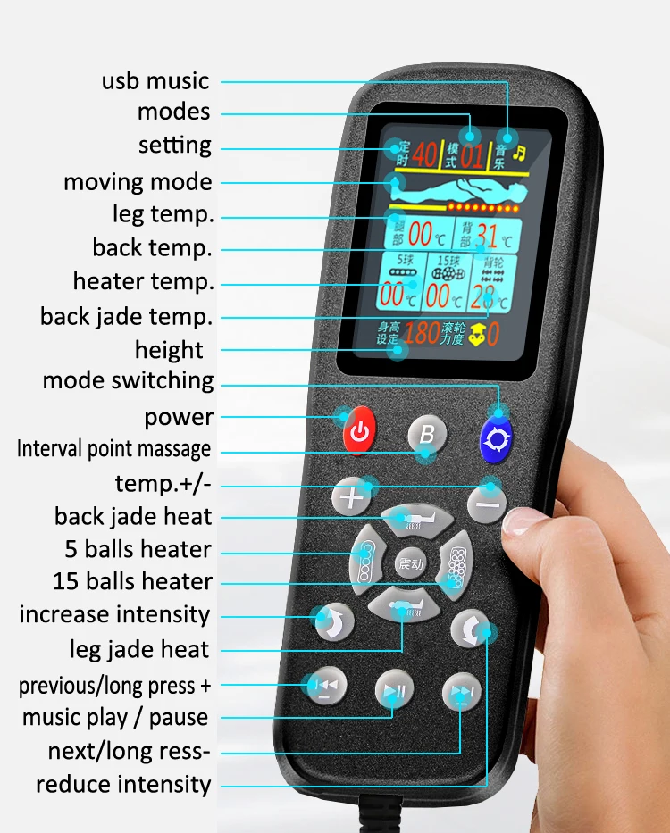 5) 5 + 15 ball hot moxibustion handset, 13 + 1 massage mode is optional;