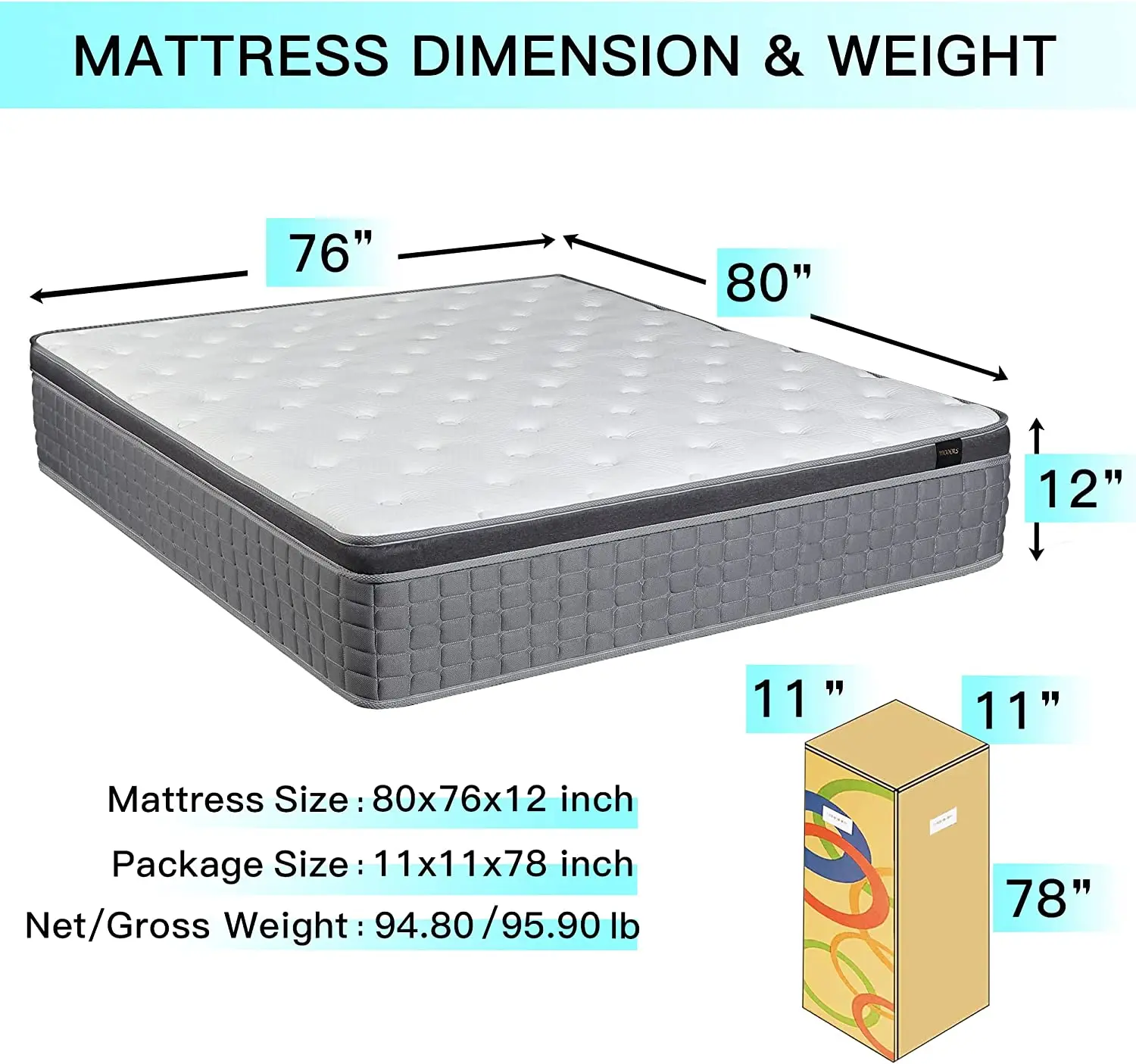King: 80 x 76 x 12 Inch / 94.80 lb