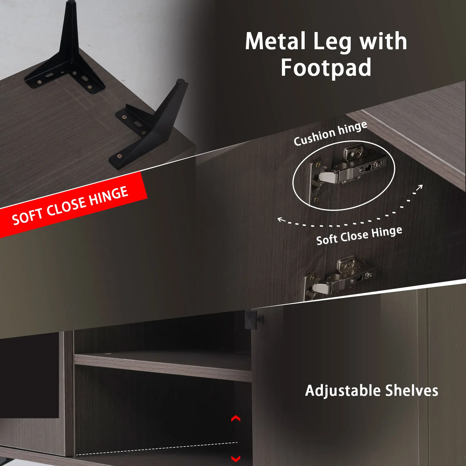 [Multifunctional Storage]This modern entertainment center features 2 shelving areas and push-to-open door helps make your home feel lived in and neat.