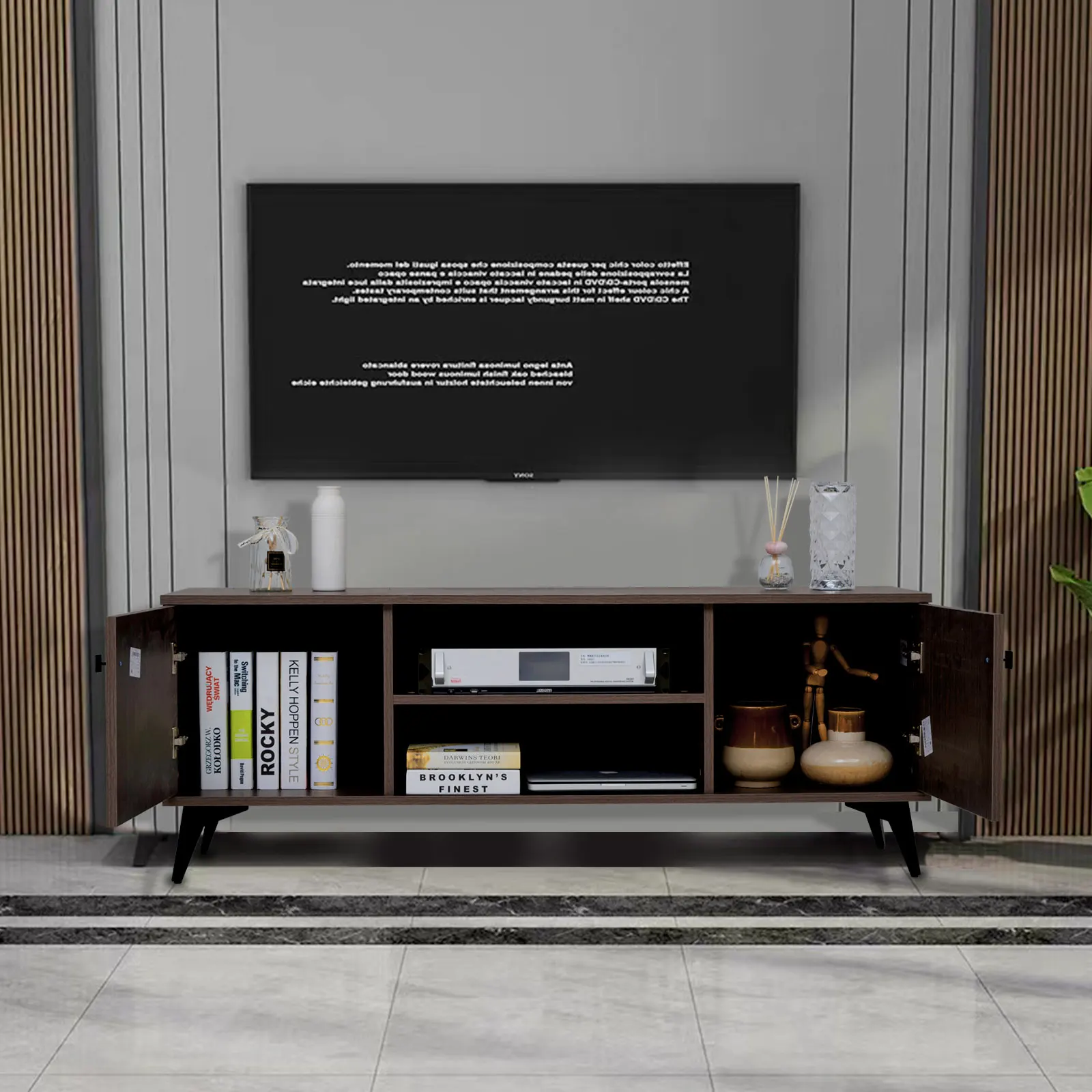 Mid-Century TV Stand with Cabinet Wood Storage TV Console Table,Retro Media Entertainment Center for Living Room Furniture
