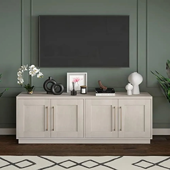 Minimalist TV cabinet, living room floor standing TV stand with two double door storage cabinets, 68 inches wide, white