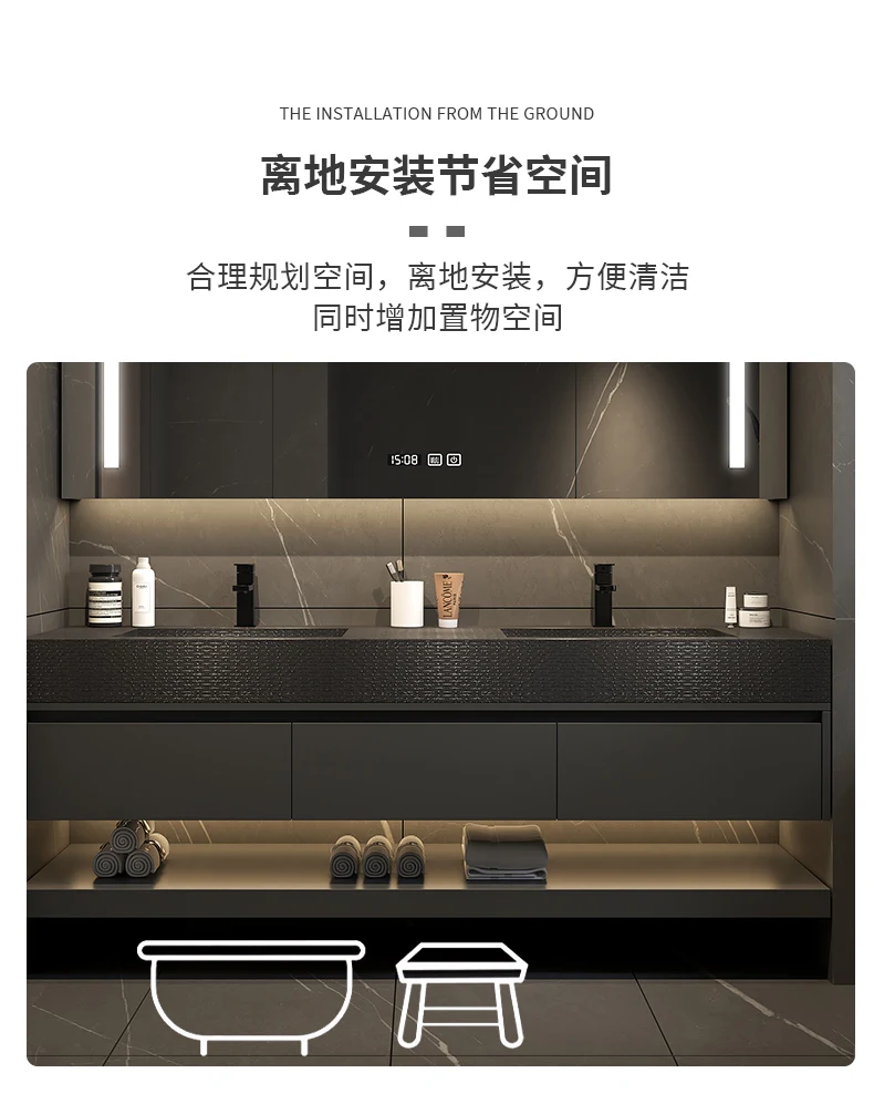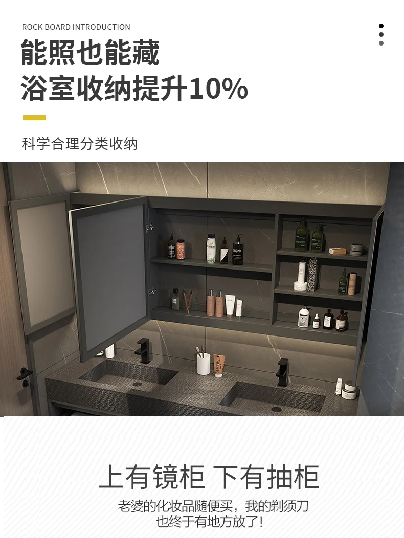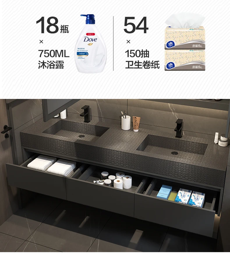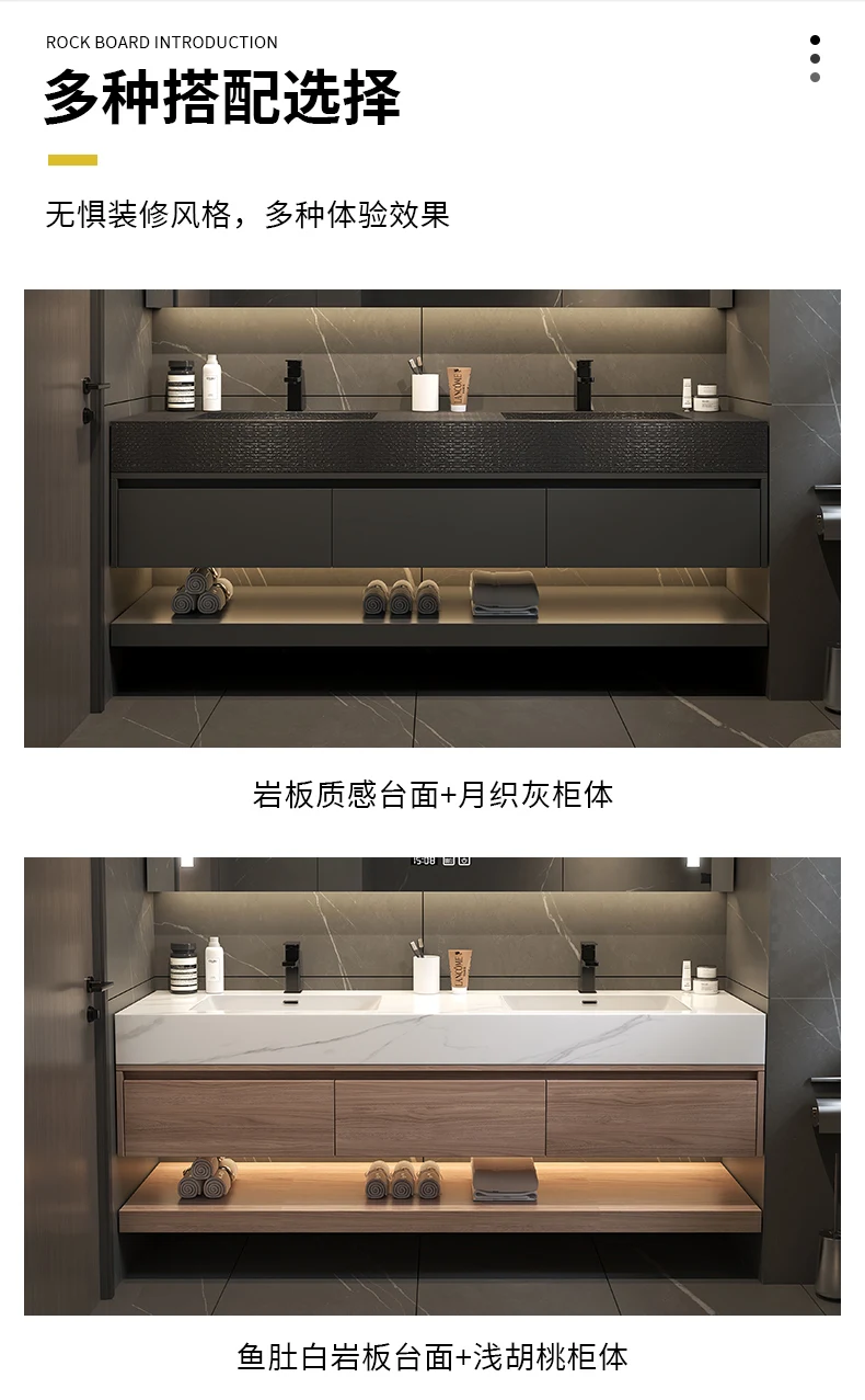 Modern Black Bathroom Cabinets Slate Integrated Seamless Washbasin with Drawers Bathroom Vanity with Sink Bathroom Furniture