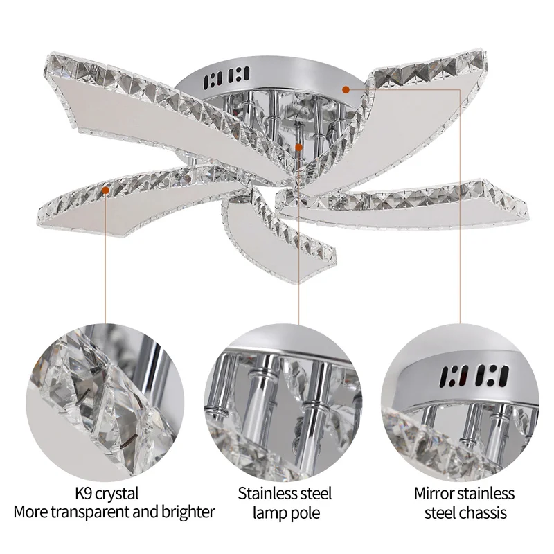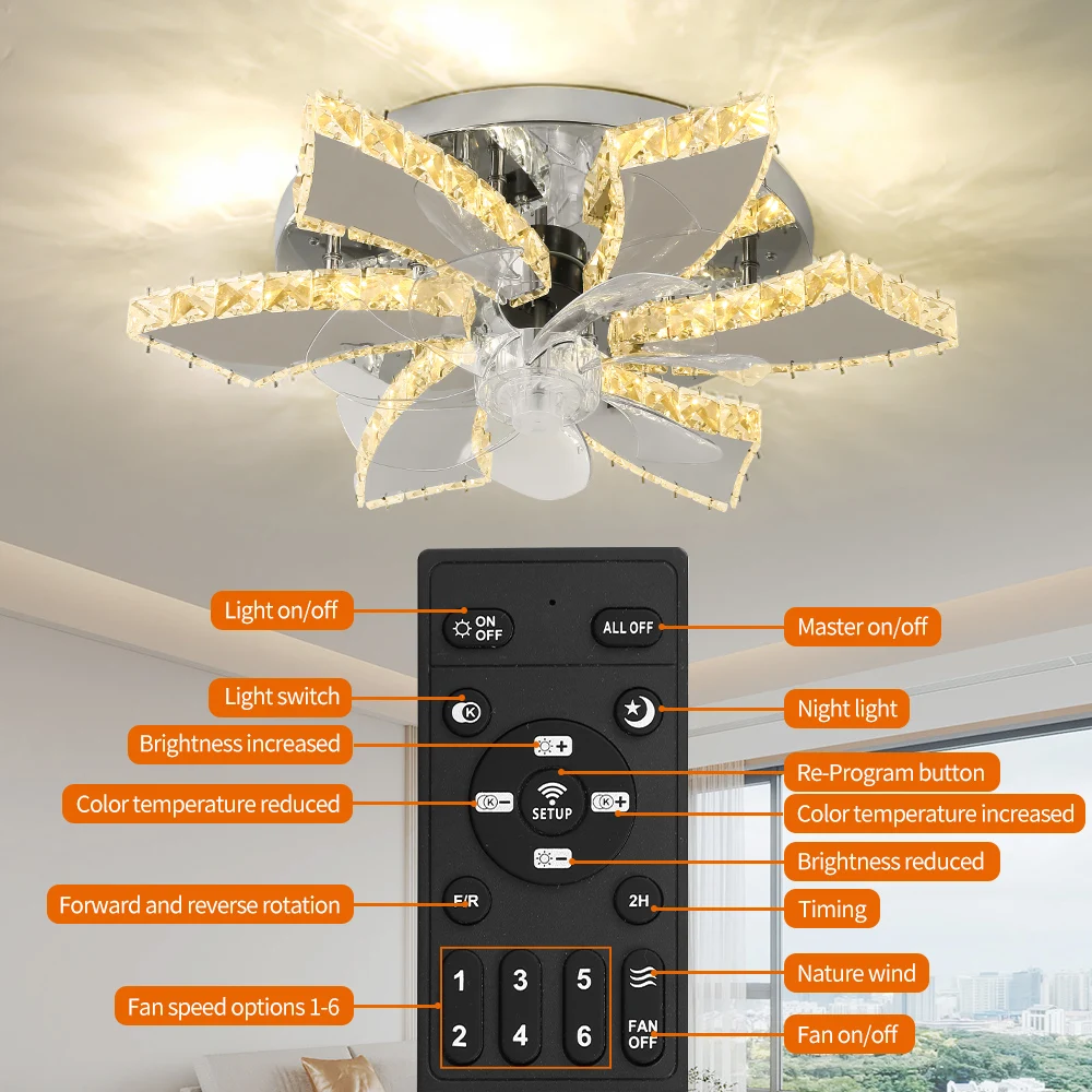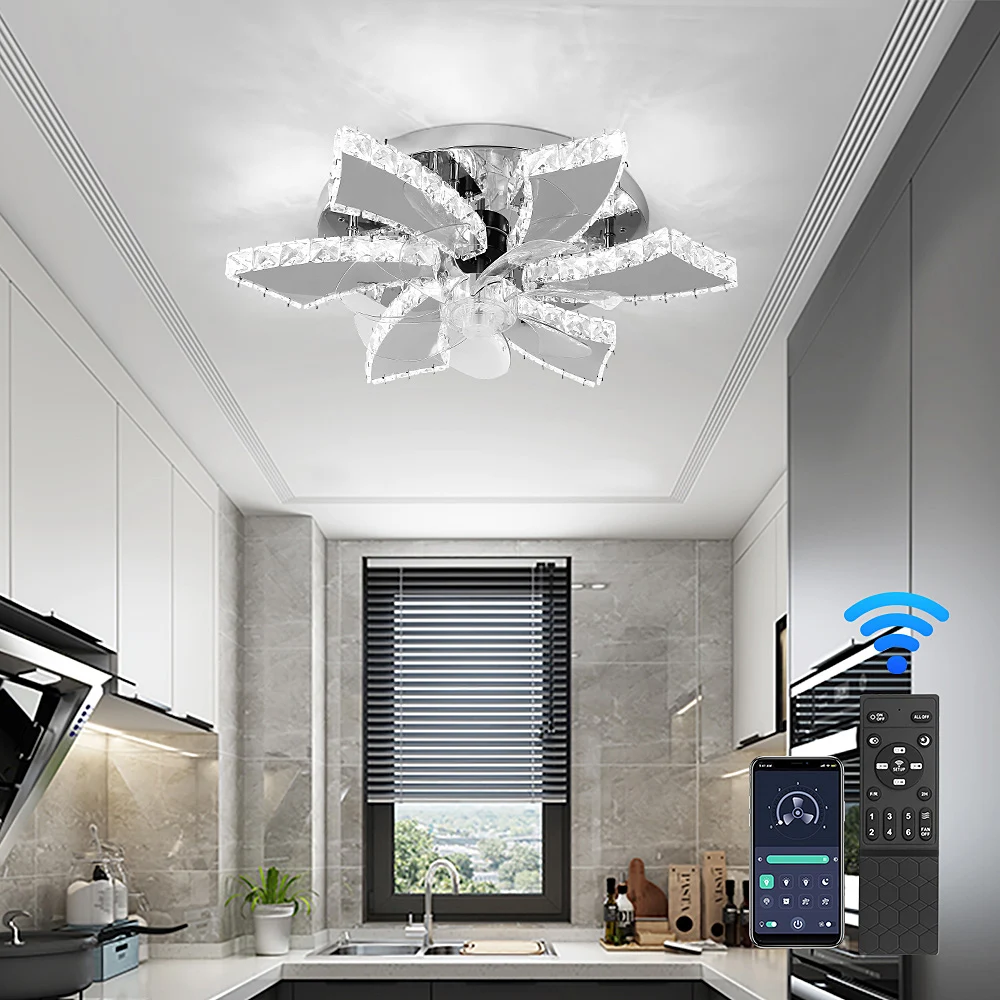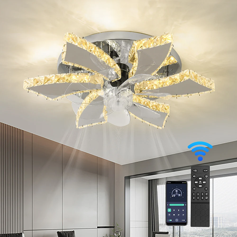 Modern Chandelier Ceiling Fan With Led Lamp Smart Remote Control Crystal Dining Room Fixtures Pendant Hanging Light Porch Lustre