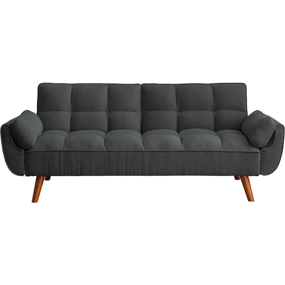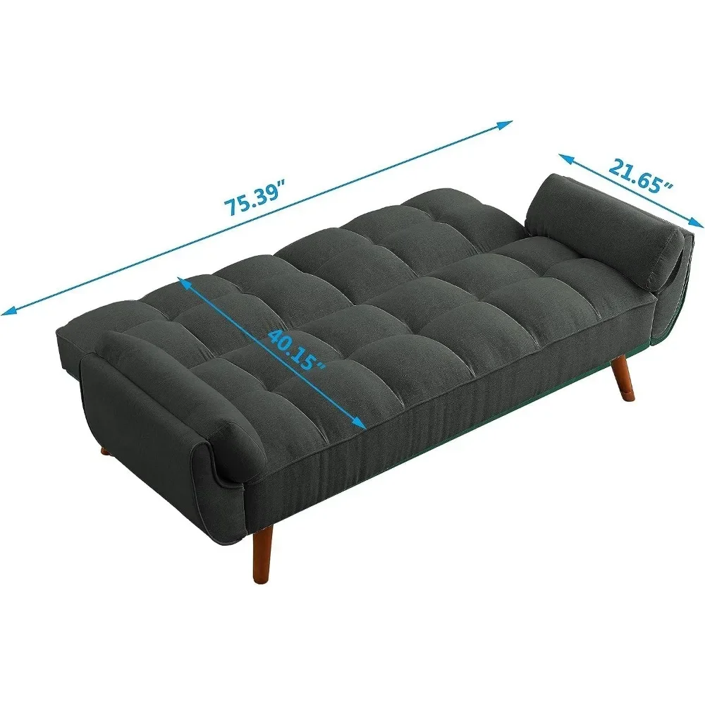 Modern Convertible Tufted Linen Upholstered Futon Sofa Daybed W/2 Pillows Luxury Sofa in the Living Room Overstuffed Comfy Home