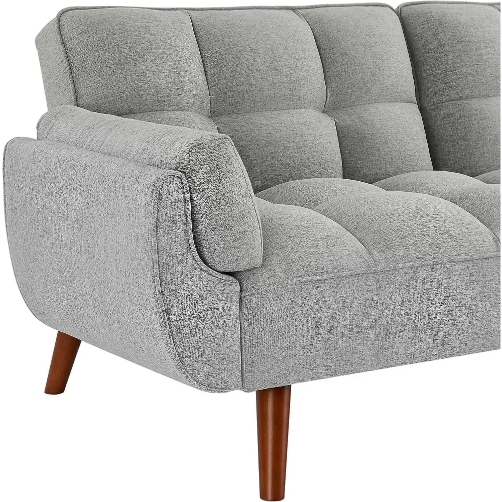 Modern Convertible Tufted Linen Upholstered Futon Sofa Daybed W/2 Pillows Luxury Sofa in the Living Room Overstuffed Comfy Home