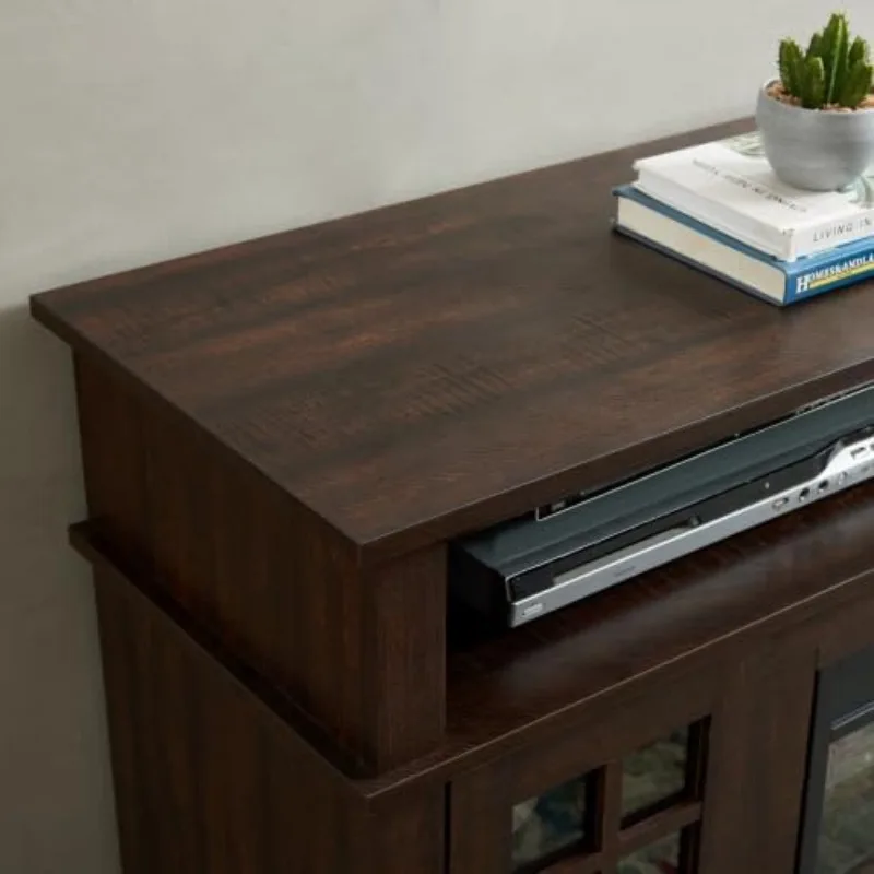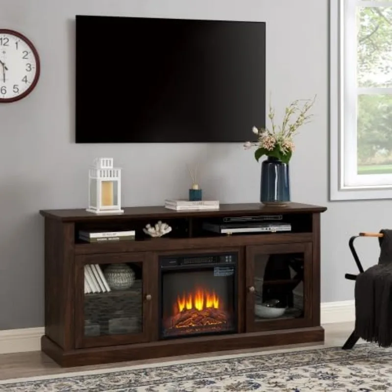 - Classic American Design: This electric fireplace TV stand exudes a timeless charm with its textured finishes, antique metal hardware, and glass doors. It adds a touch of classic American elegance to any living room, making it a stylish and functional addition to your home decor.